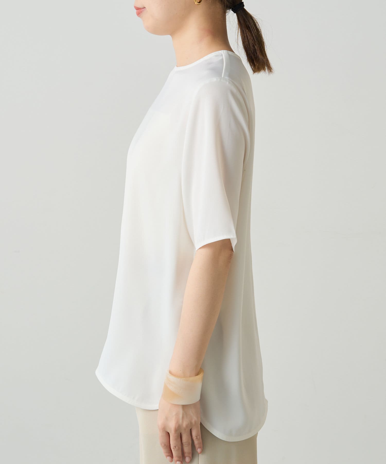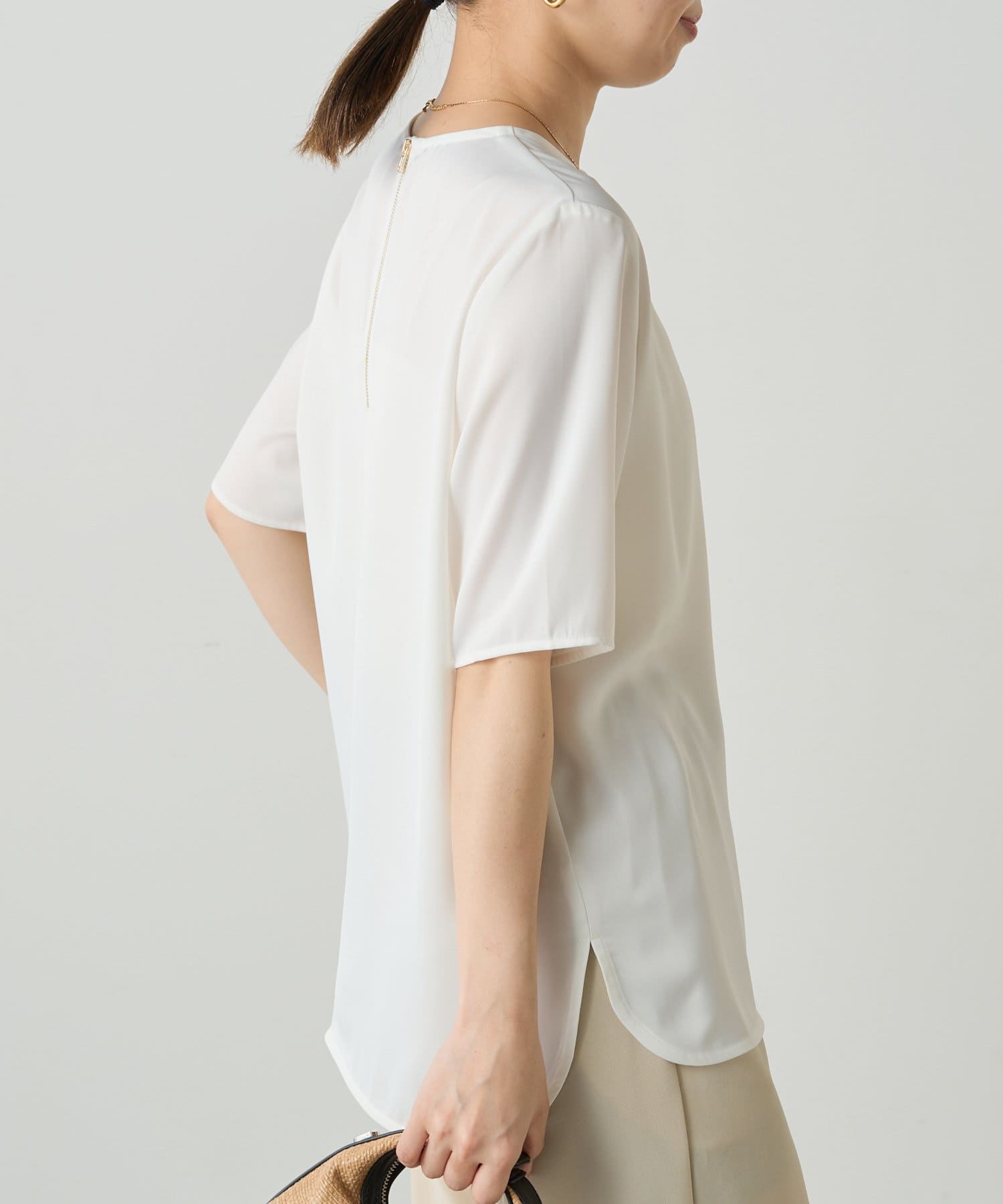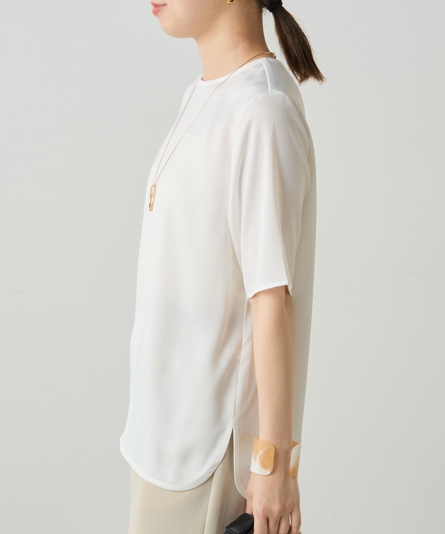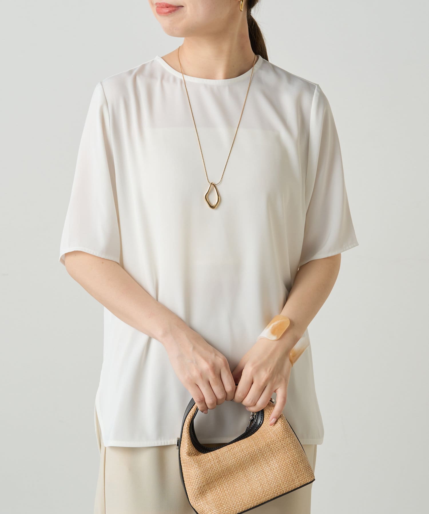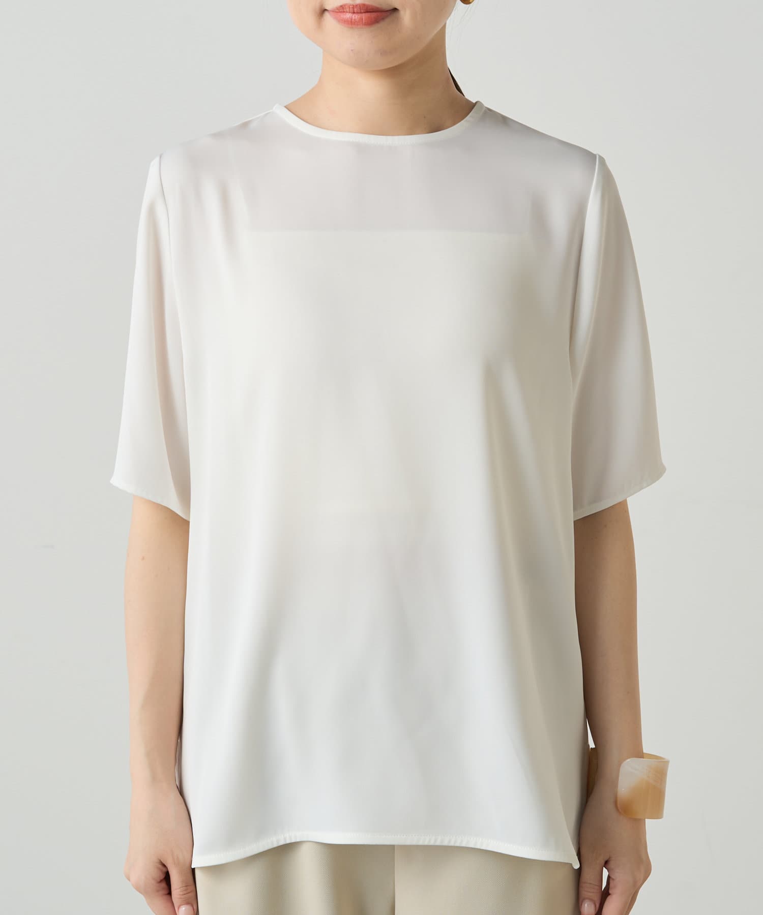 Tシャツのように楽しめるクルーネックの半袖ブラウス。