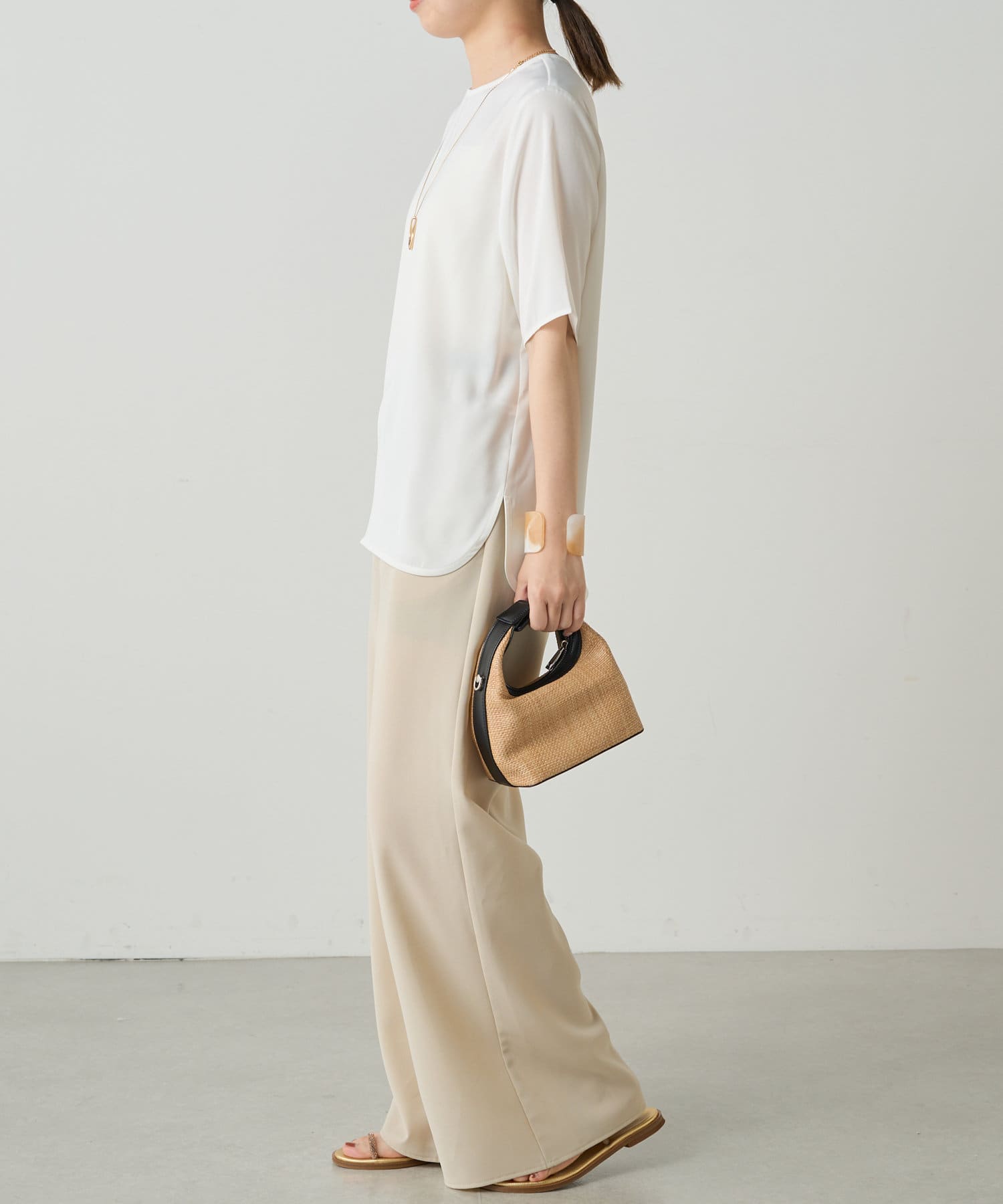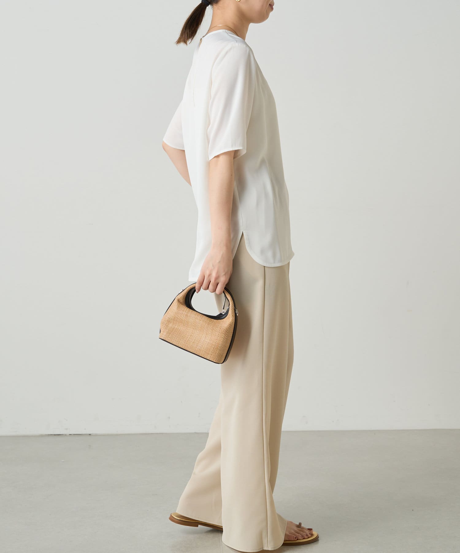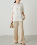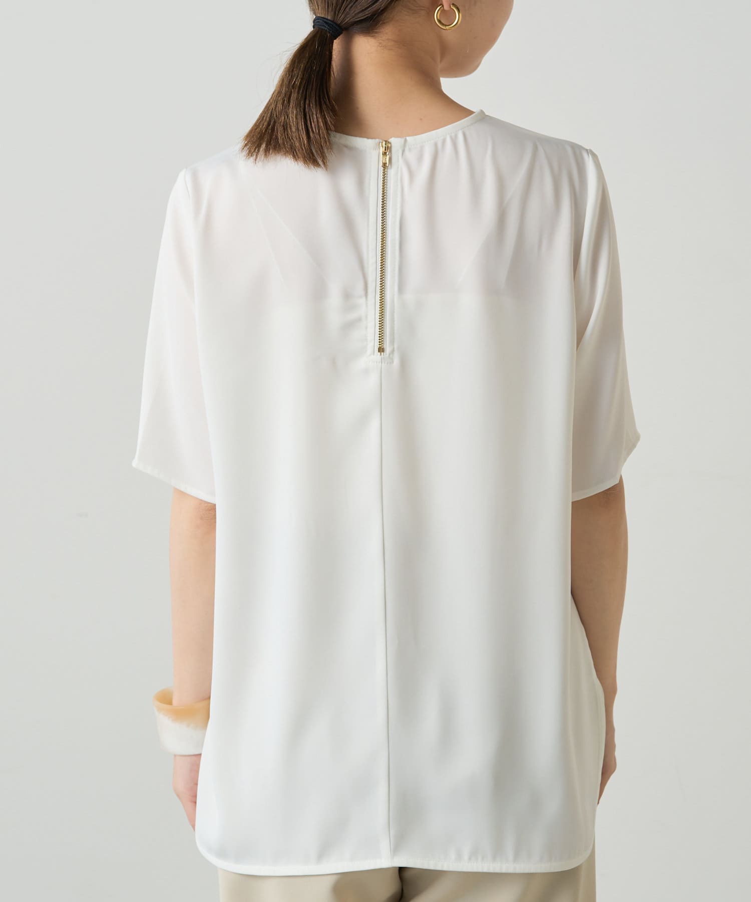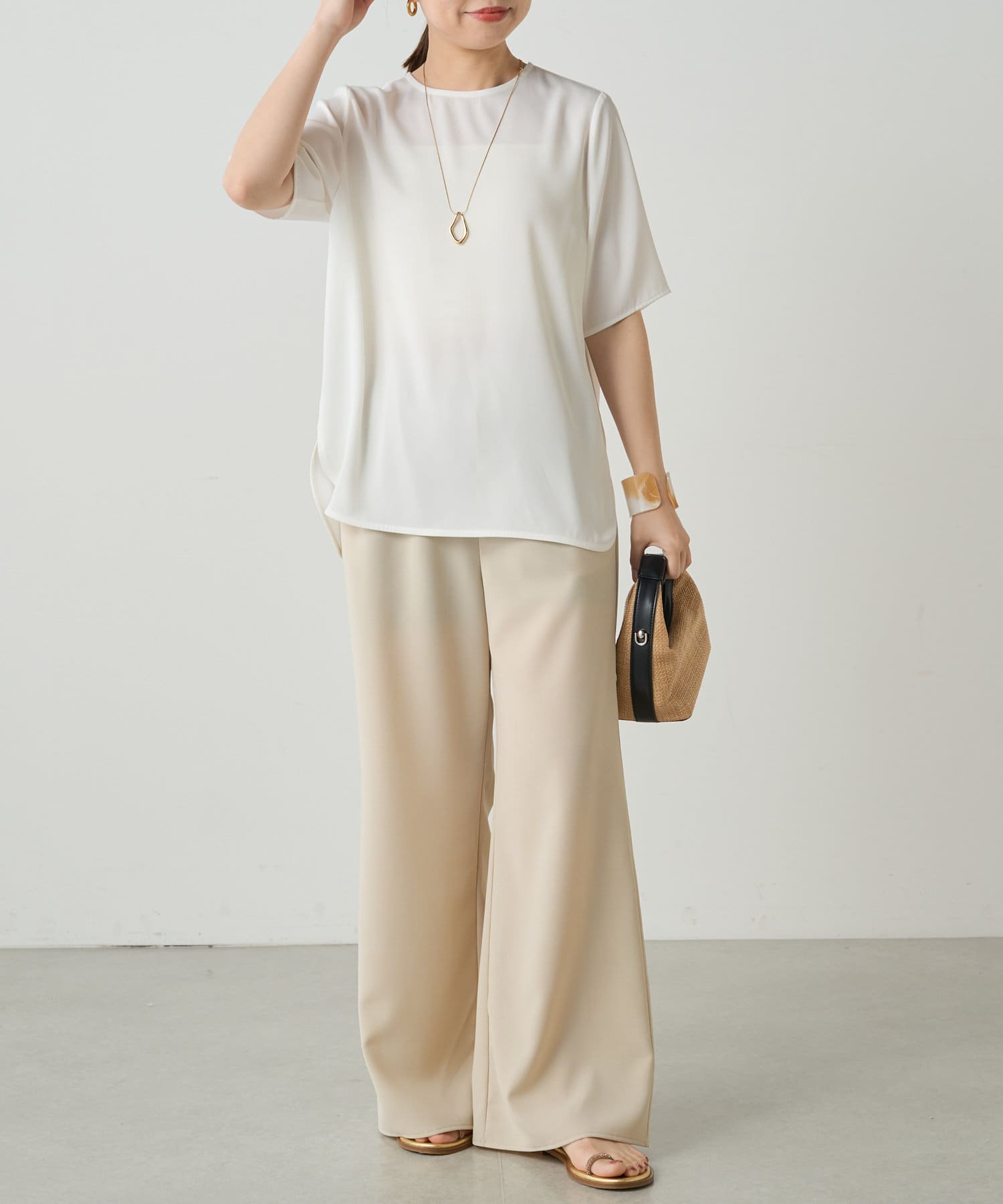 Tシャツのように楽しめるクルーネックの半袖ブラウス。