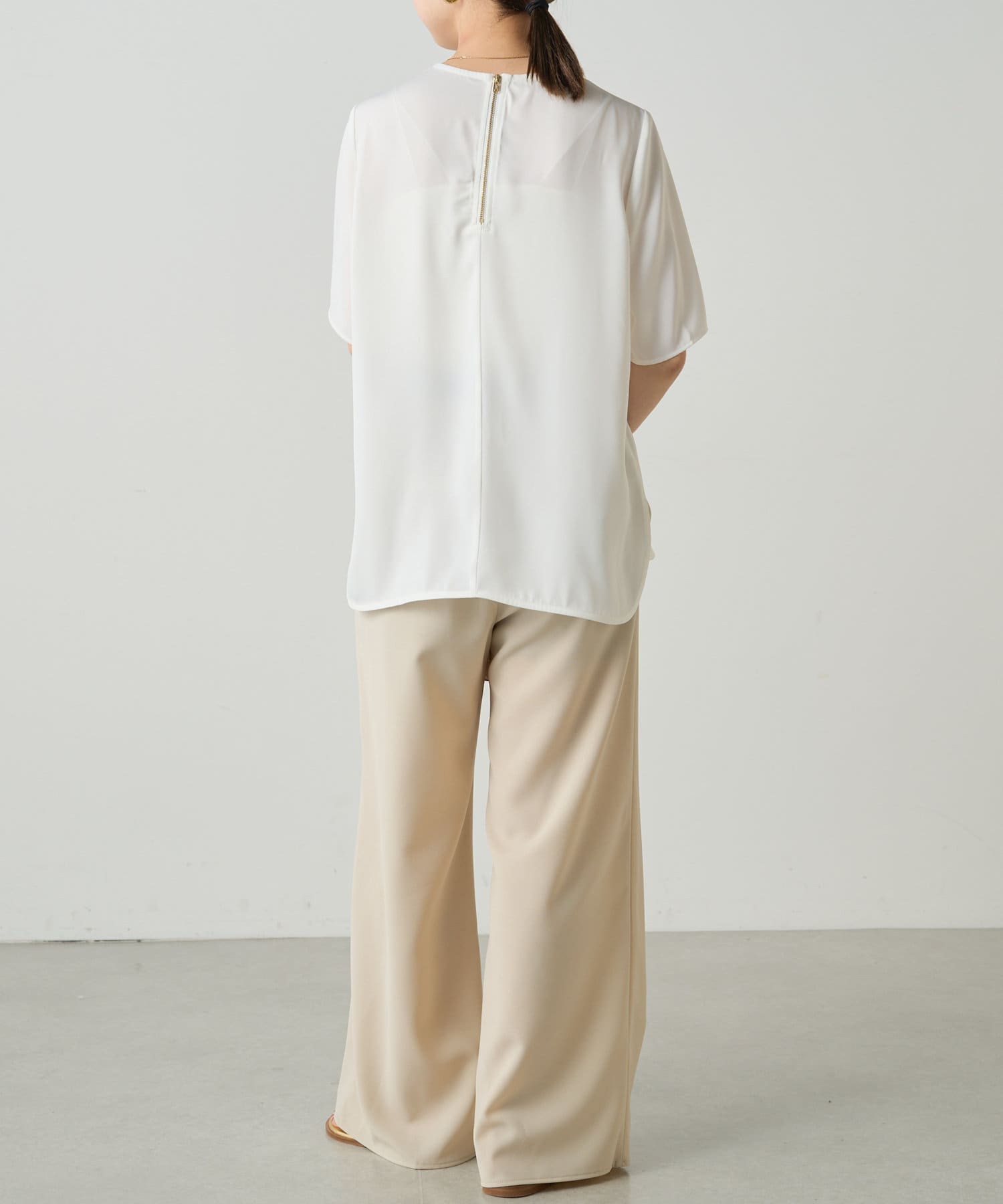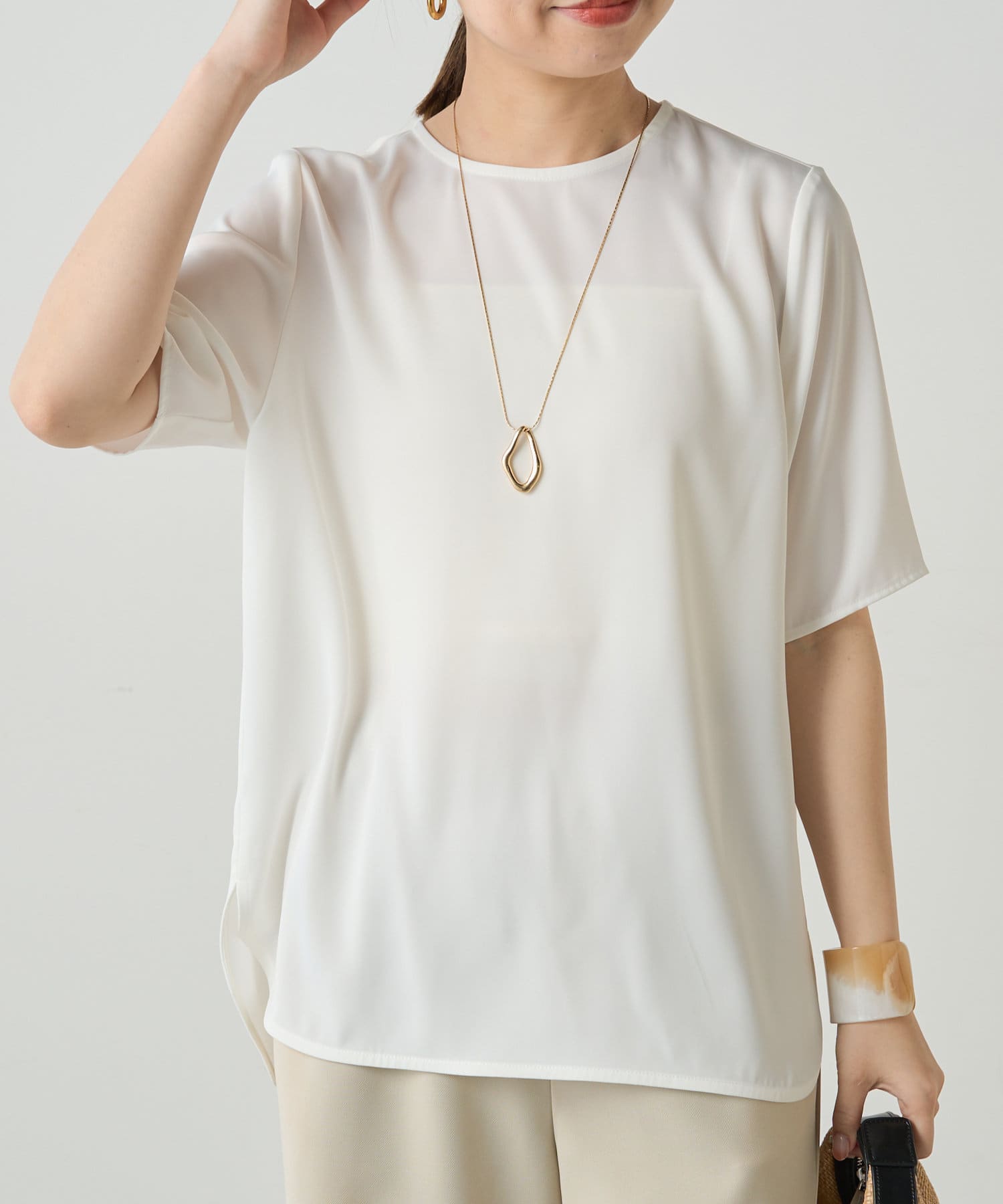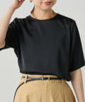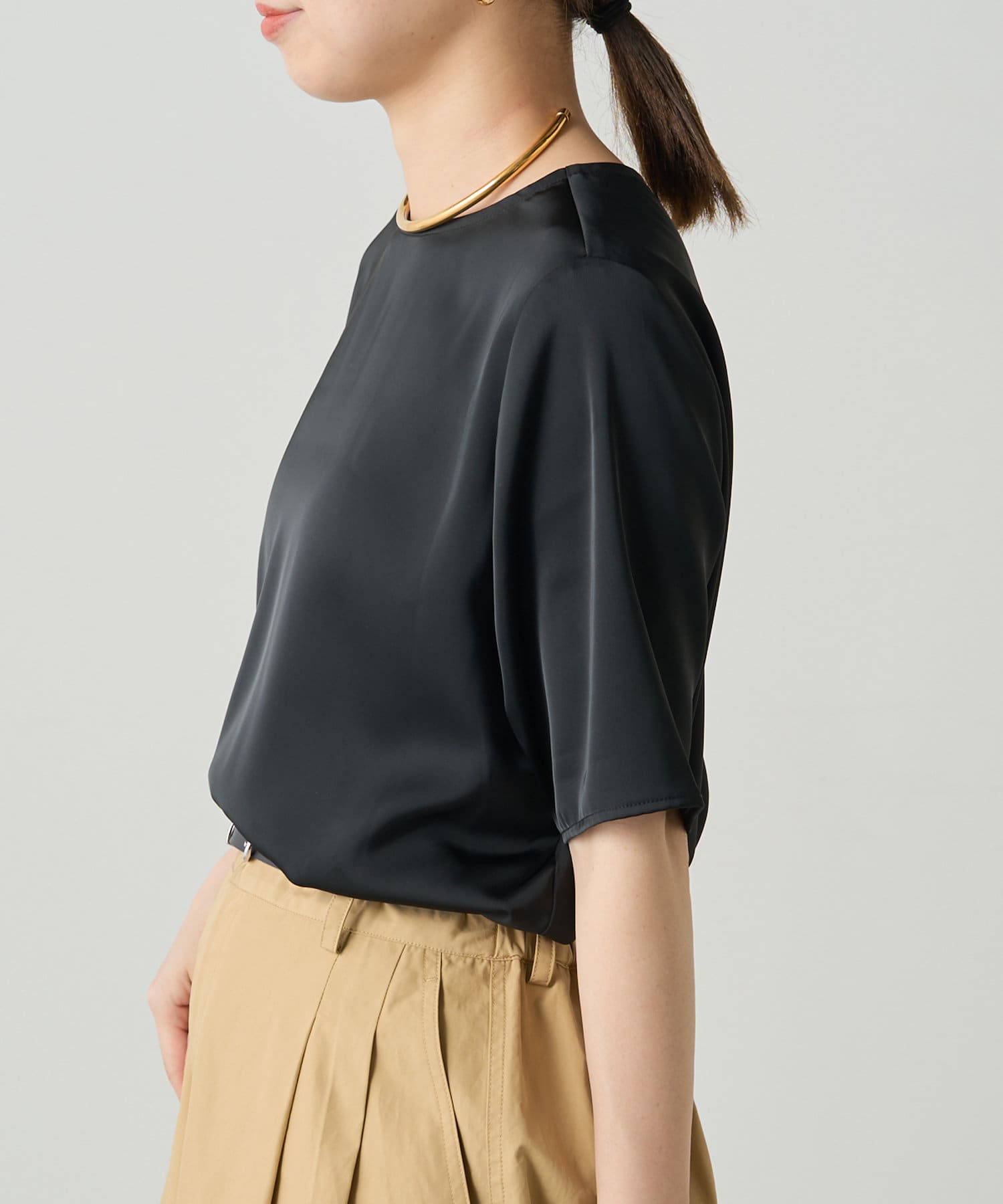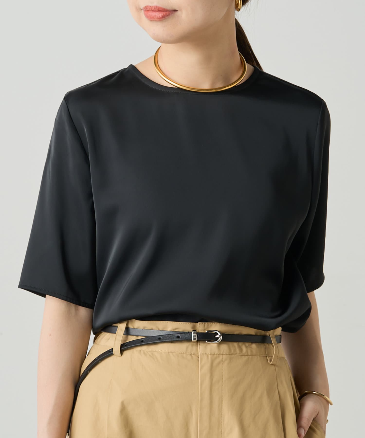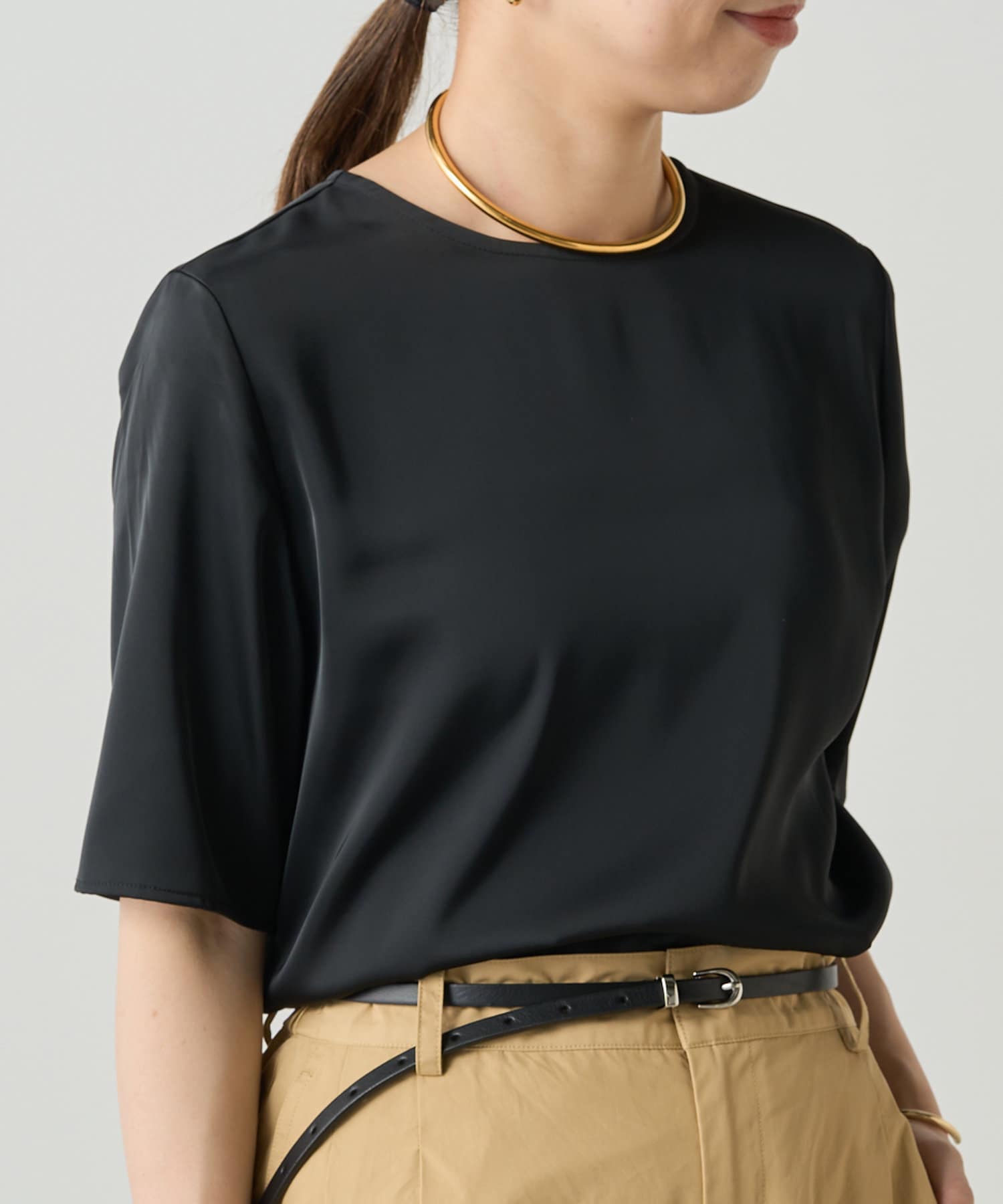上品な光沢感のあるサテン生地を使用したTブラウス