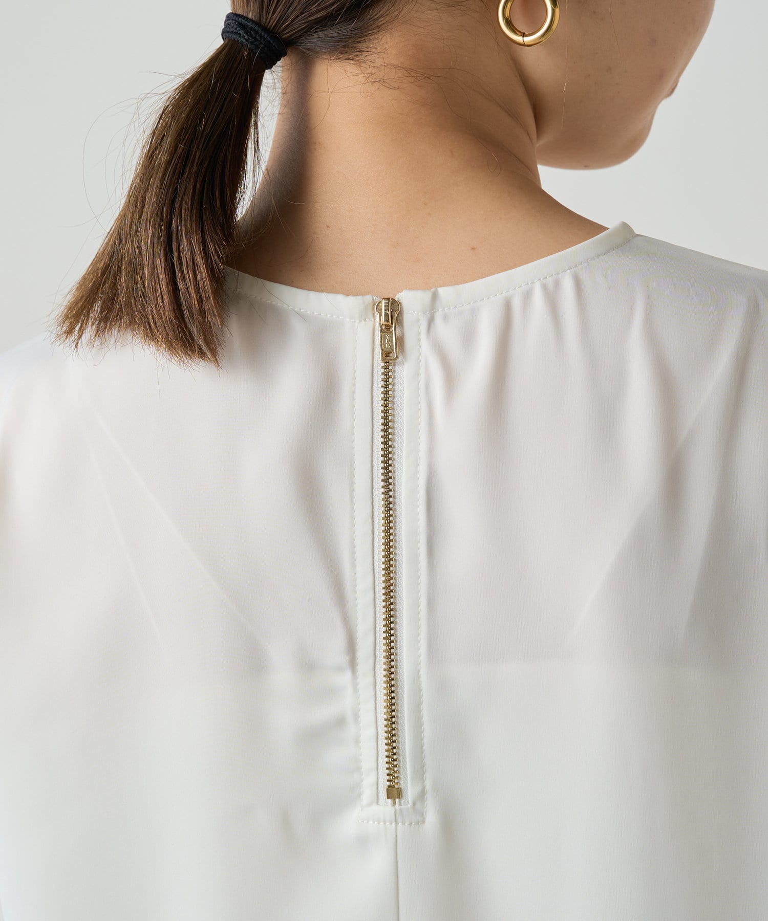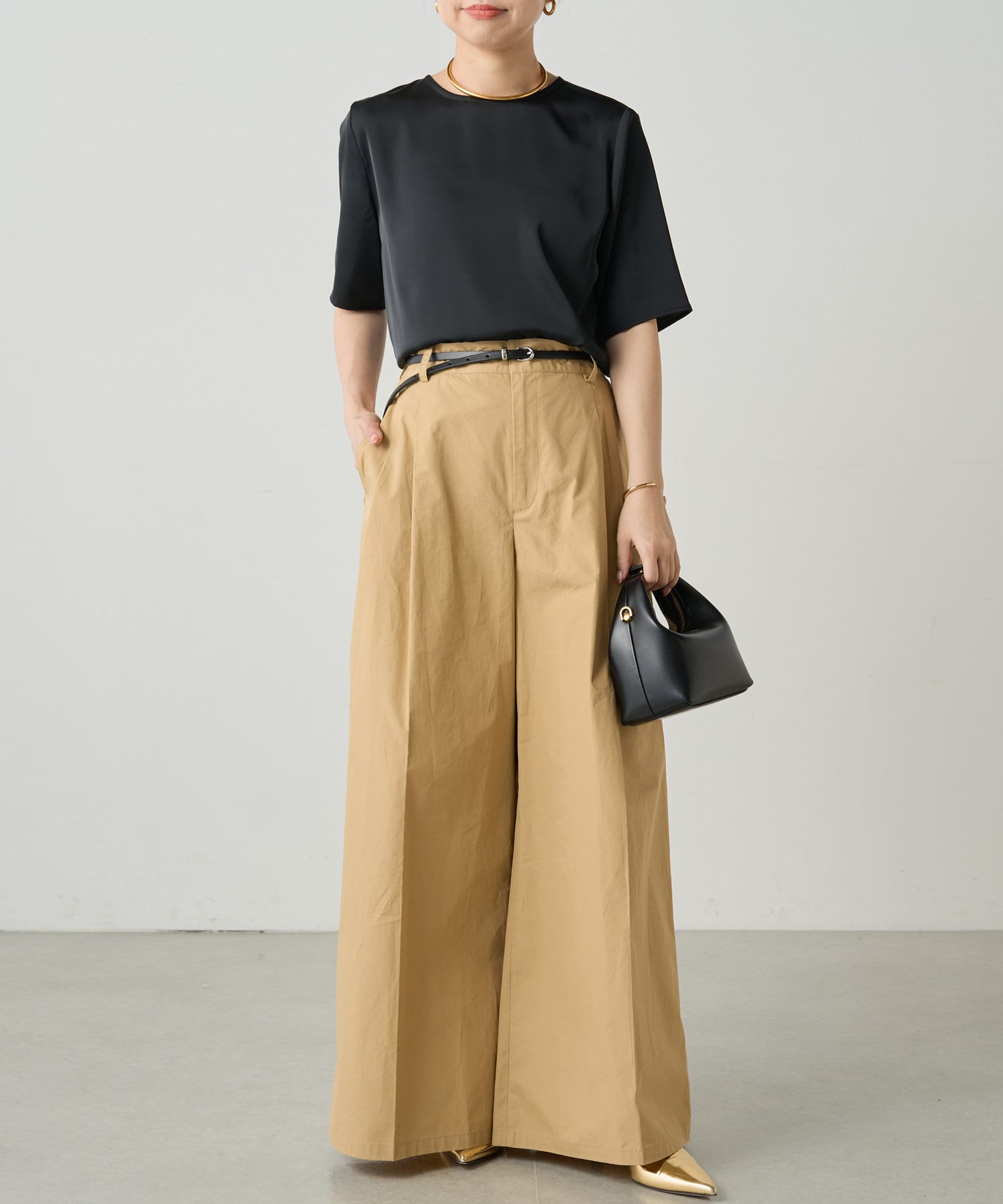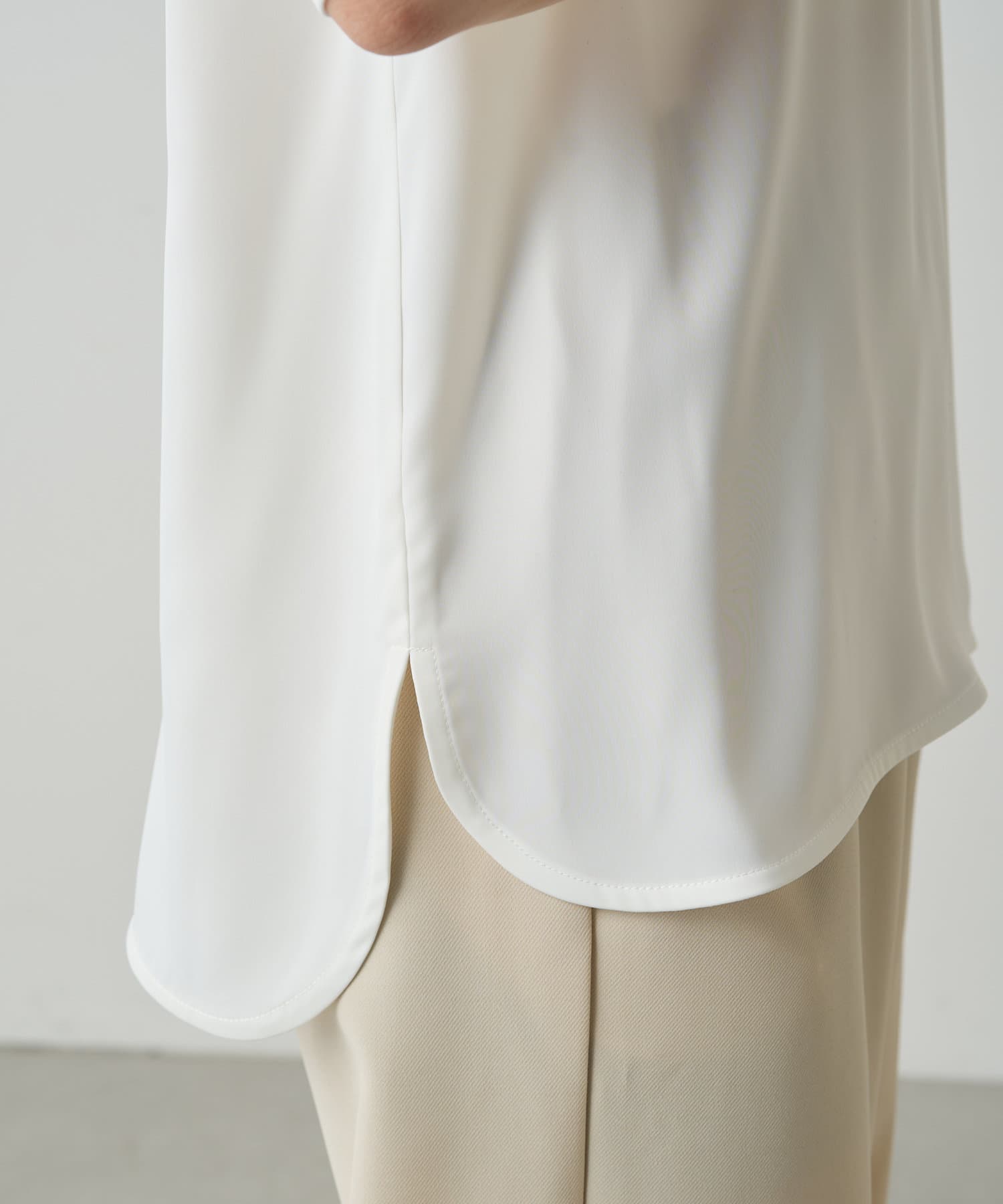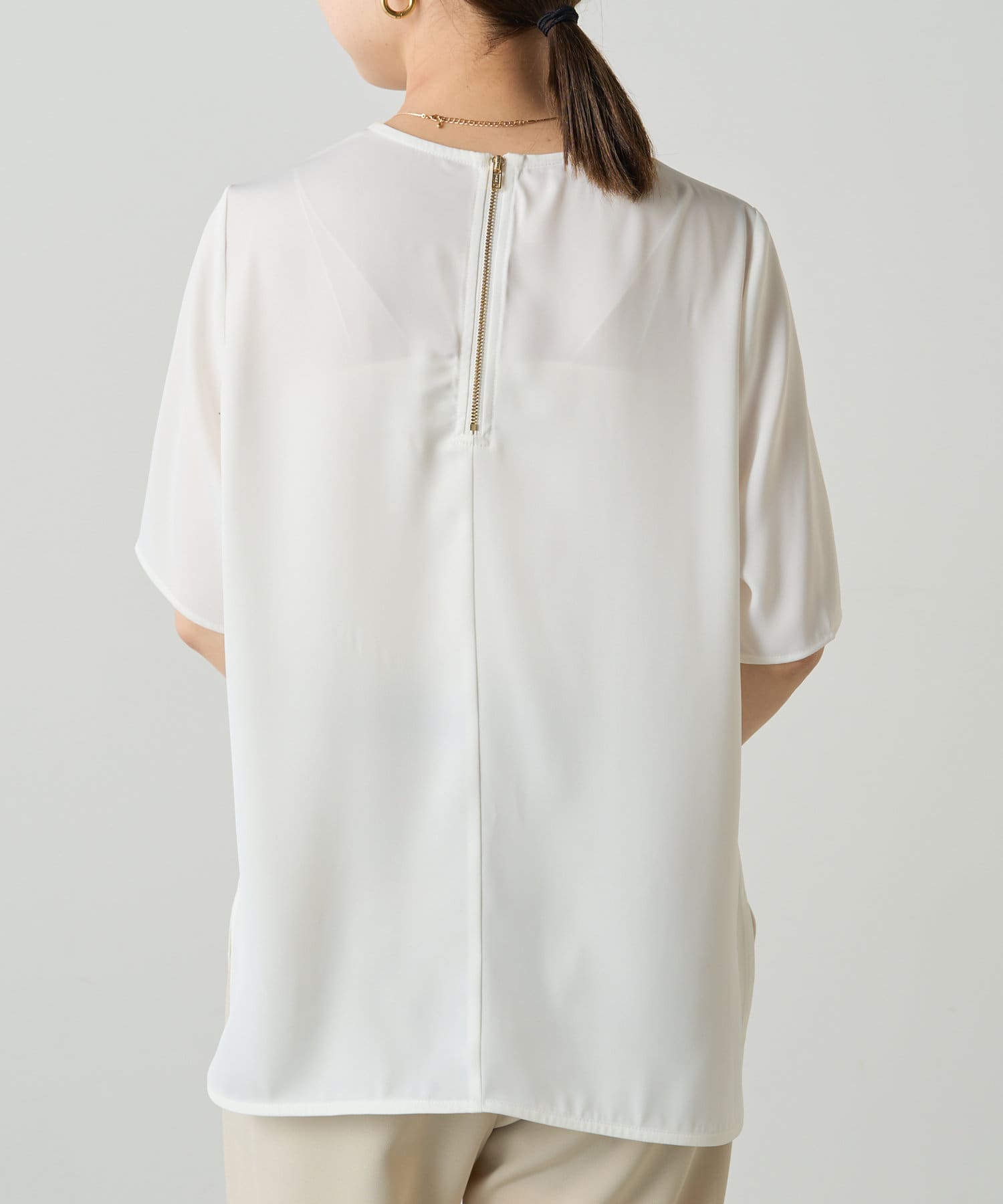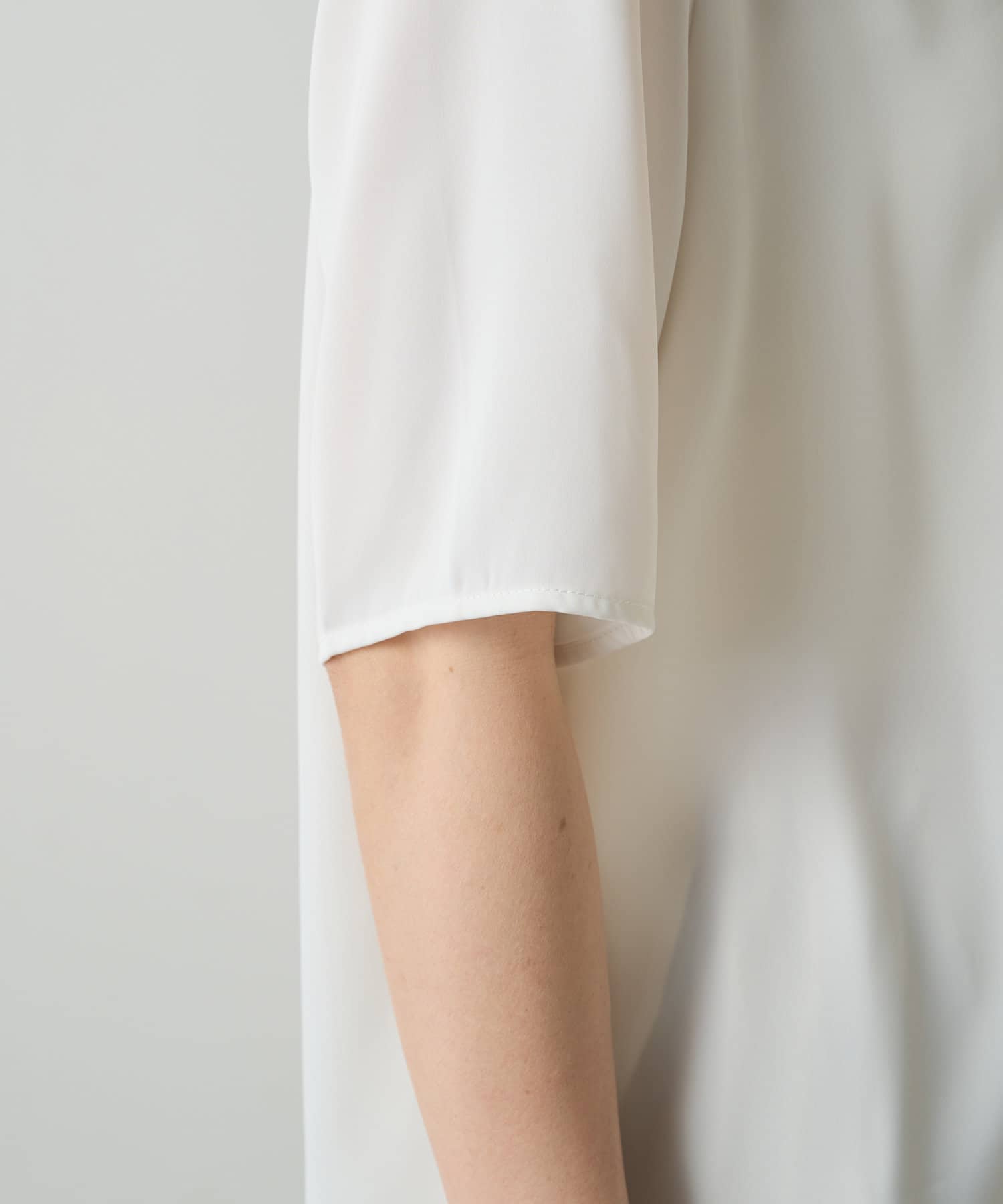 上品な光沢感のあるサテン生地を使用したTブラウス