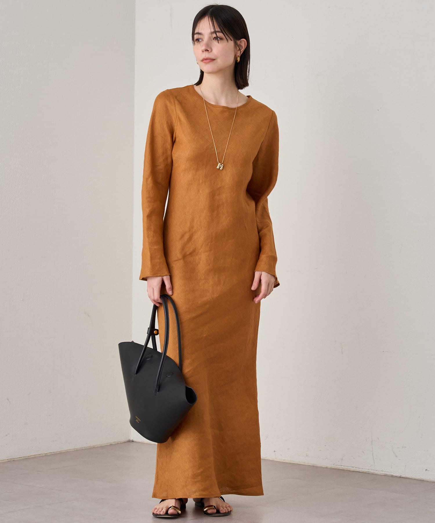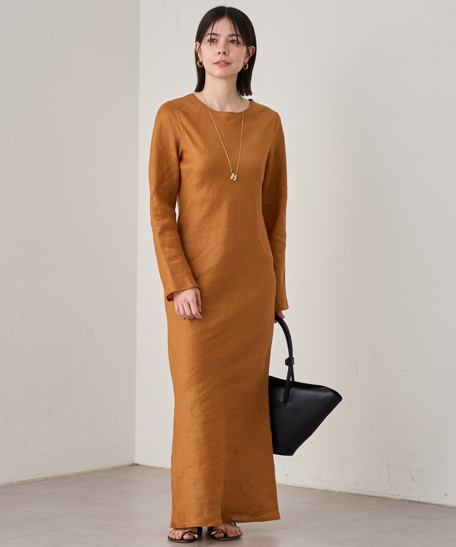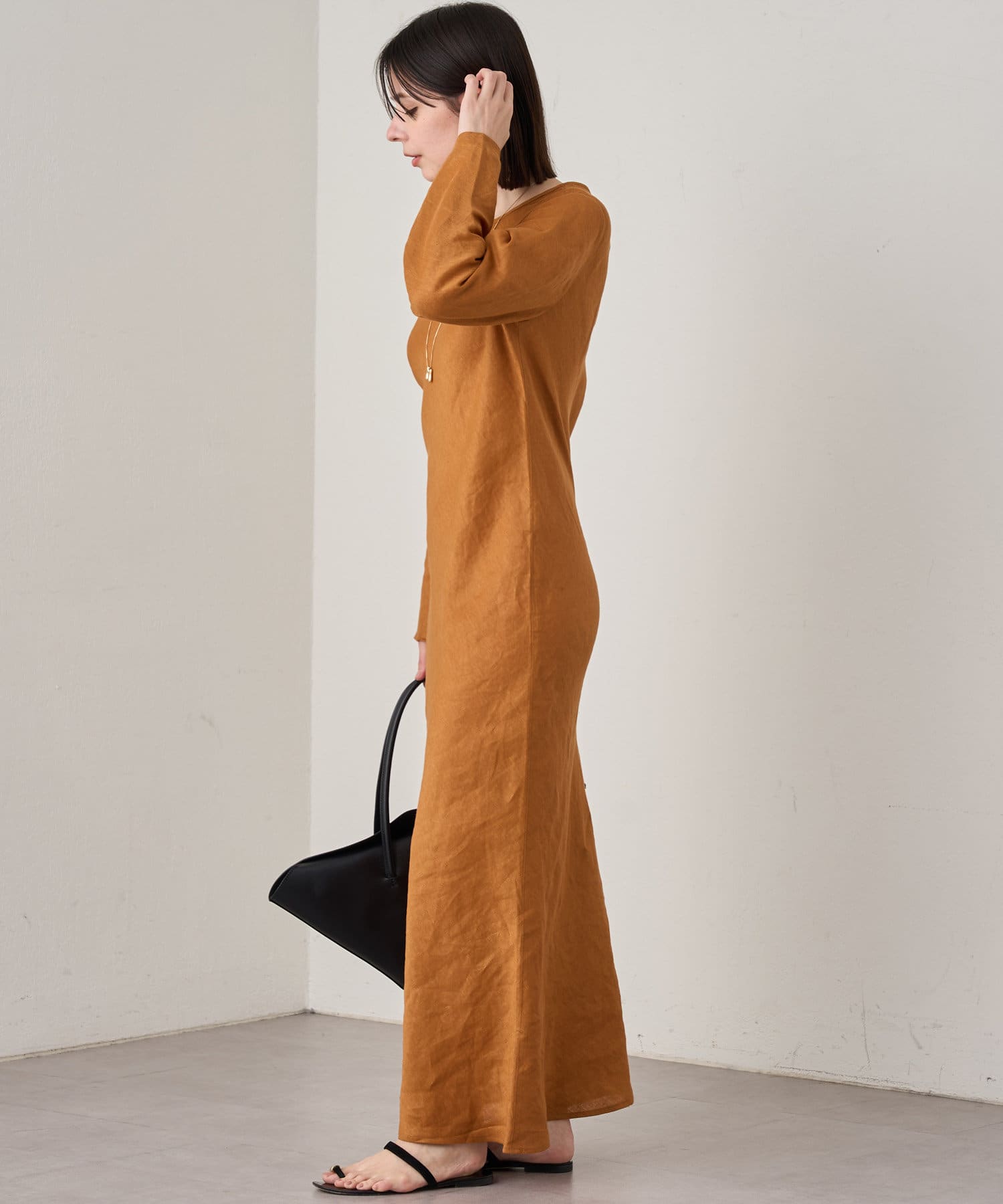スタイルが良く見えるラインにこだわったリネン素材のワンピース。