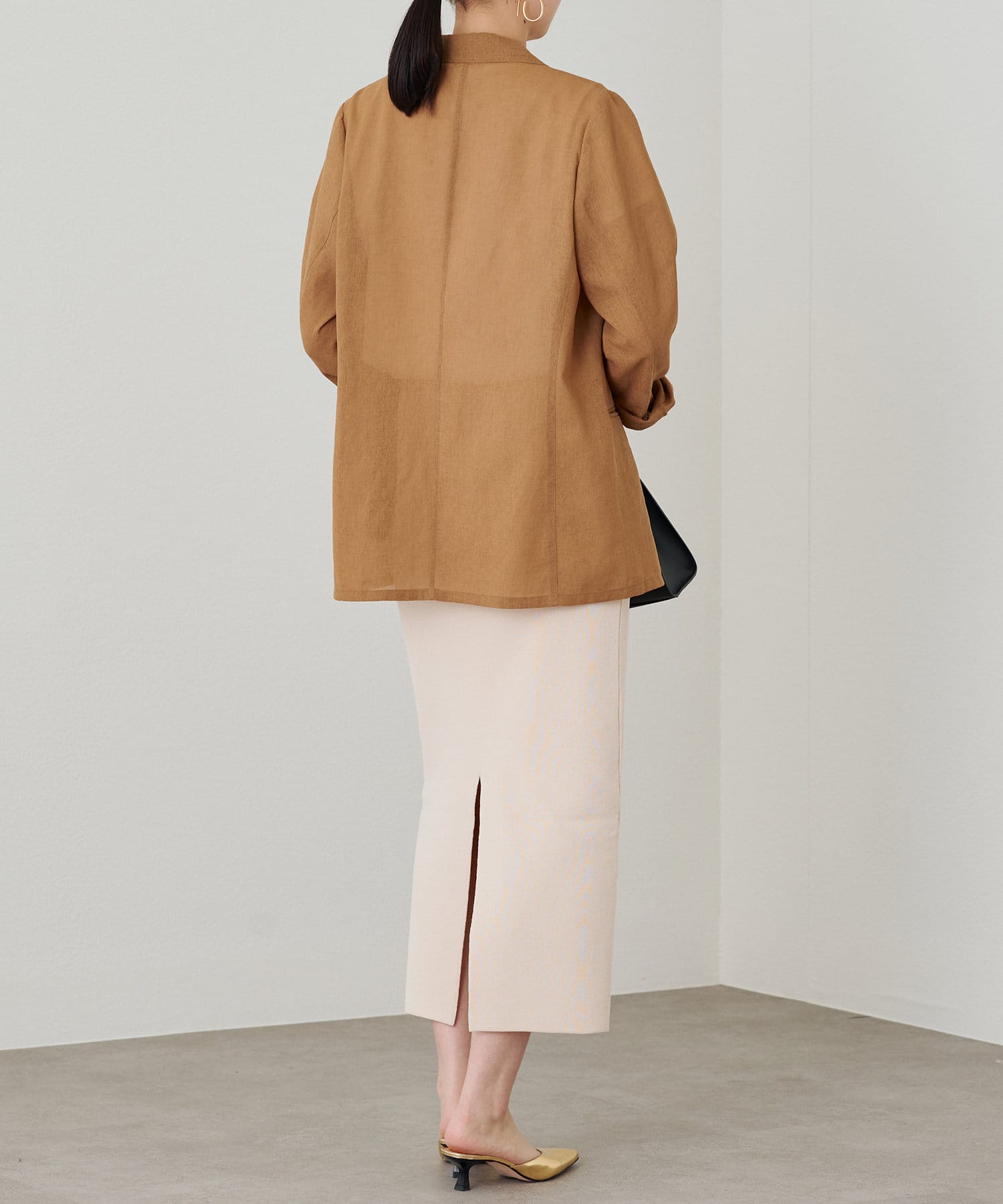 上品なブラウスと合わせて、レディライクに着るのもおすすめです。