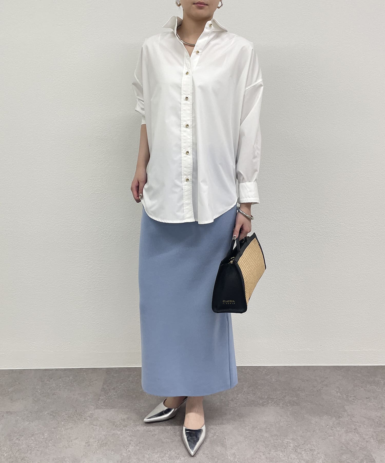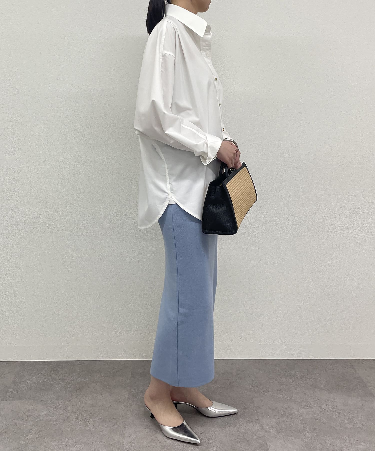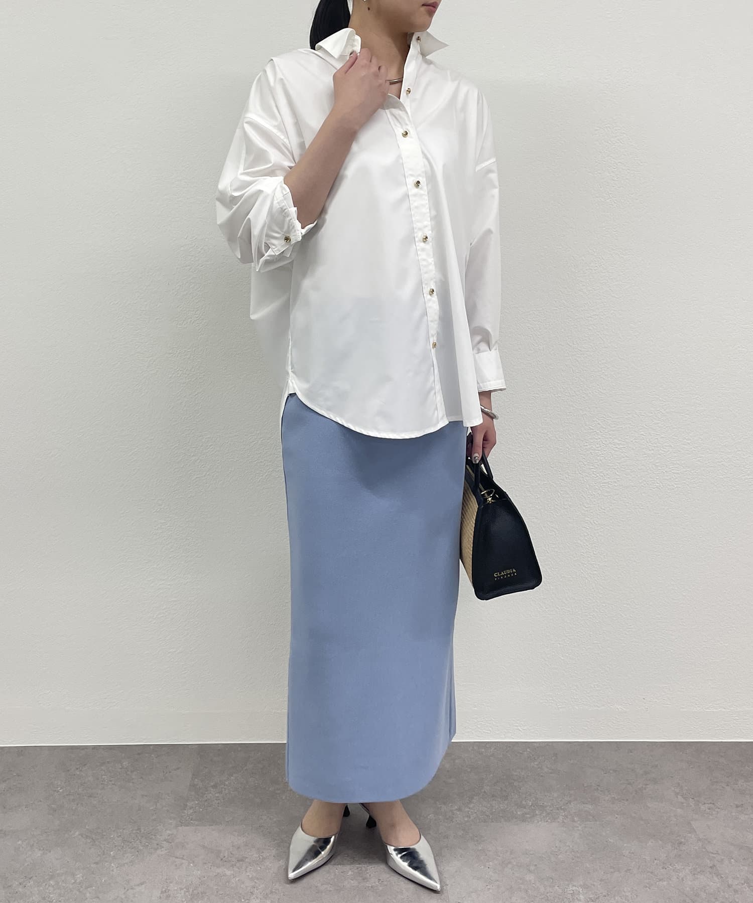 シンプルなスカートなので、柄物のトップスと合わせていただくのもおすすめです。