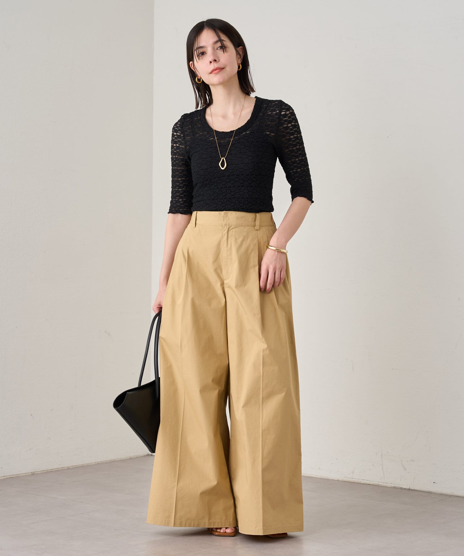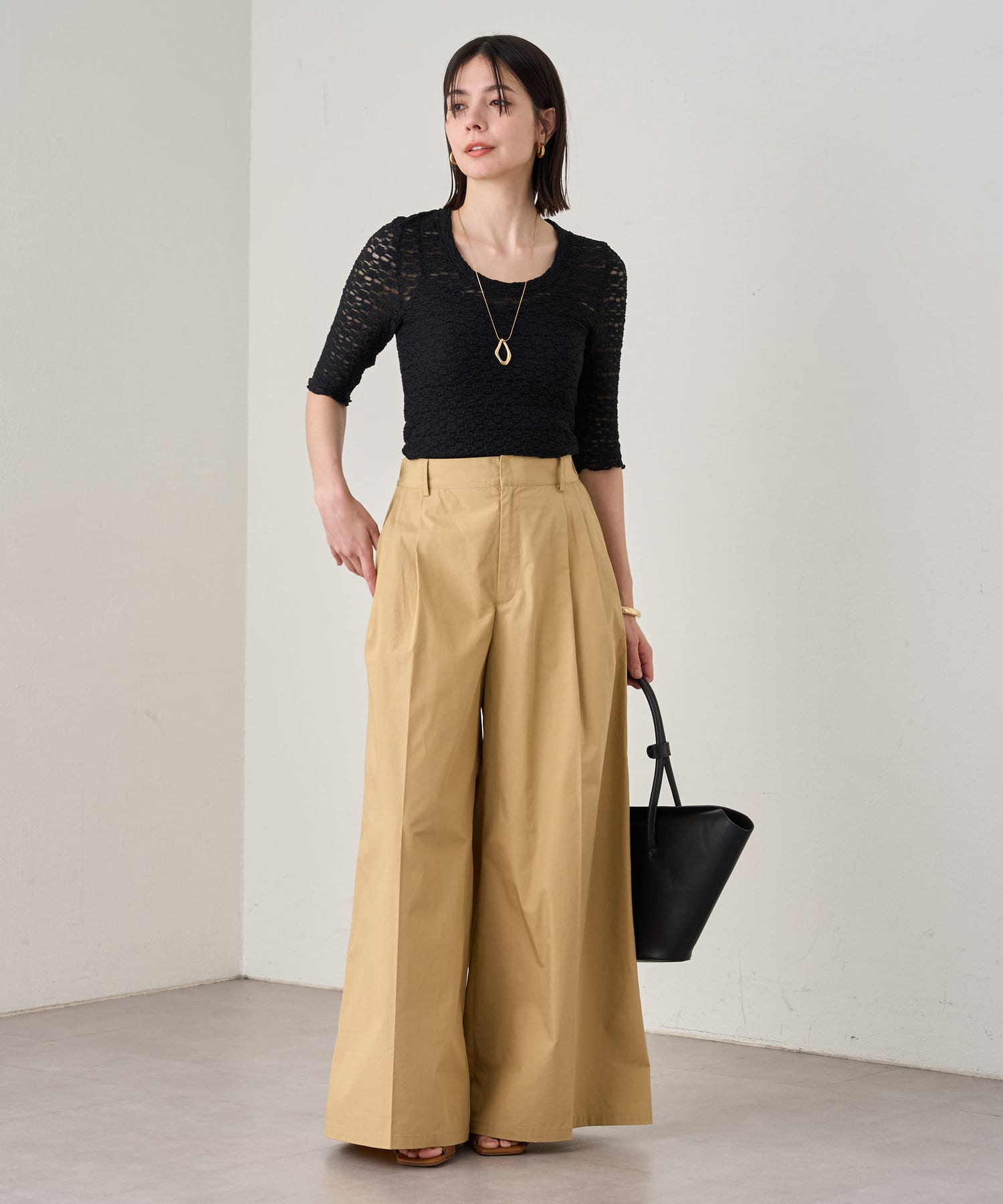 カジュアルにシアー系のカットソーや、ブラウスなど