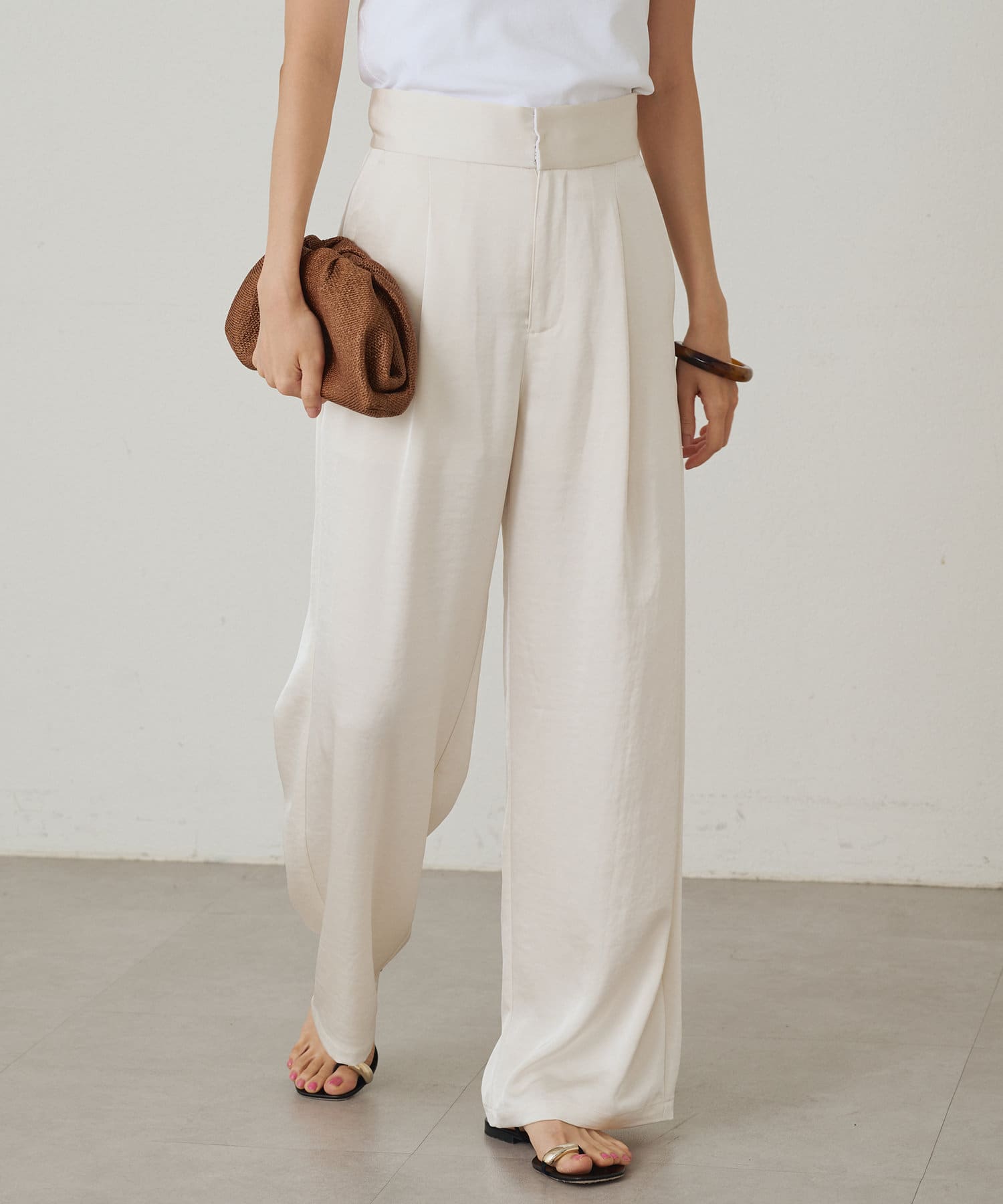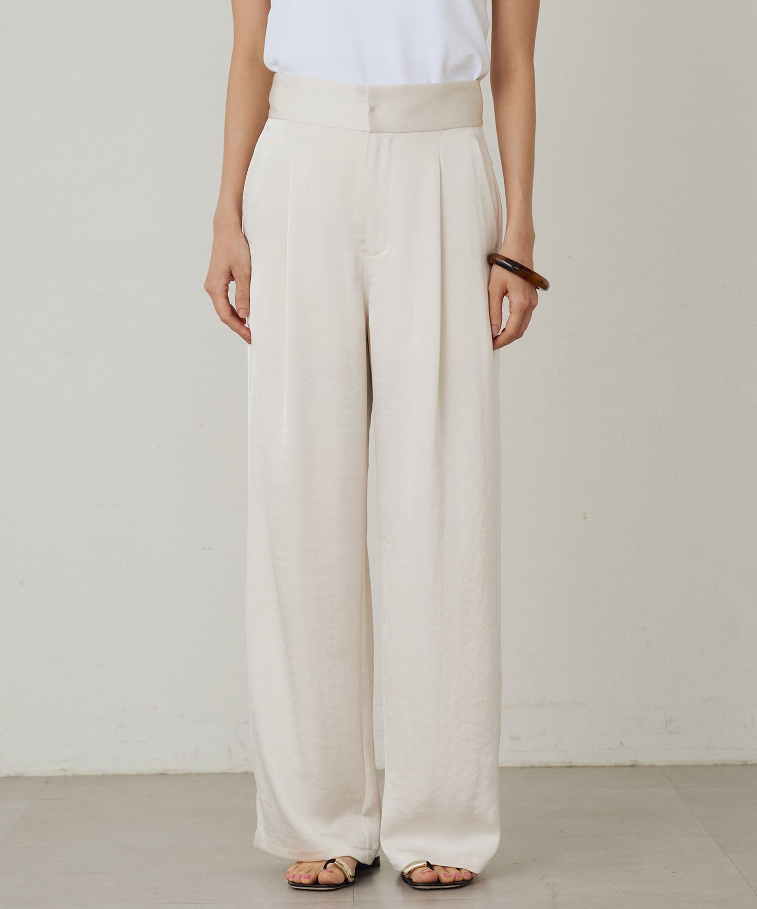 【Loungedress】ワイドベルトサテンパンツ