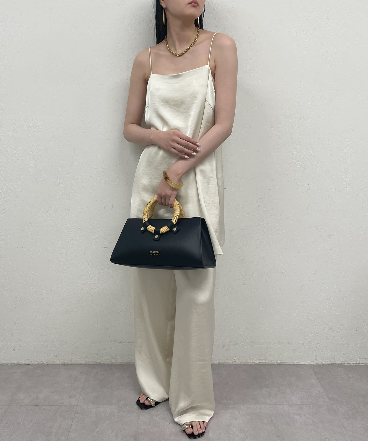 同素材のサテンのトップスとの相性も抜群です!