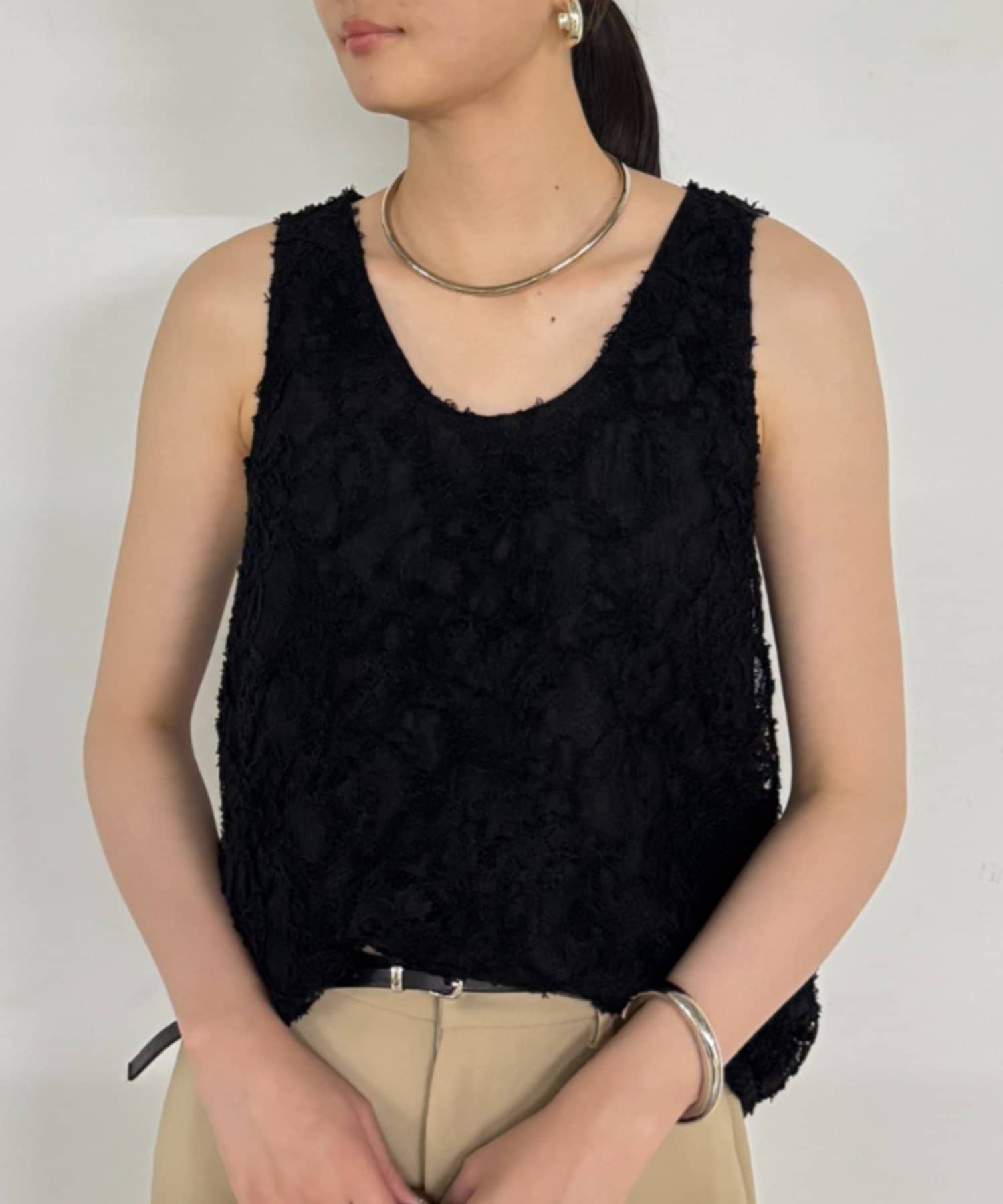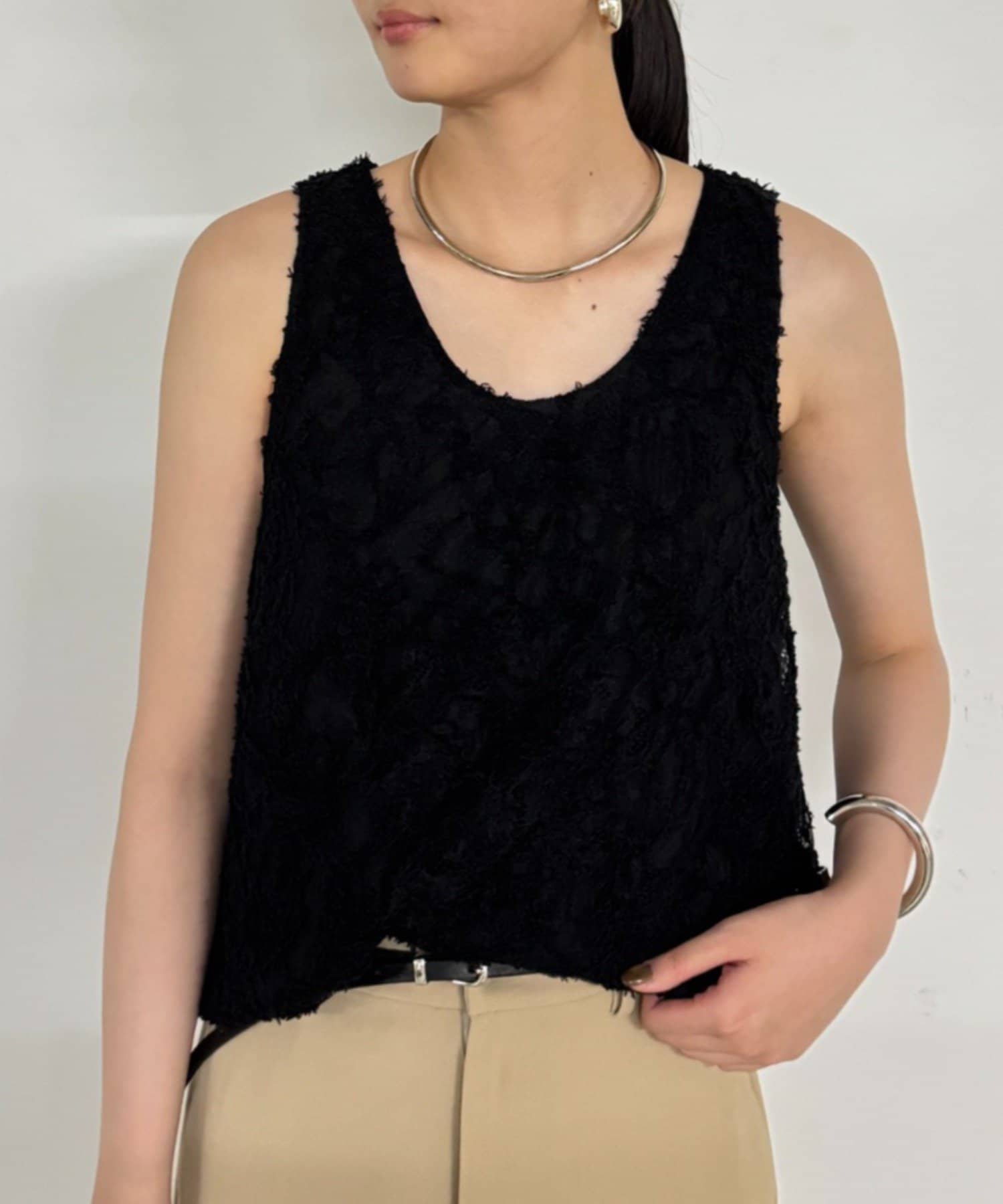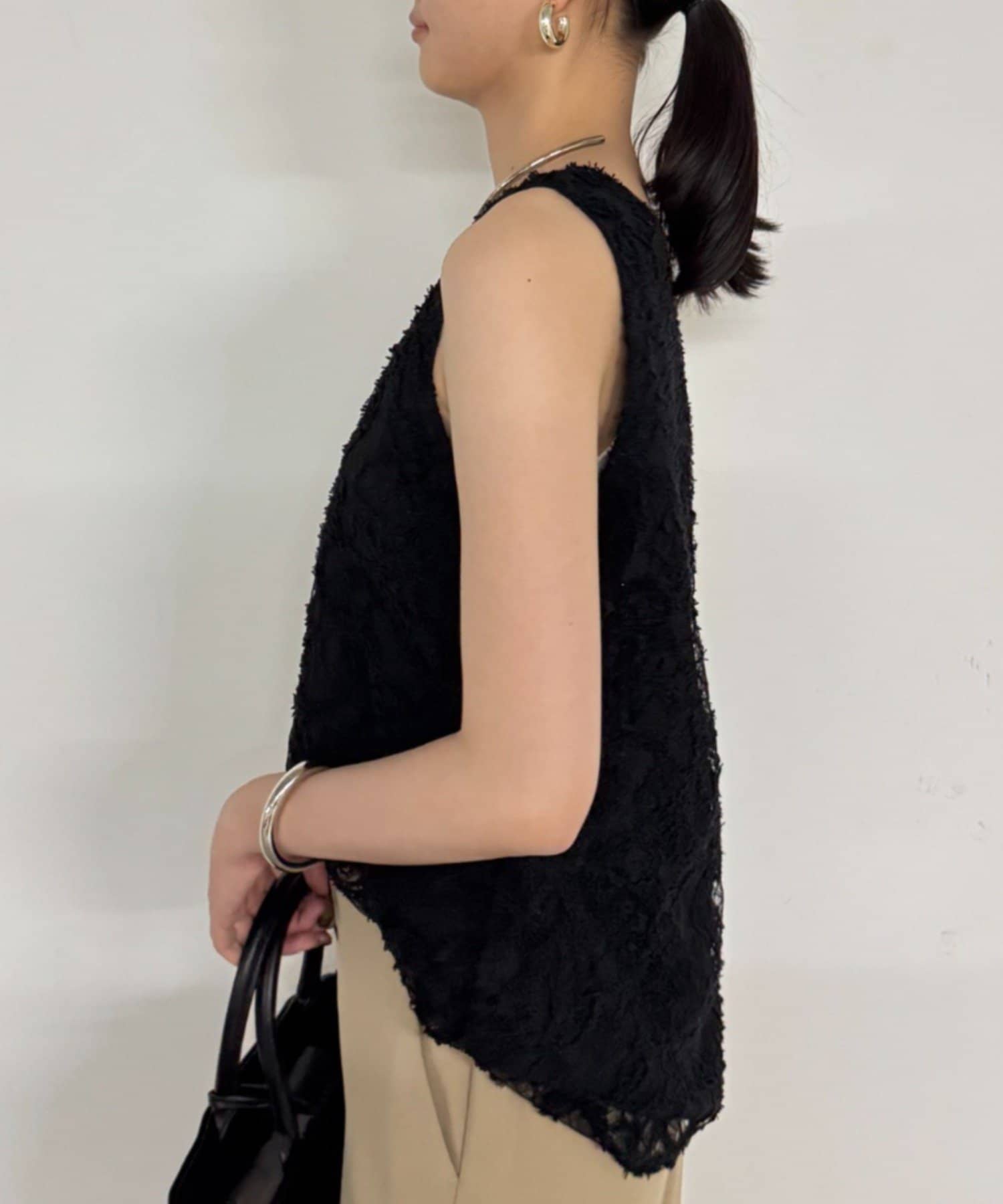 ジャケットやカーディガンのインナーとしても活躍。レースの透け感を活かして、様々なレイヤードスタイルを楽しめます。