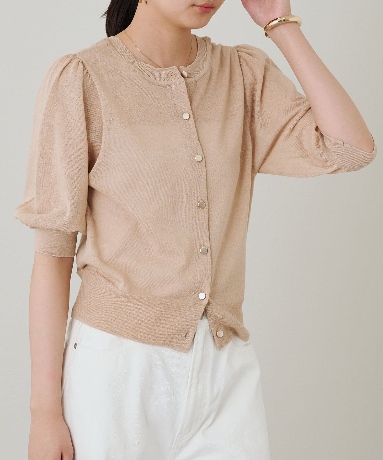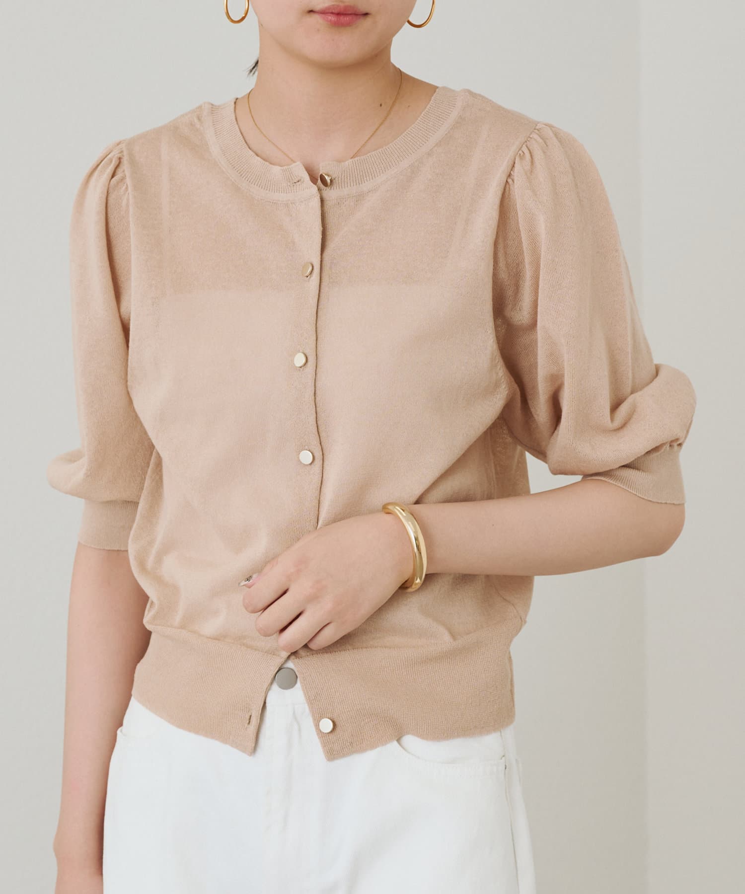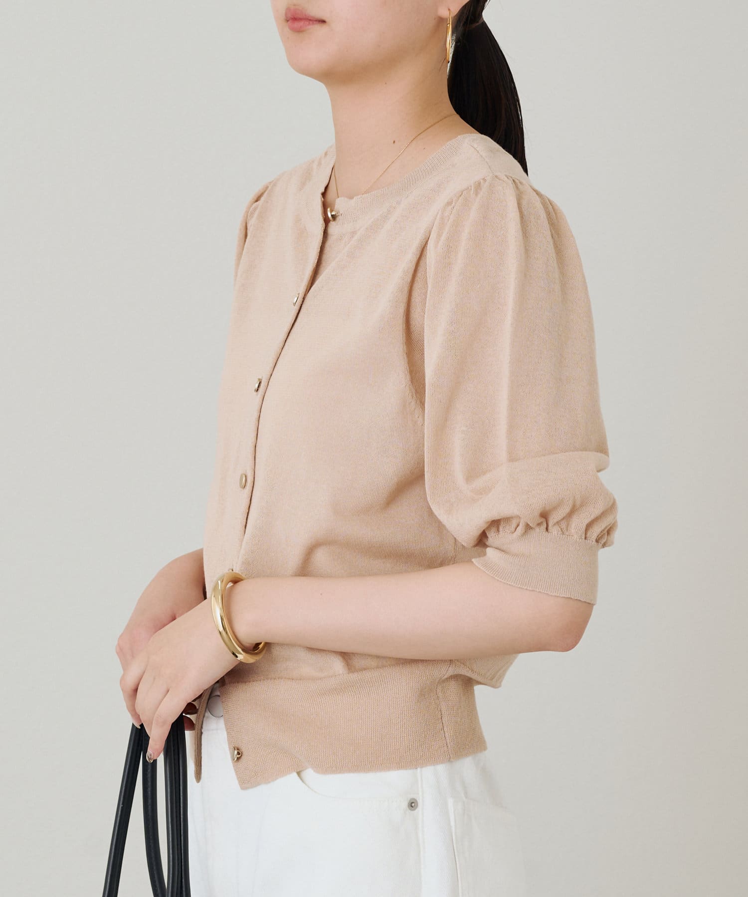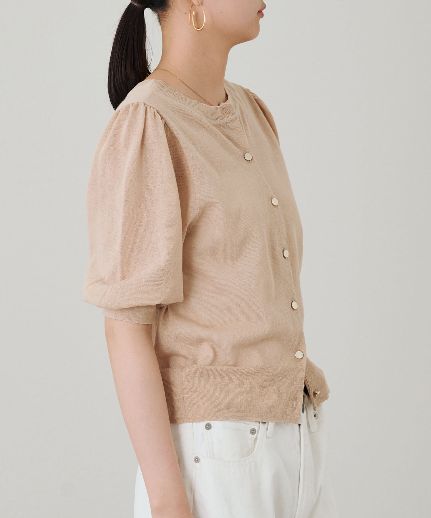 袖はふんわりとしたパフスリーブで、可愛さもありながら、上品さも兼ね備えたアイテム。