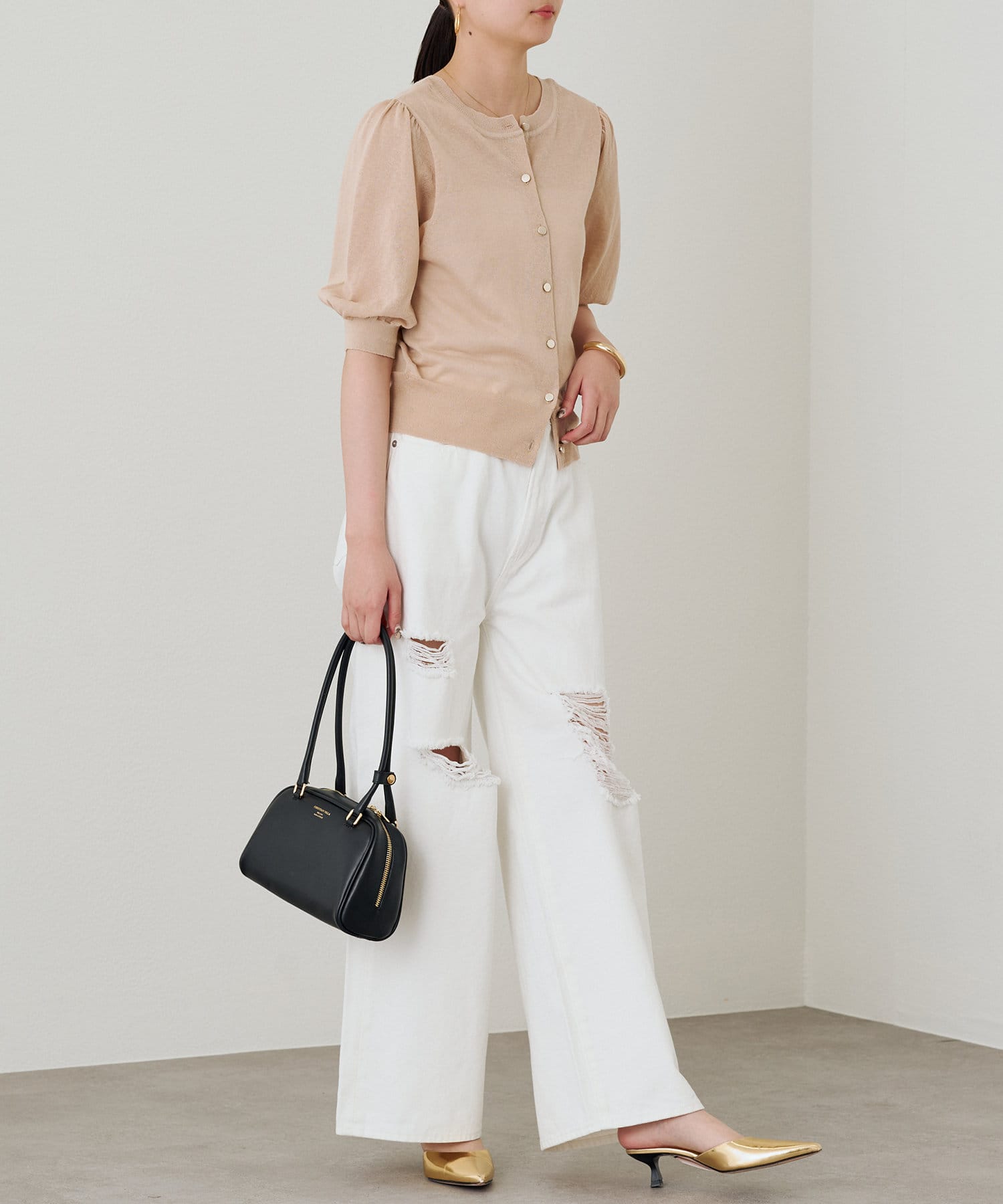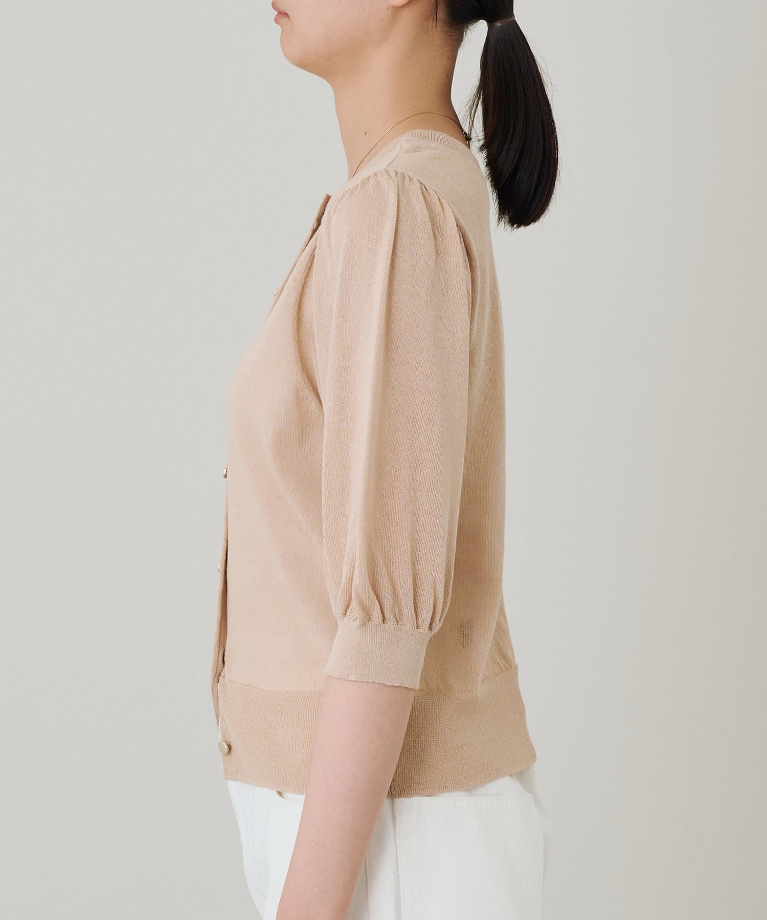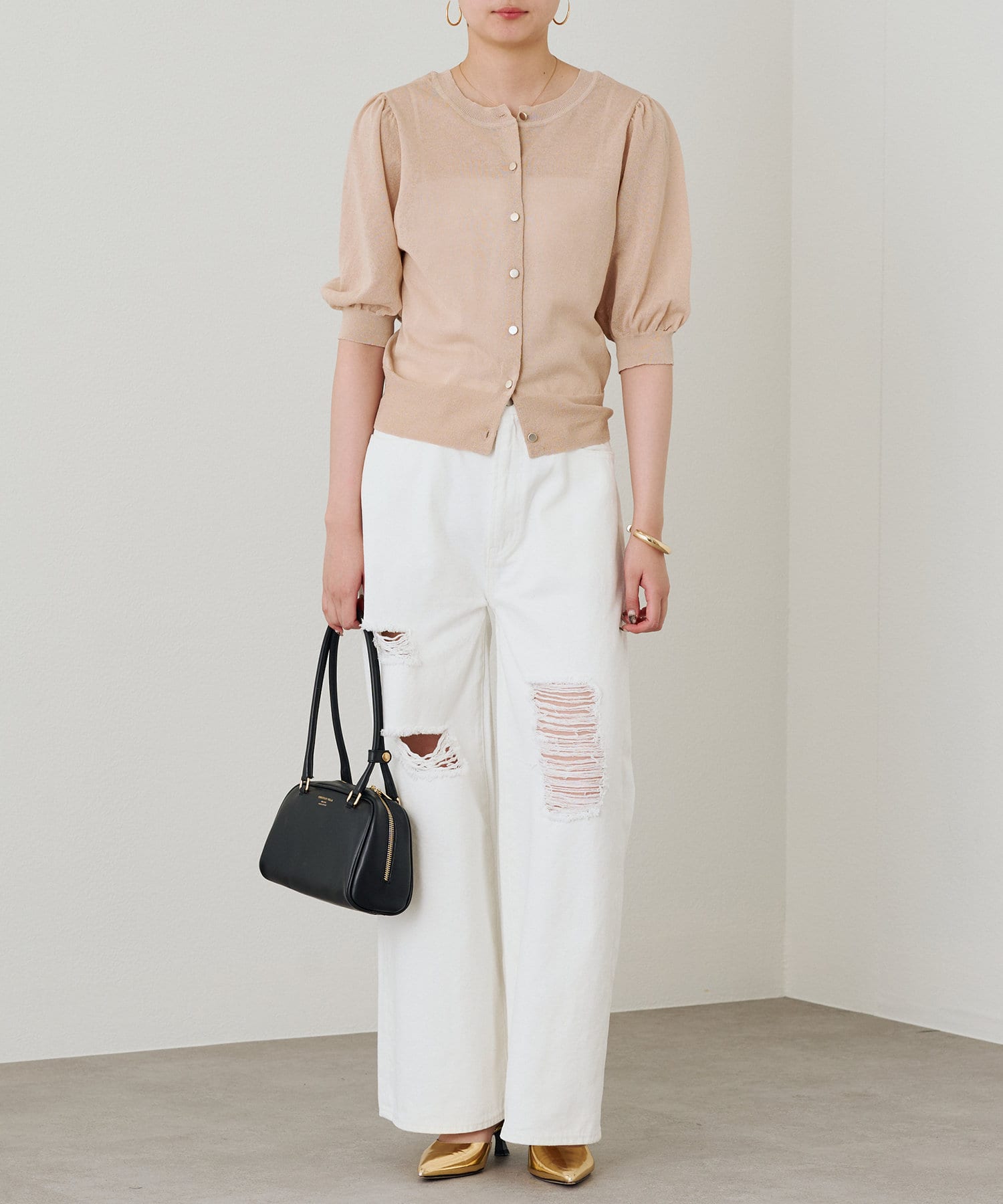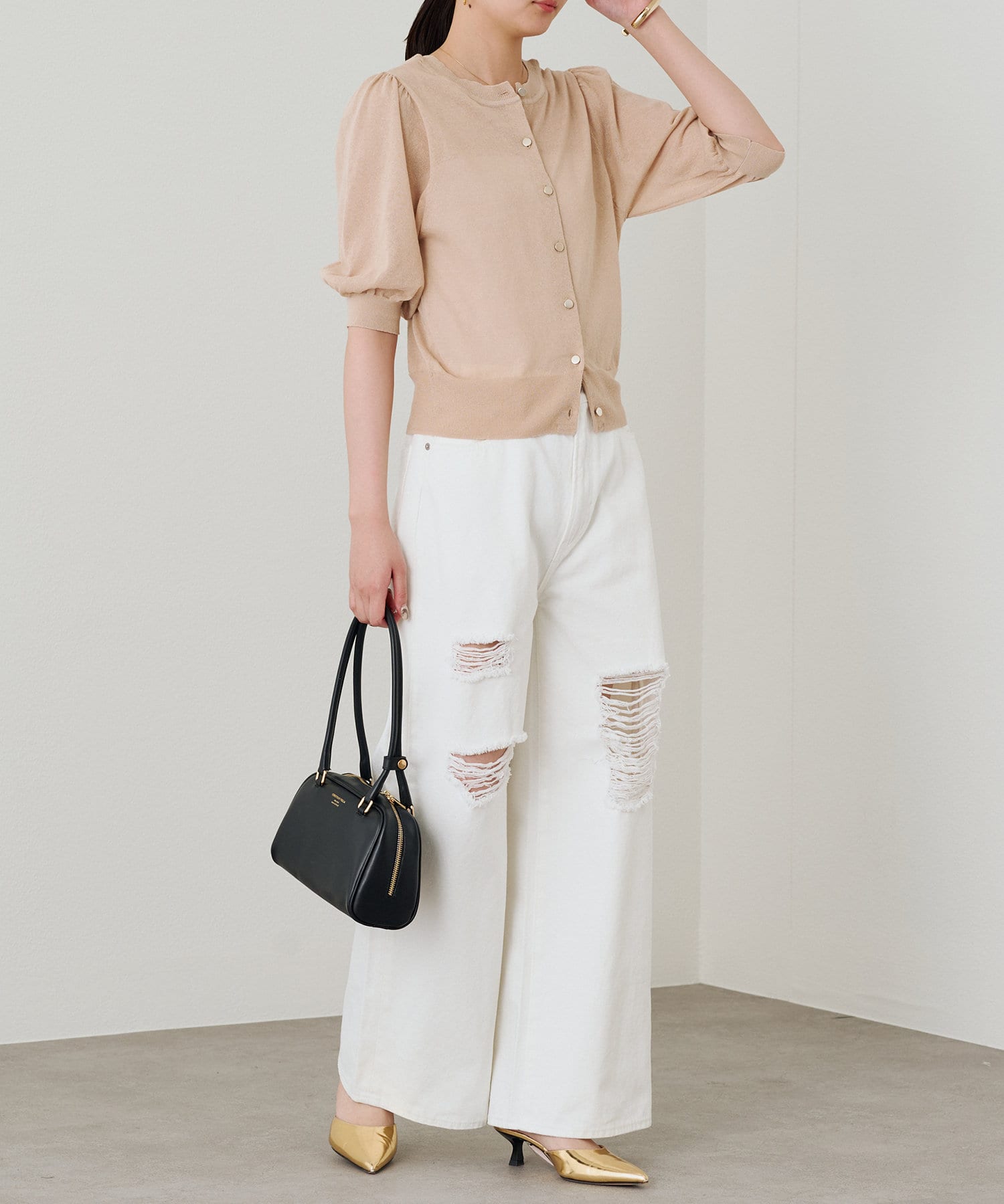 袖はふんわりとしたパフスリーブで、可愛さもありながら、上品さも兼ね備えたアイテム。