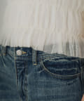 短めのフリル袖が、フェミニンな印象をプラスしてくれ、二の腕をさりげなくカバーしてくれる効果も期待できます。