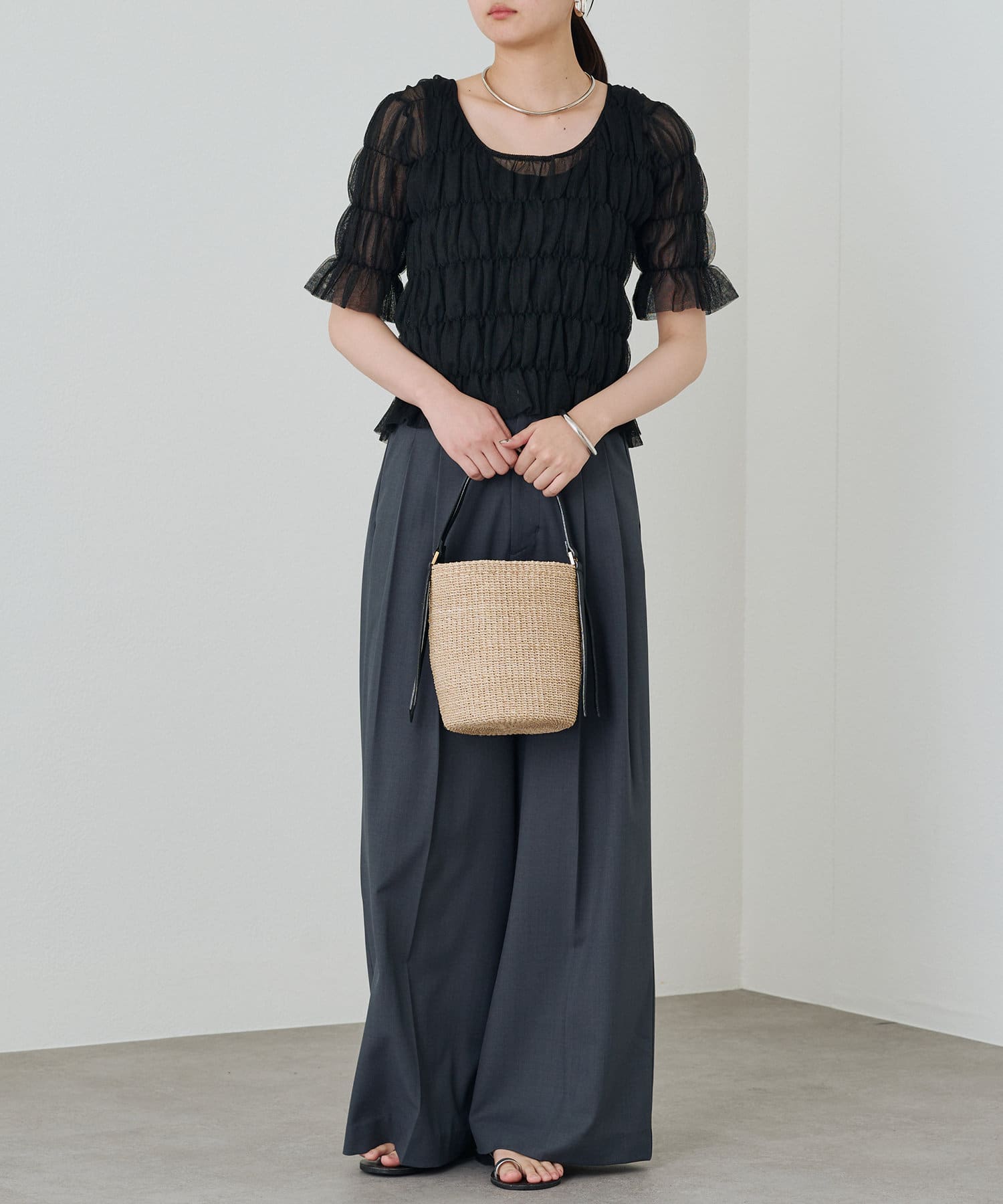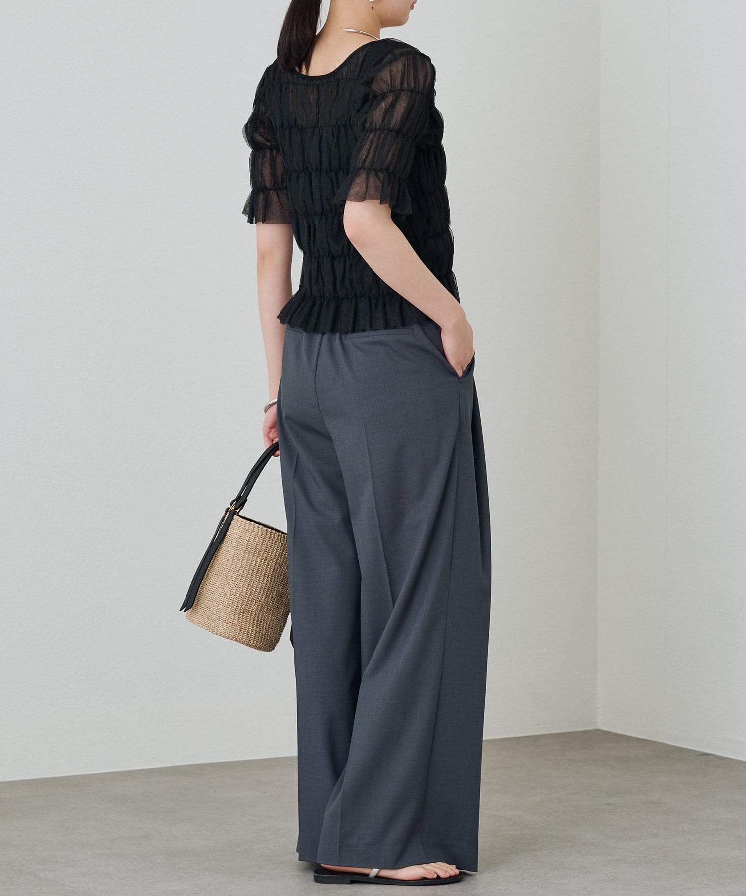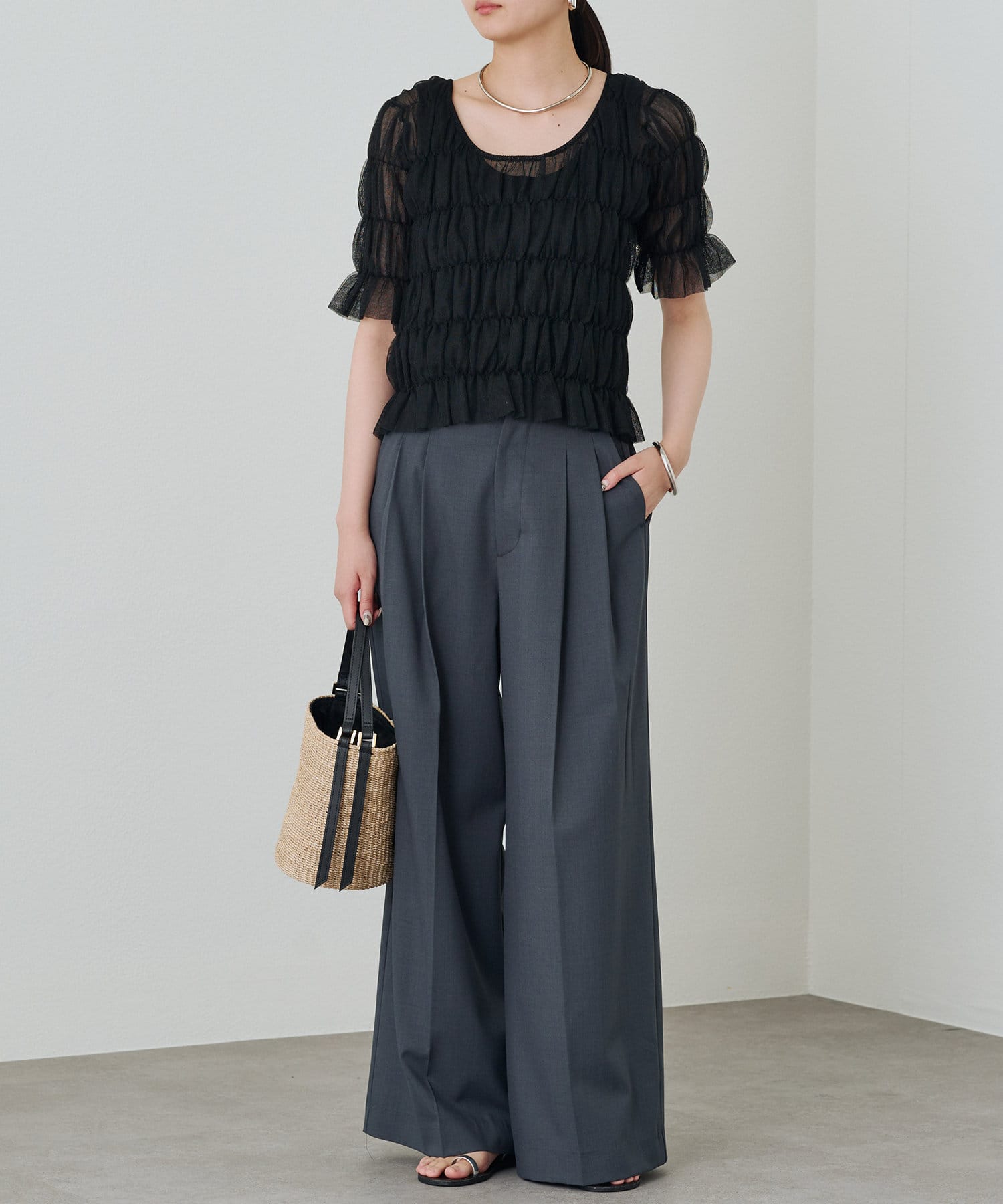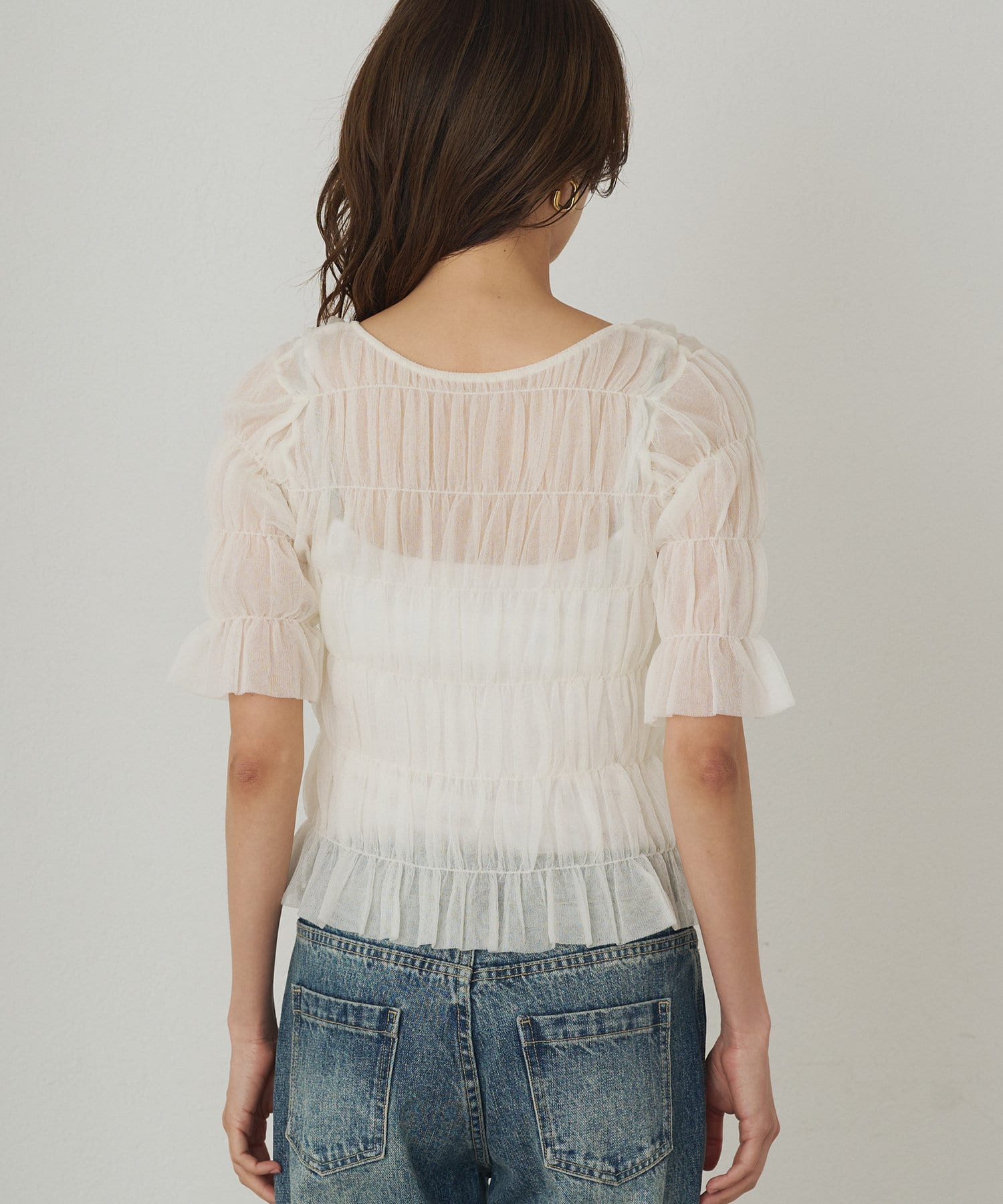 シアーな素材が軽やかで、涼しげな印象のブラウス。