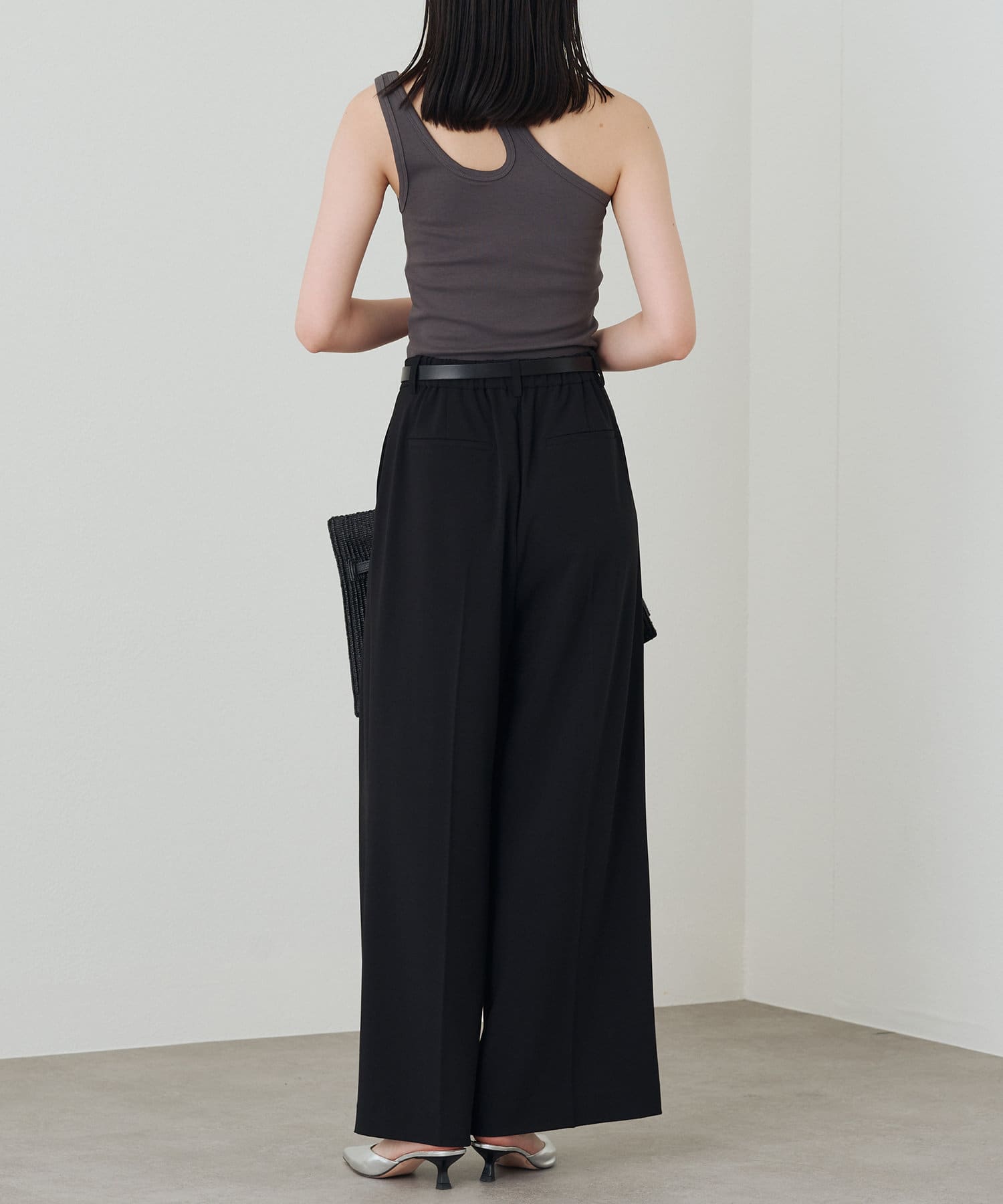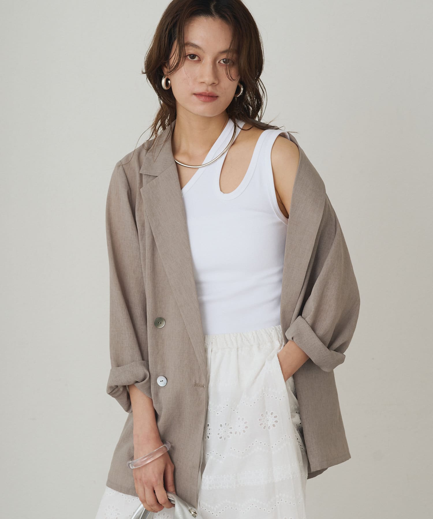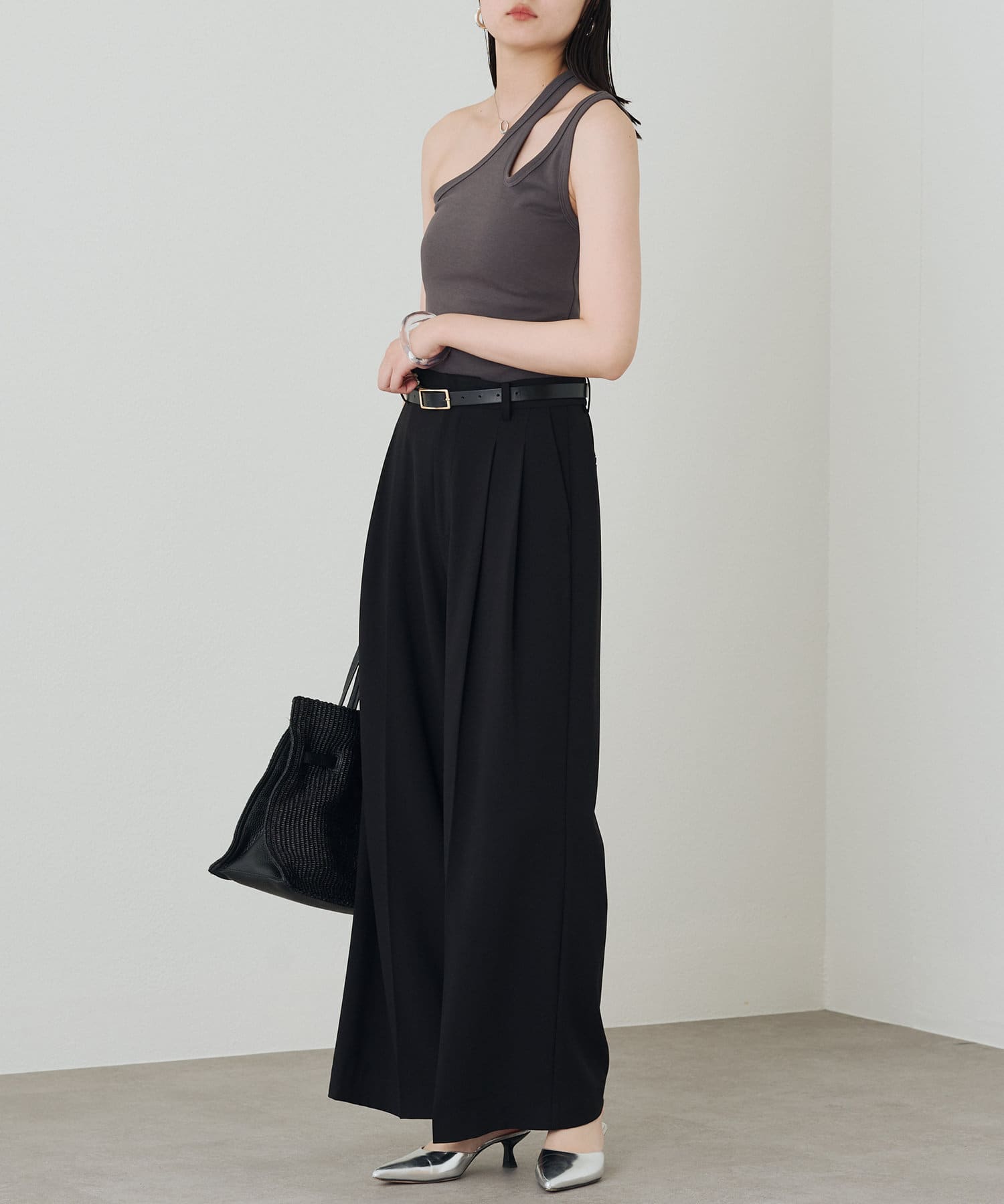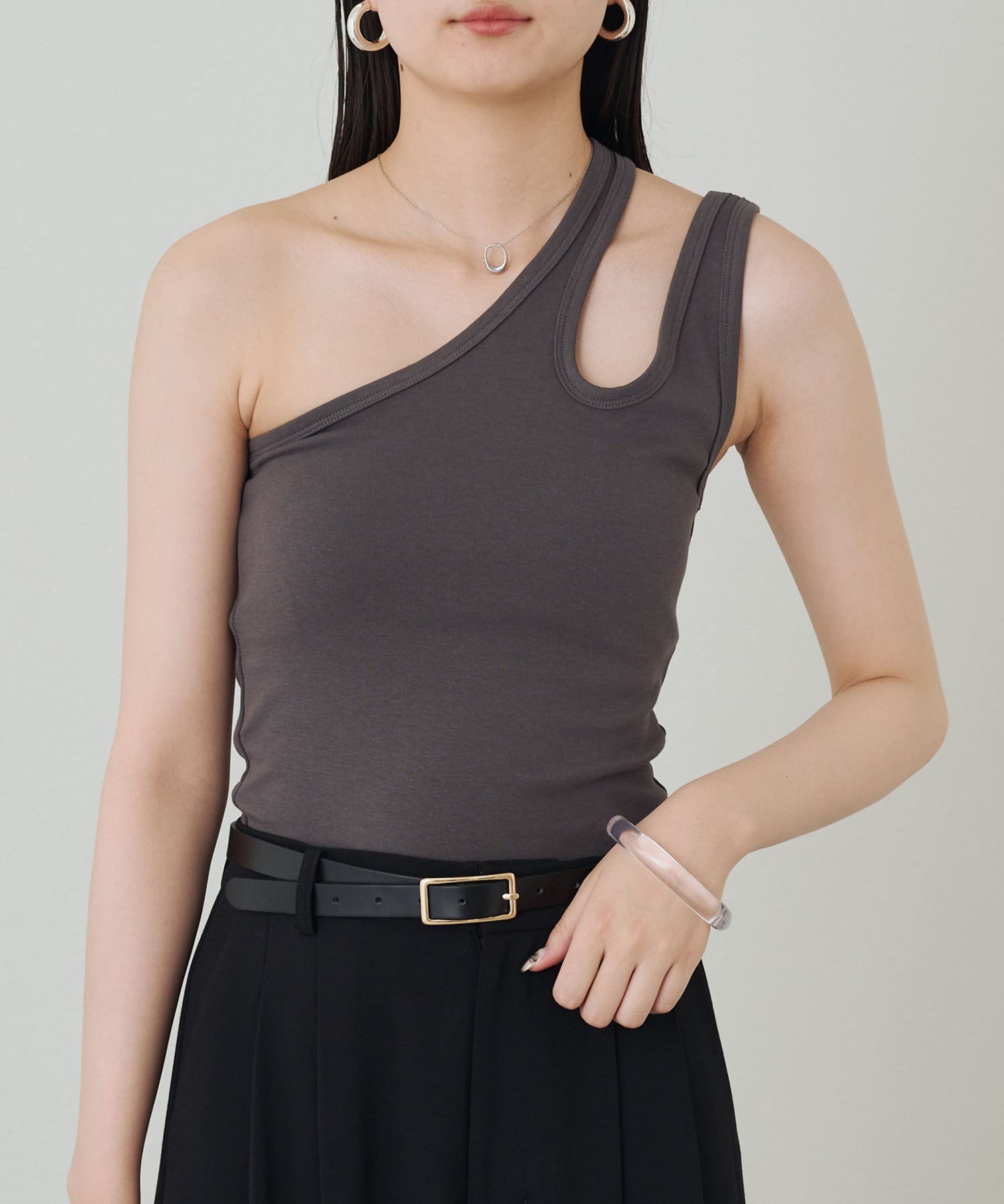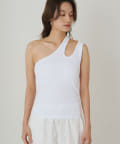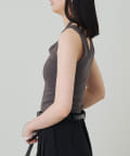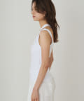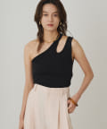 肩のラインに沿ったカットアウトが、さりげない肌見せが抜け感をプラスしてくれるタンクトップ。
