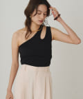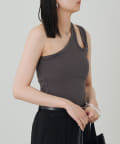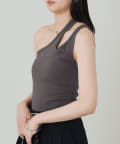 ワンショルダーデザインで、モダンでスタイリッシュなタンクトップ