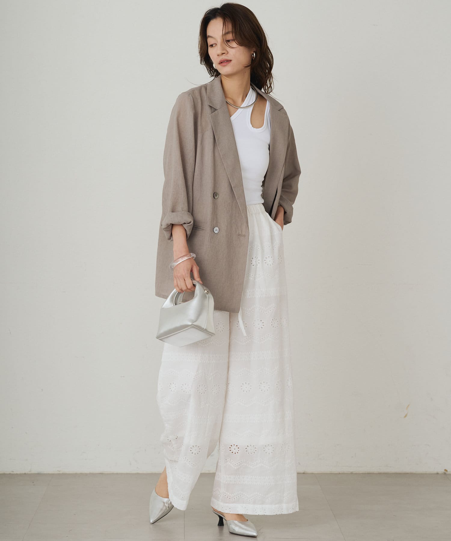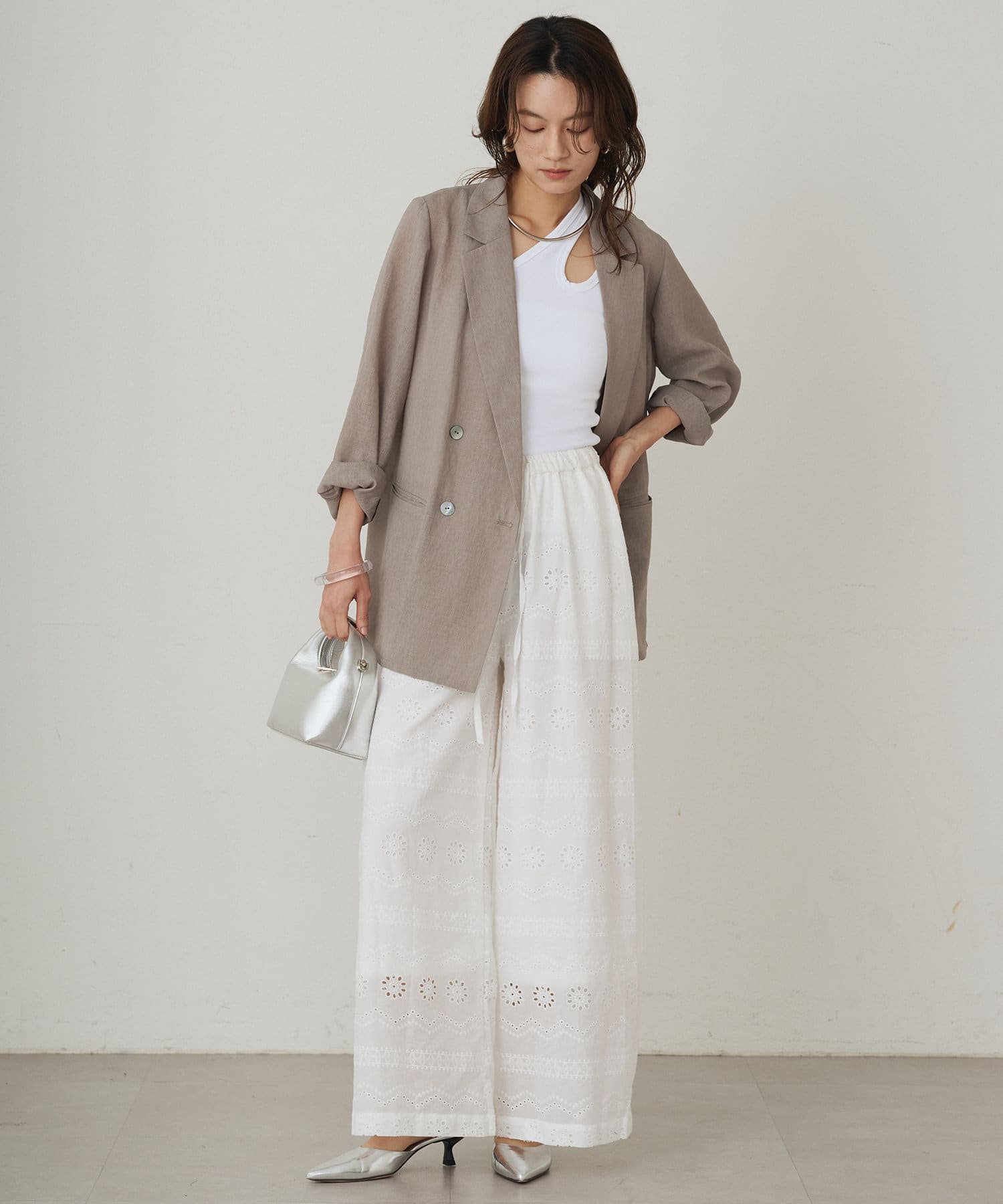 デニムやワイドパンツと合わせるとカジュアルに着ていただけます。