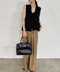 生地は光沢感と高級感があり、品のあるモード感を感じさせてくれるアイテムです。