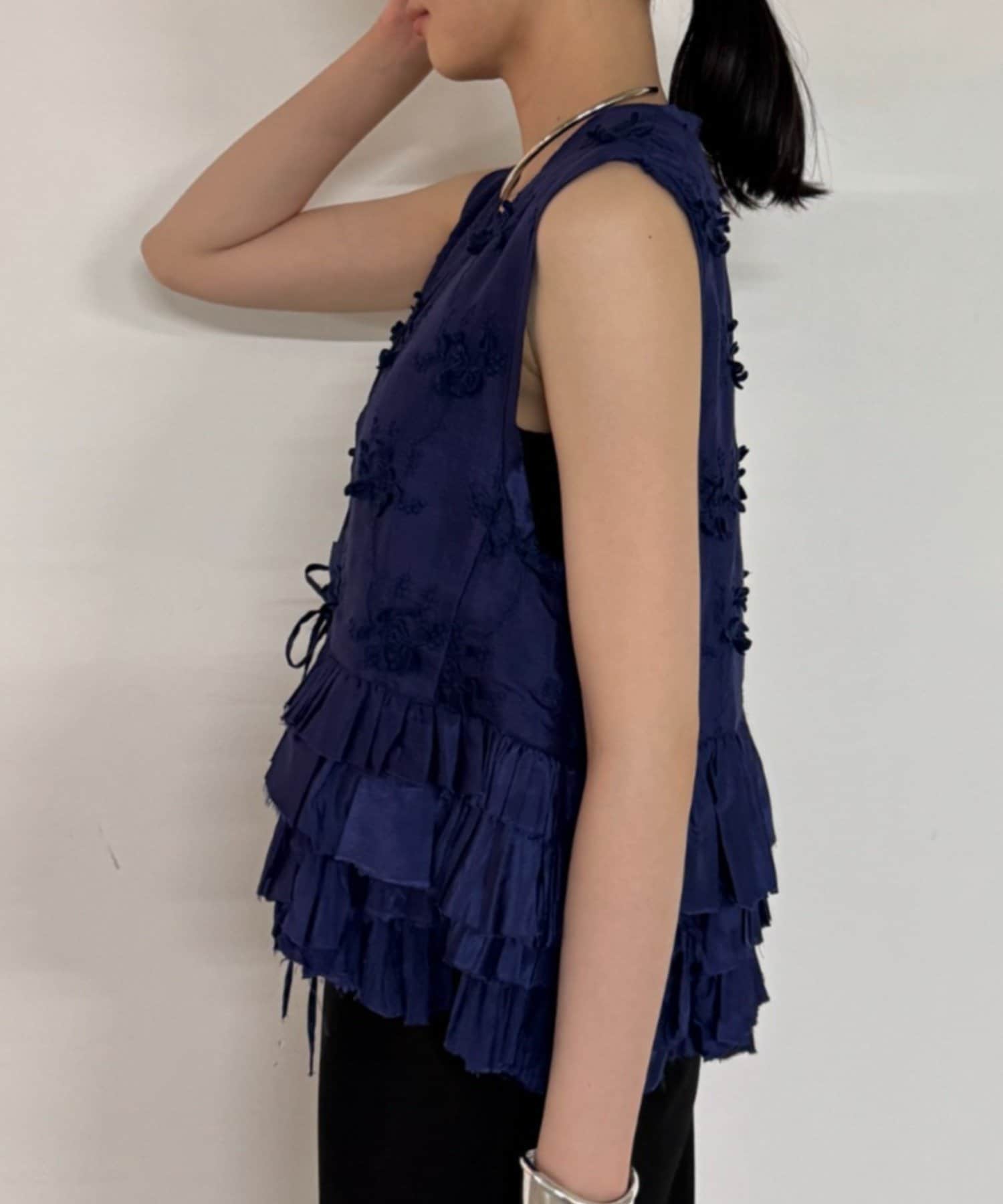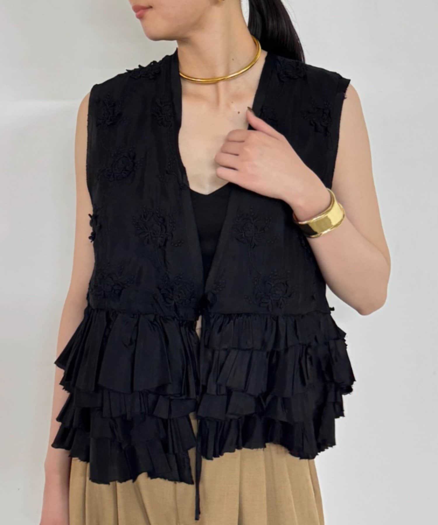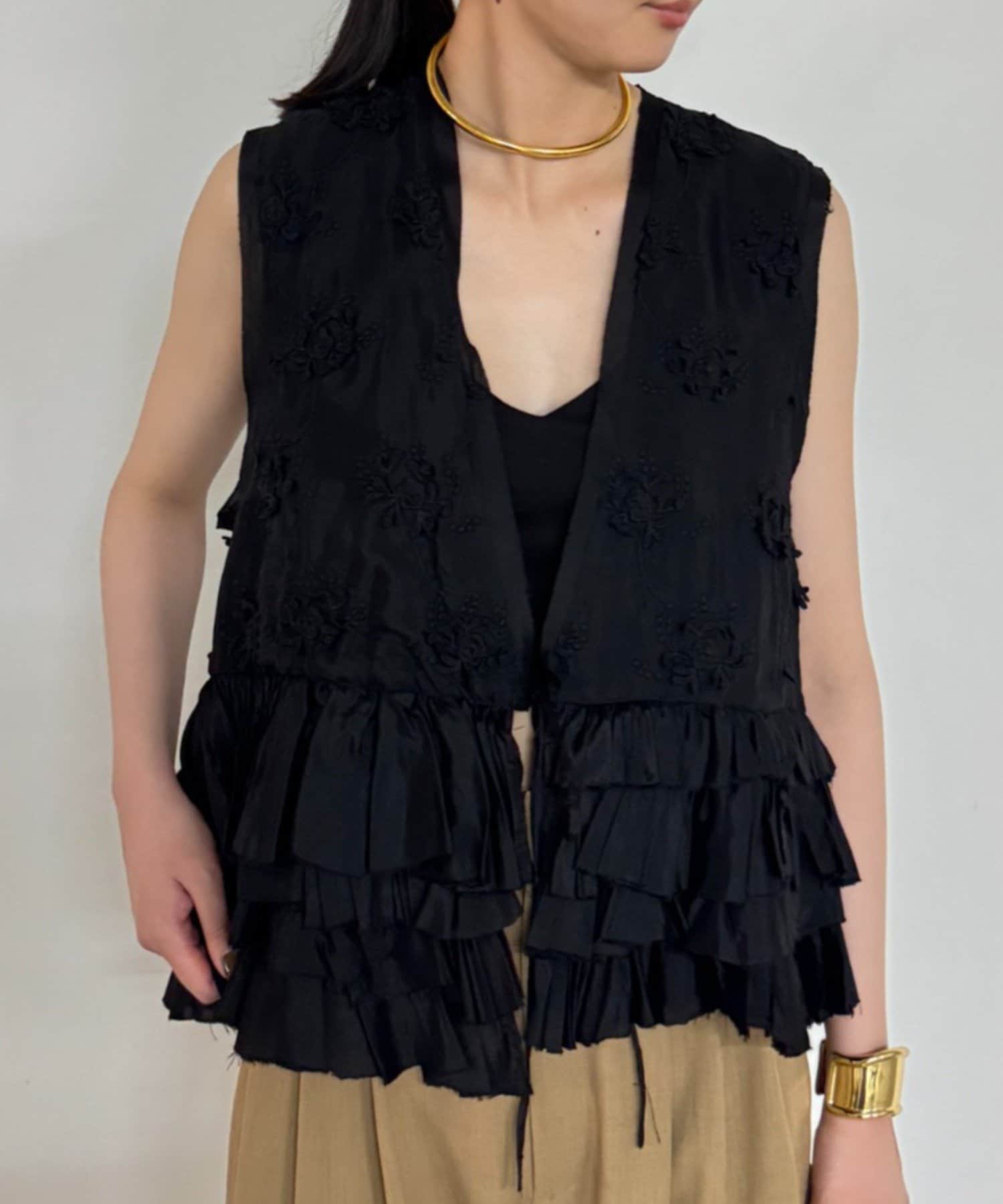 花柄とフリルが華やかで大人可愛いベスト