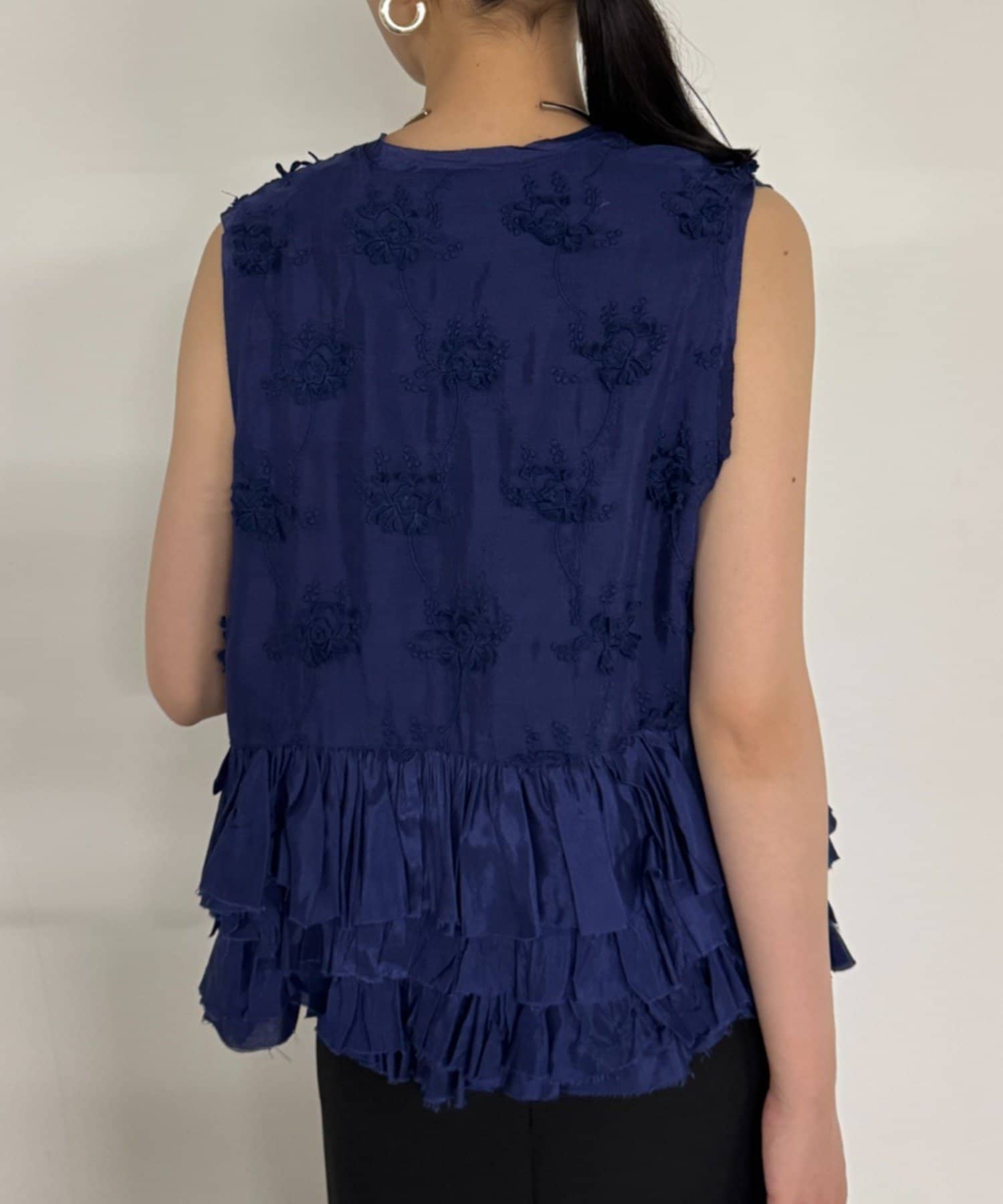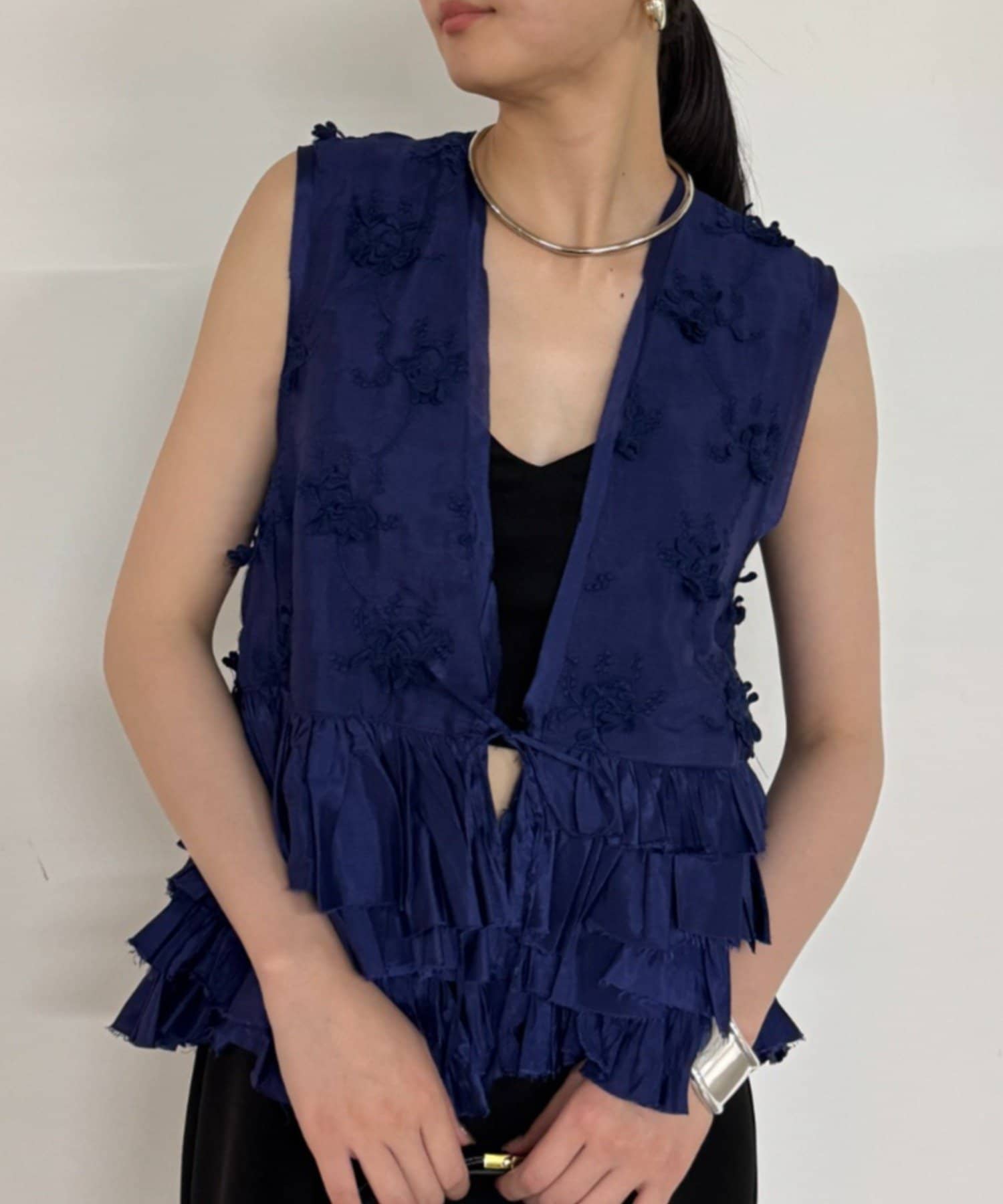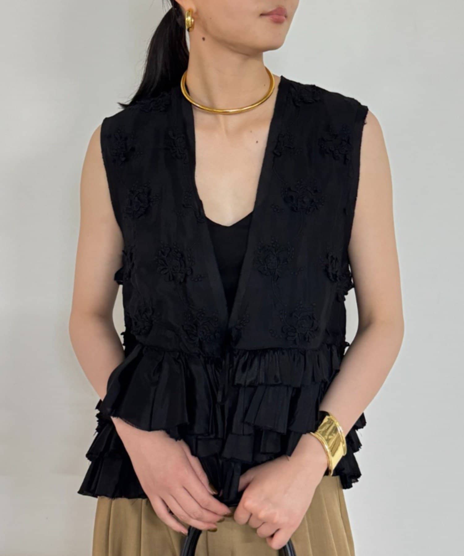 花柄とフリルが華やかで大人可愛いベスト