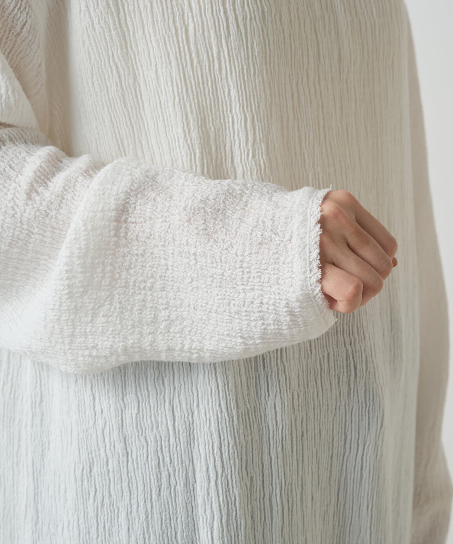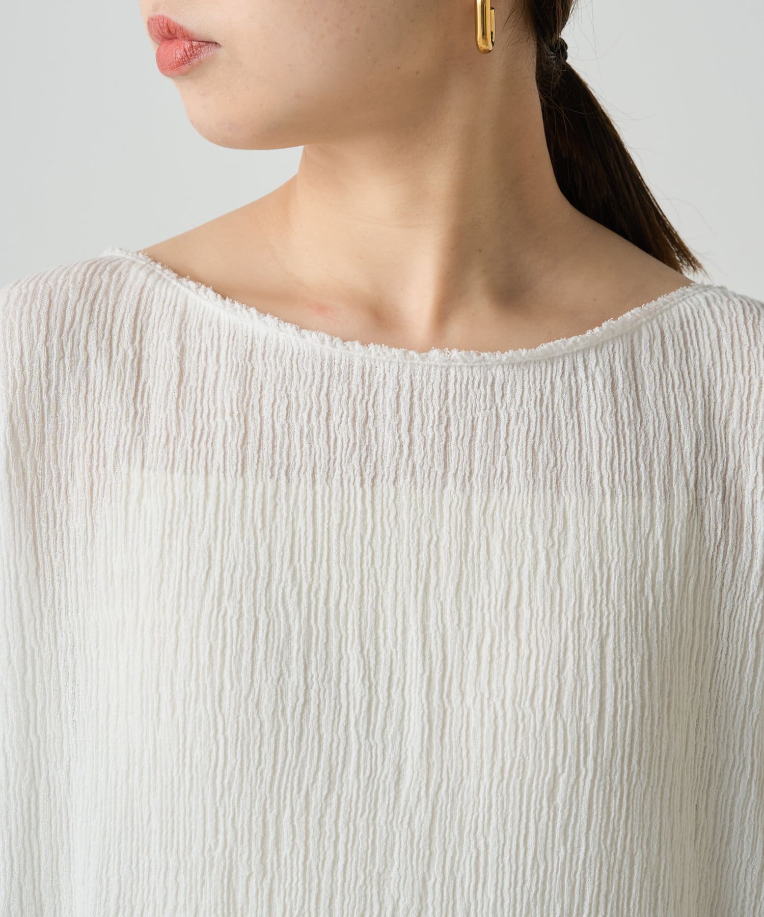 この製品は、柔らかく、デリケートな風合いを出す為、糸及び素材の特性上、引っ掛け、引っ掛かりにより糸が飛び出したり、