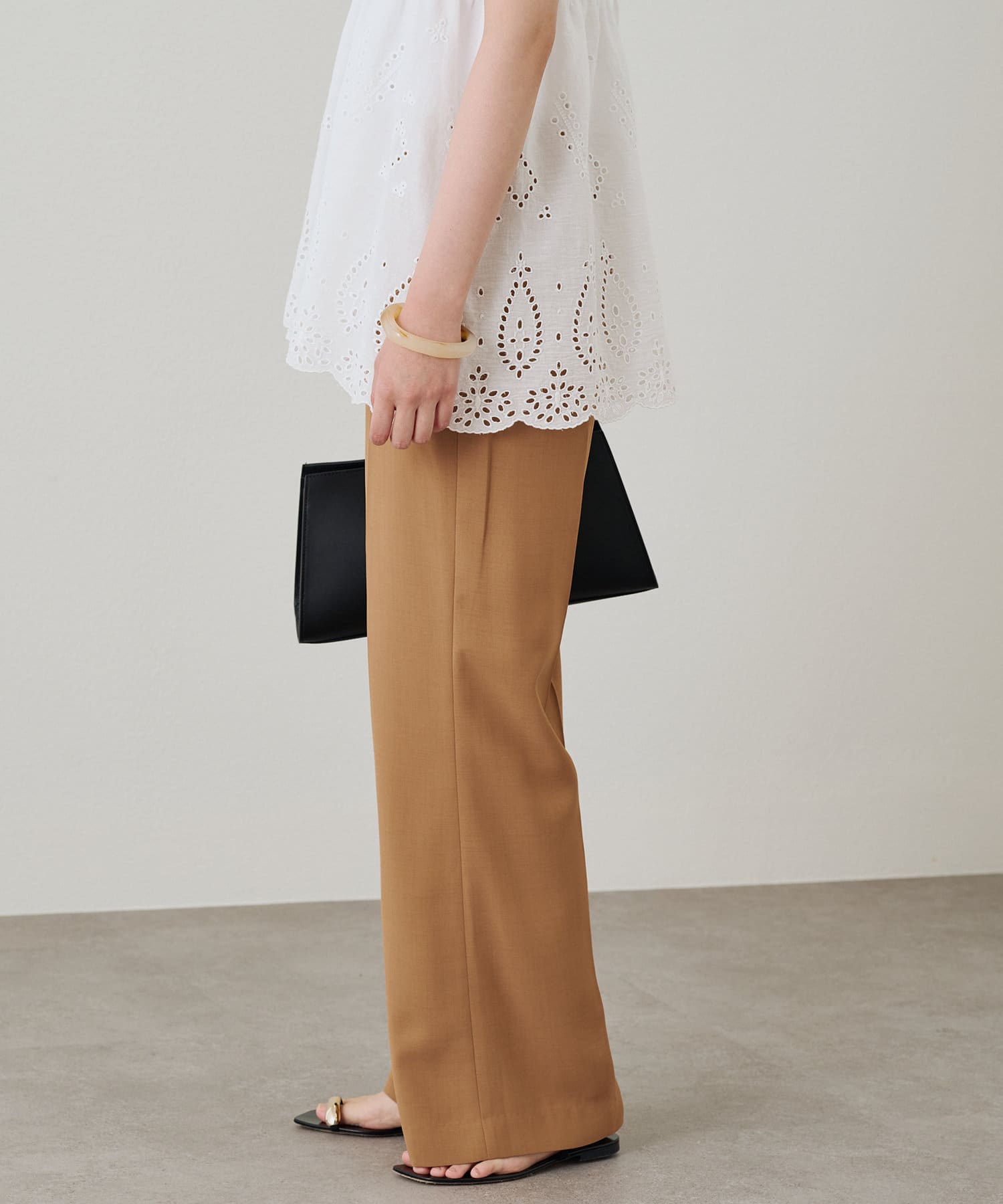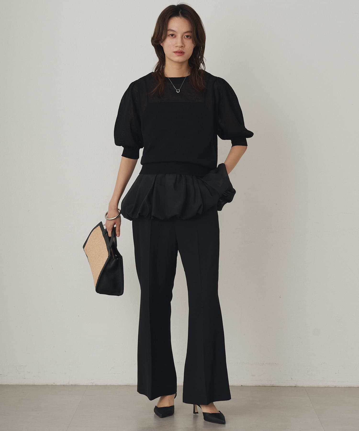 ブラウスやシャツと合わせれば、オフィスにも対応できるきちんとスタイルに。