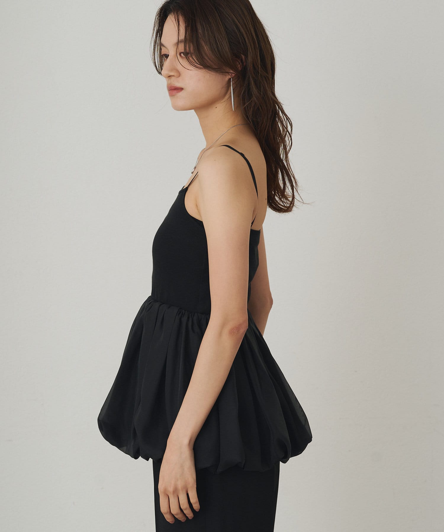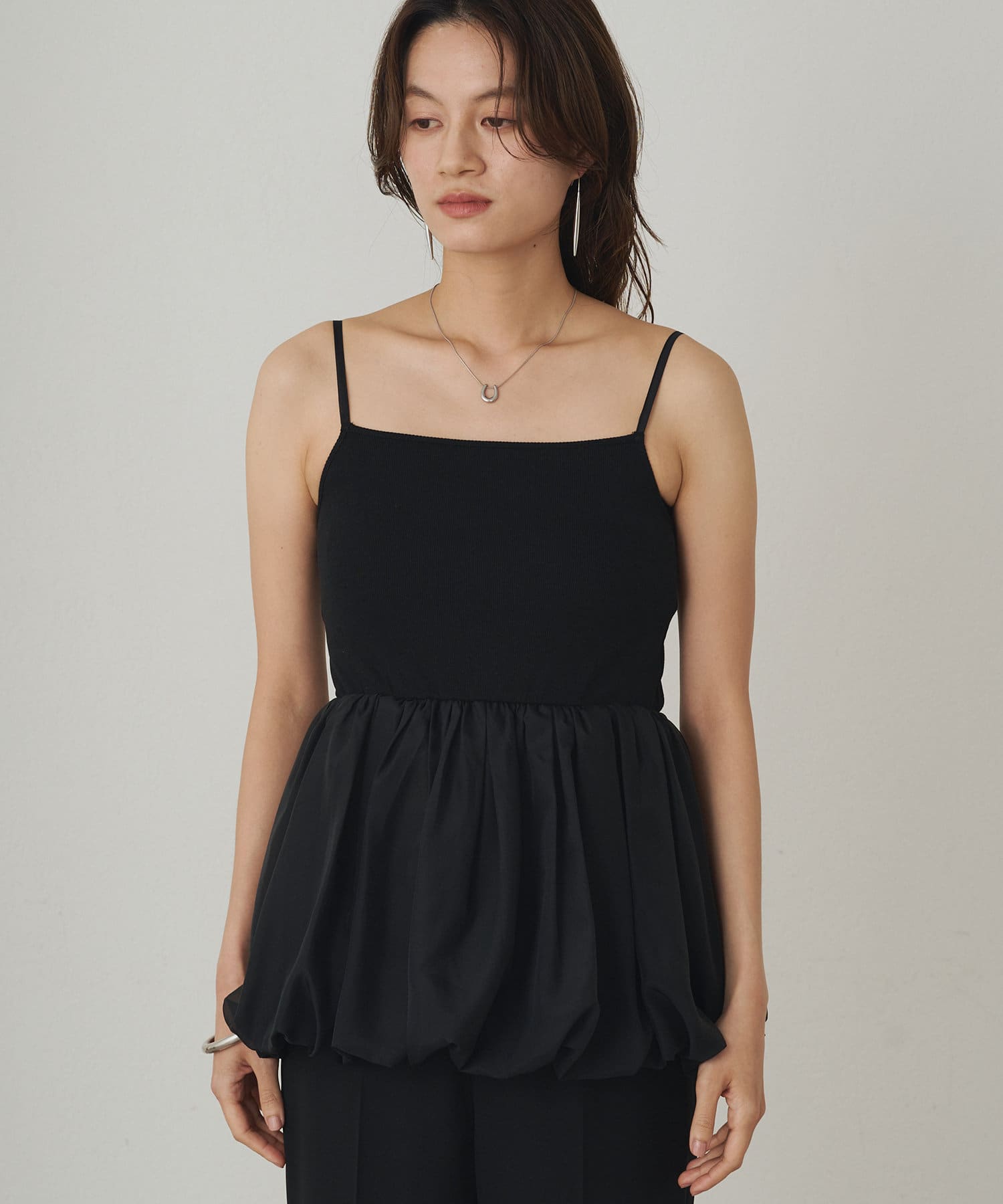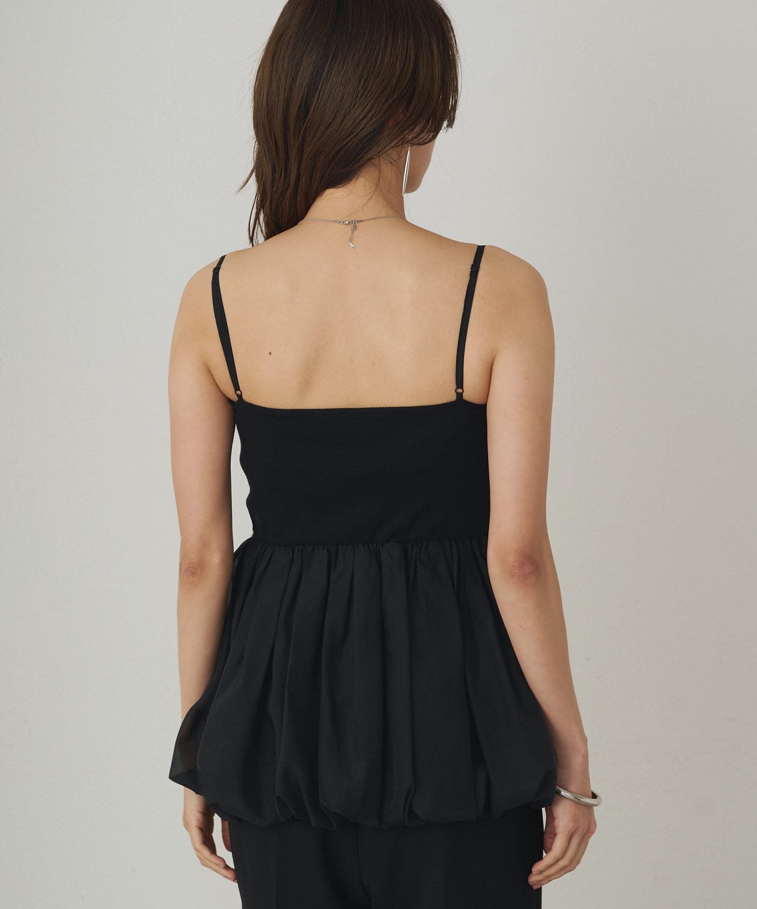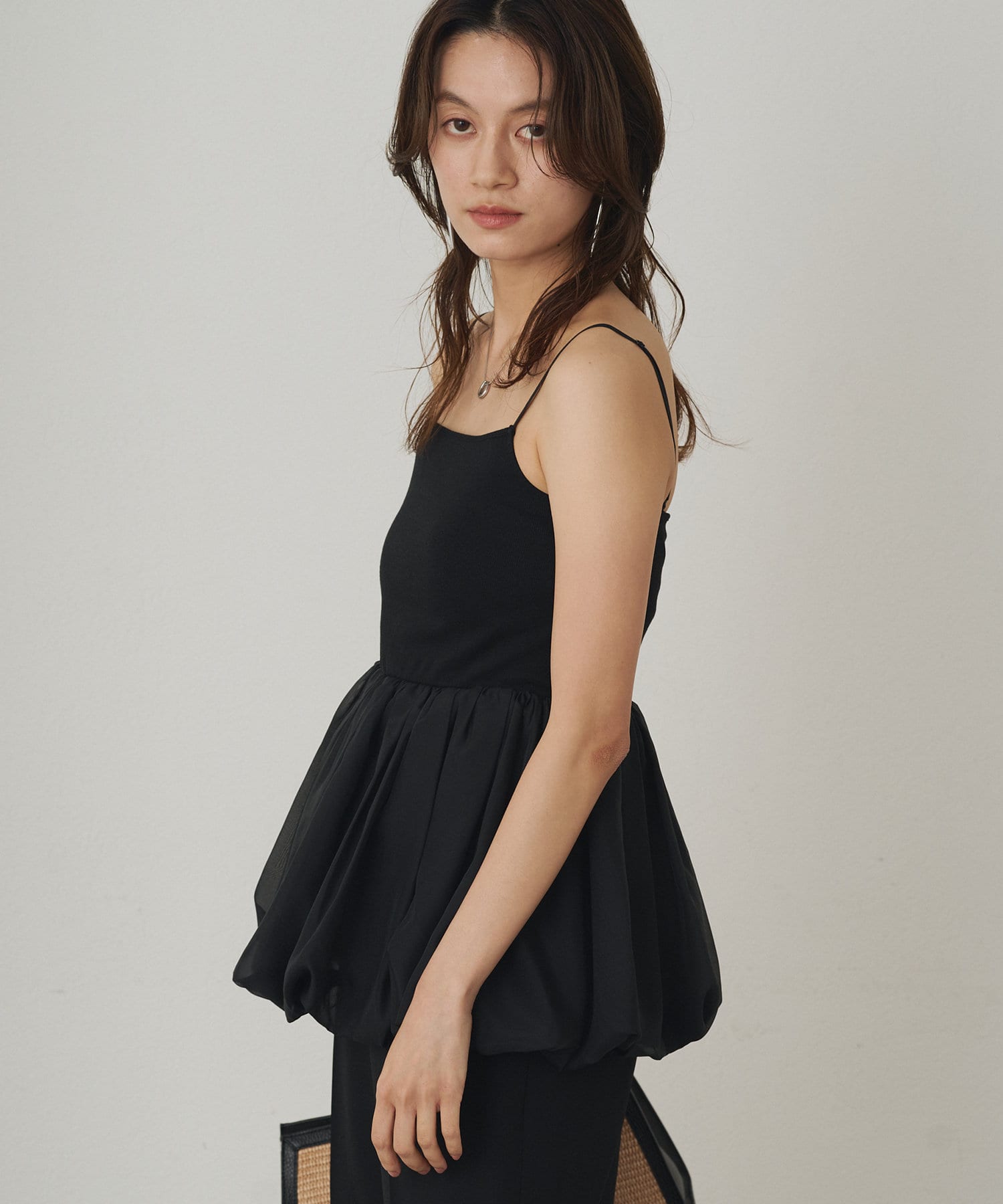 スクエアネックのデザインがデコルテラインを美しく見せるバルーンインナーキャミ