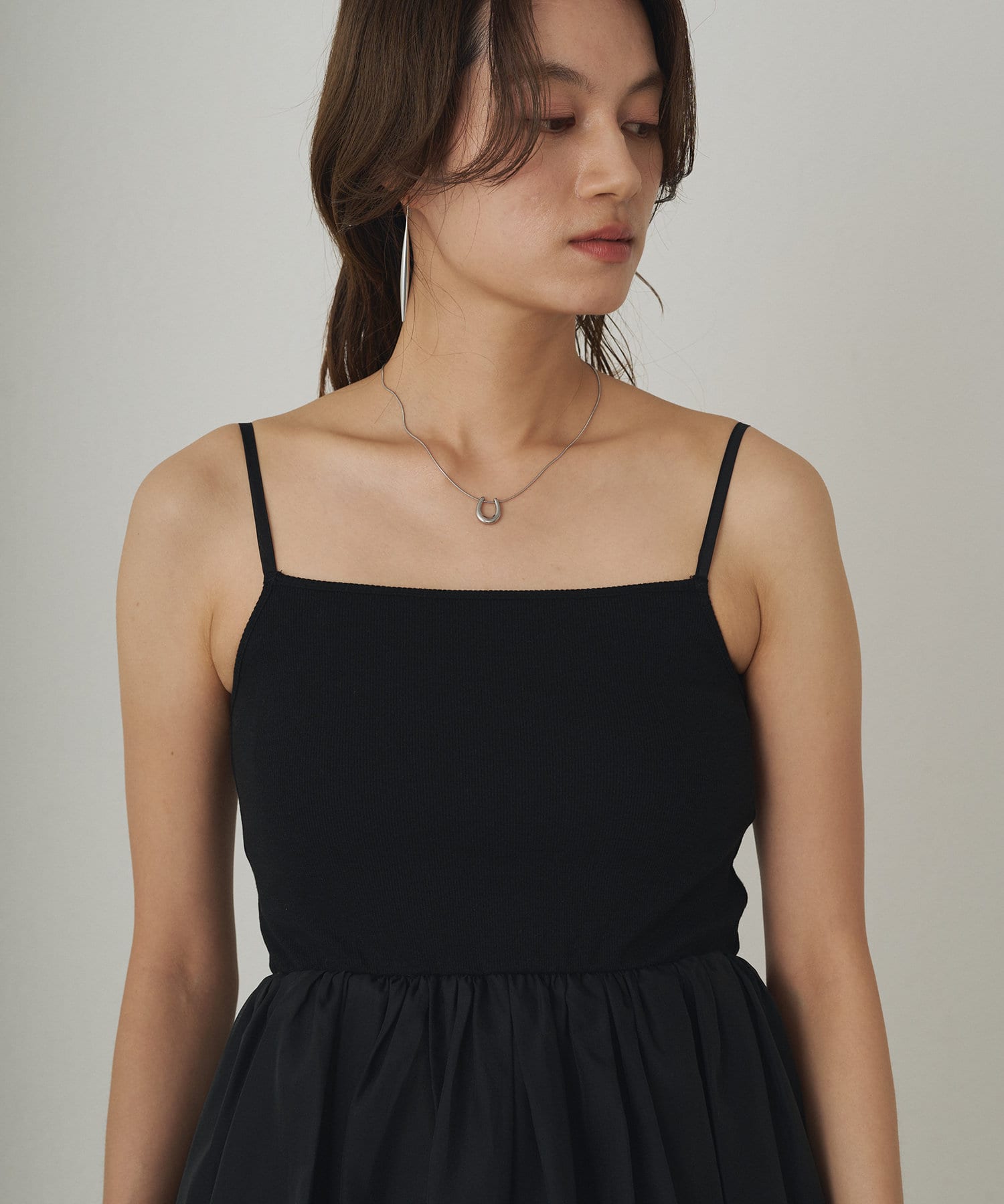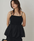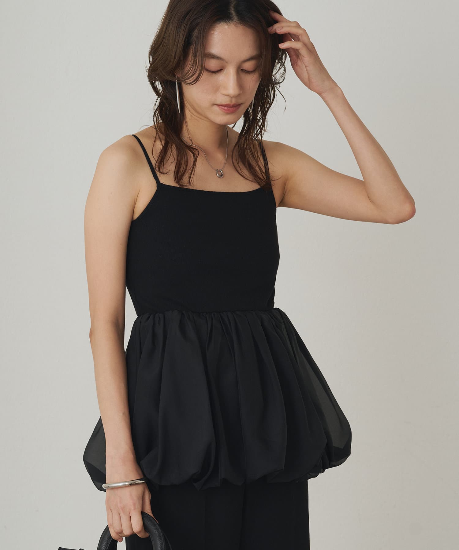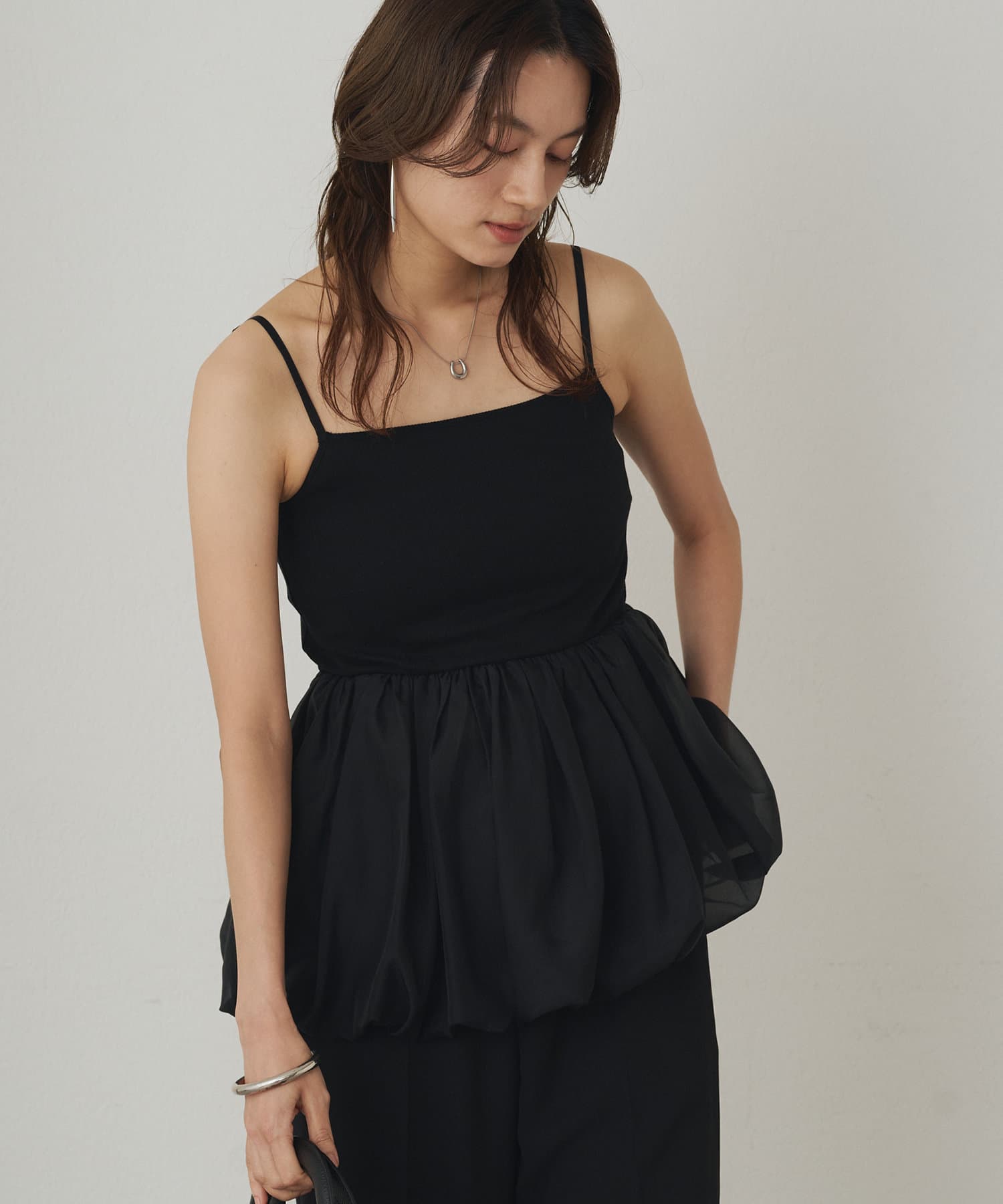 スクエアネックのデザインがデコルテラインを美しく見せるバルーンインナーキャミ