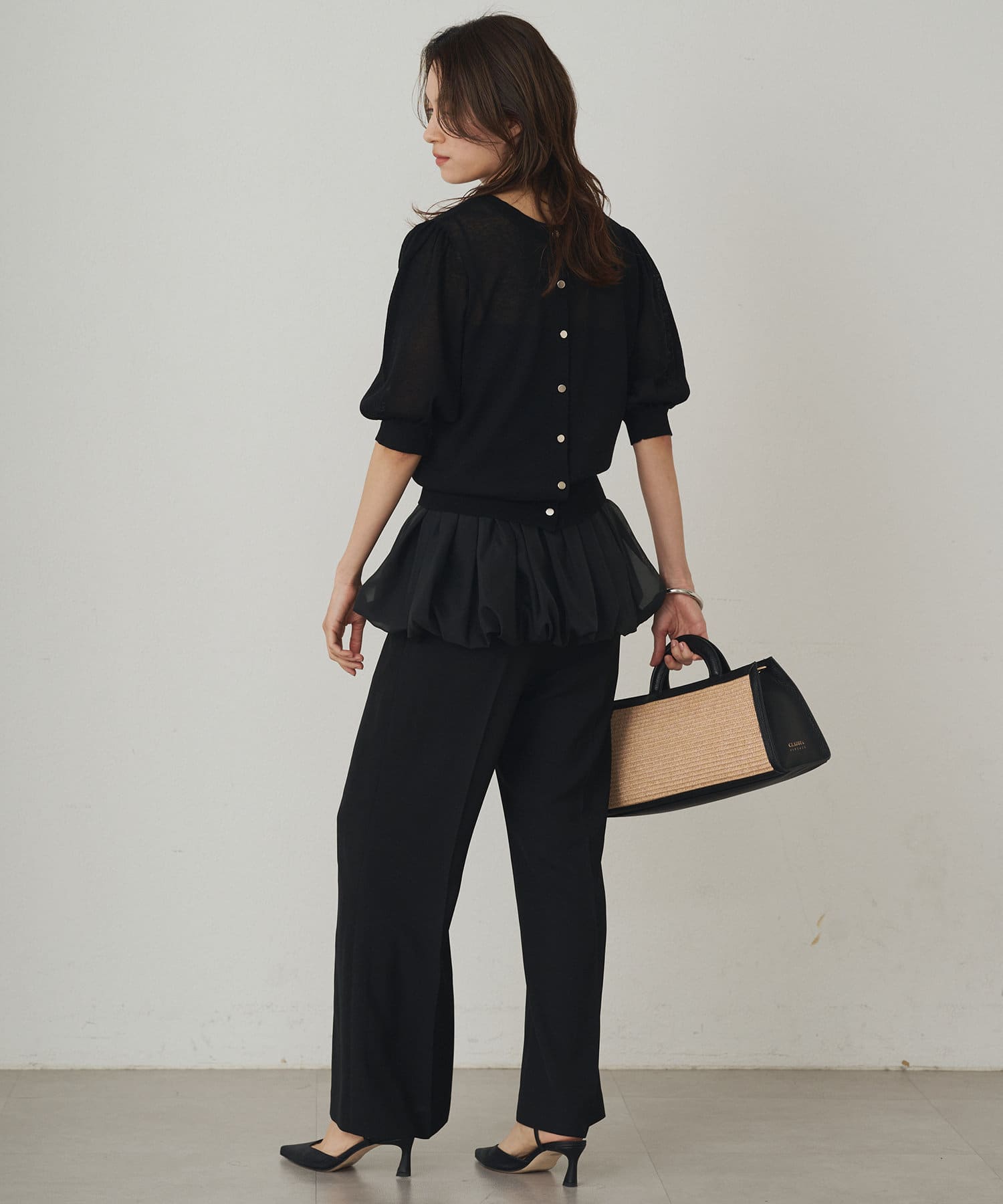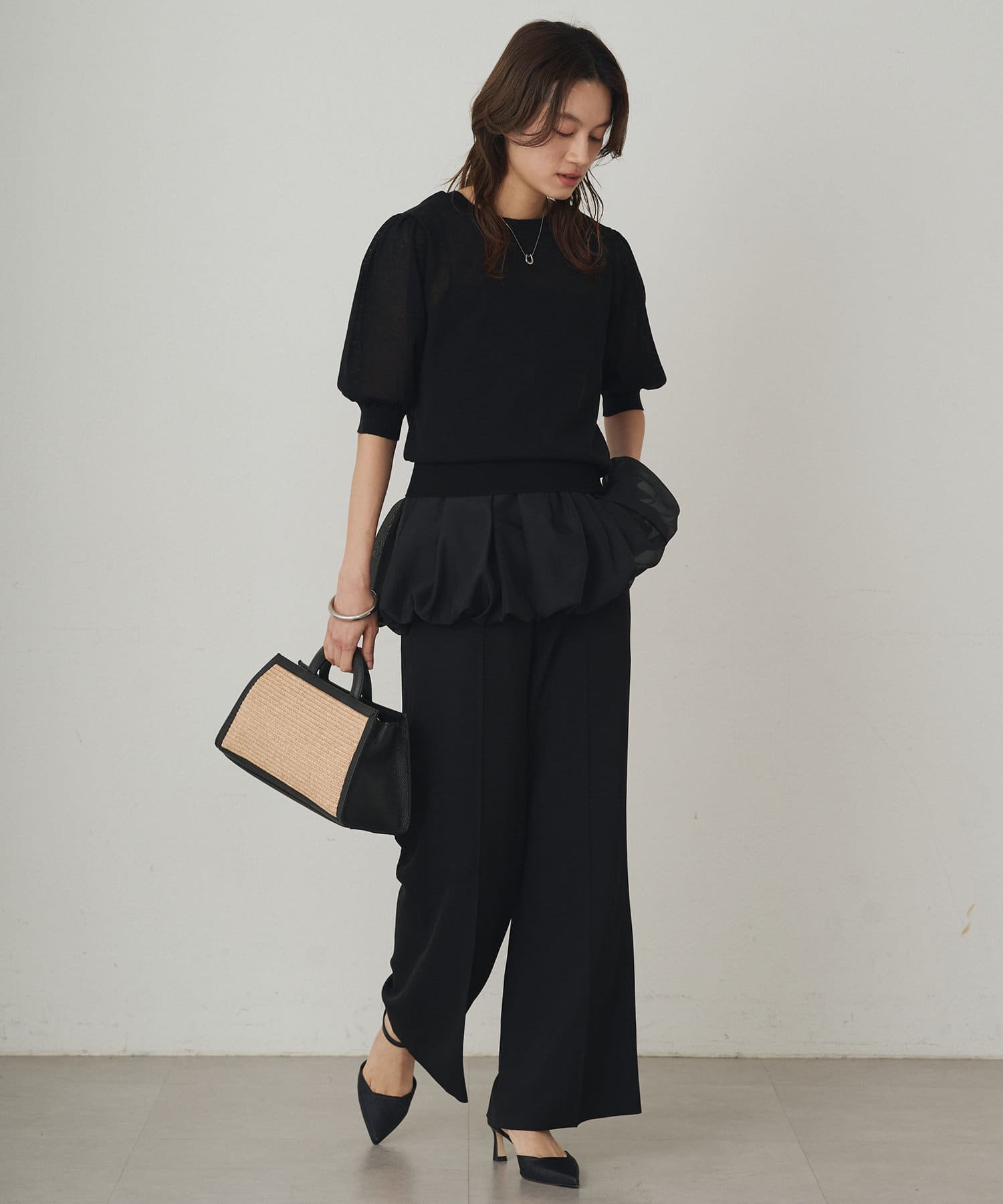 ボリューム感のあるバルーンシルエットが、動くたびにふんわりと揺れる裾が、軽やかな印象を与えます。