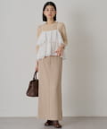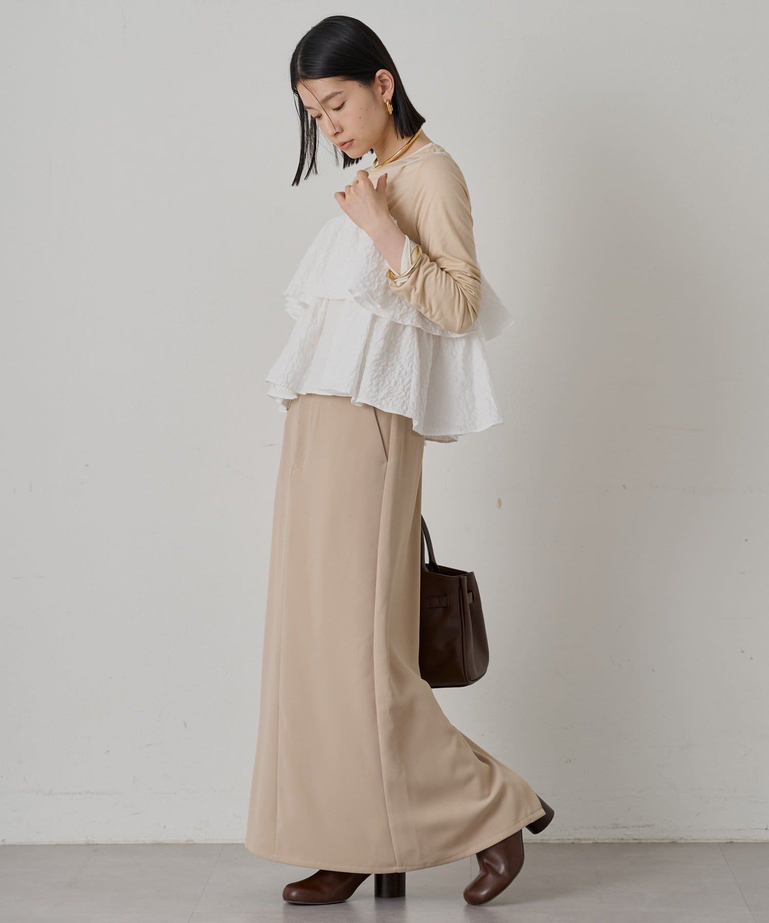 立体感のあるフリルが、シンプルなスタイリングにフェミニンなアクセントをプラス。