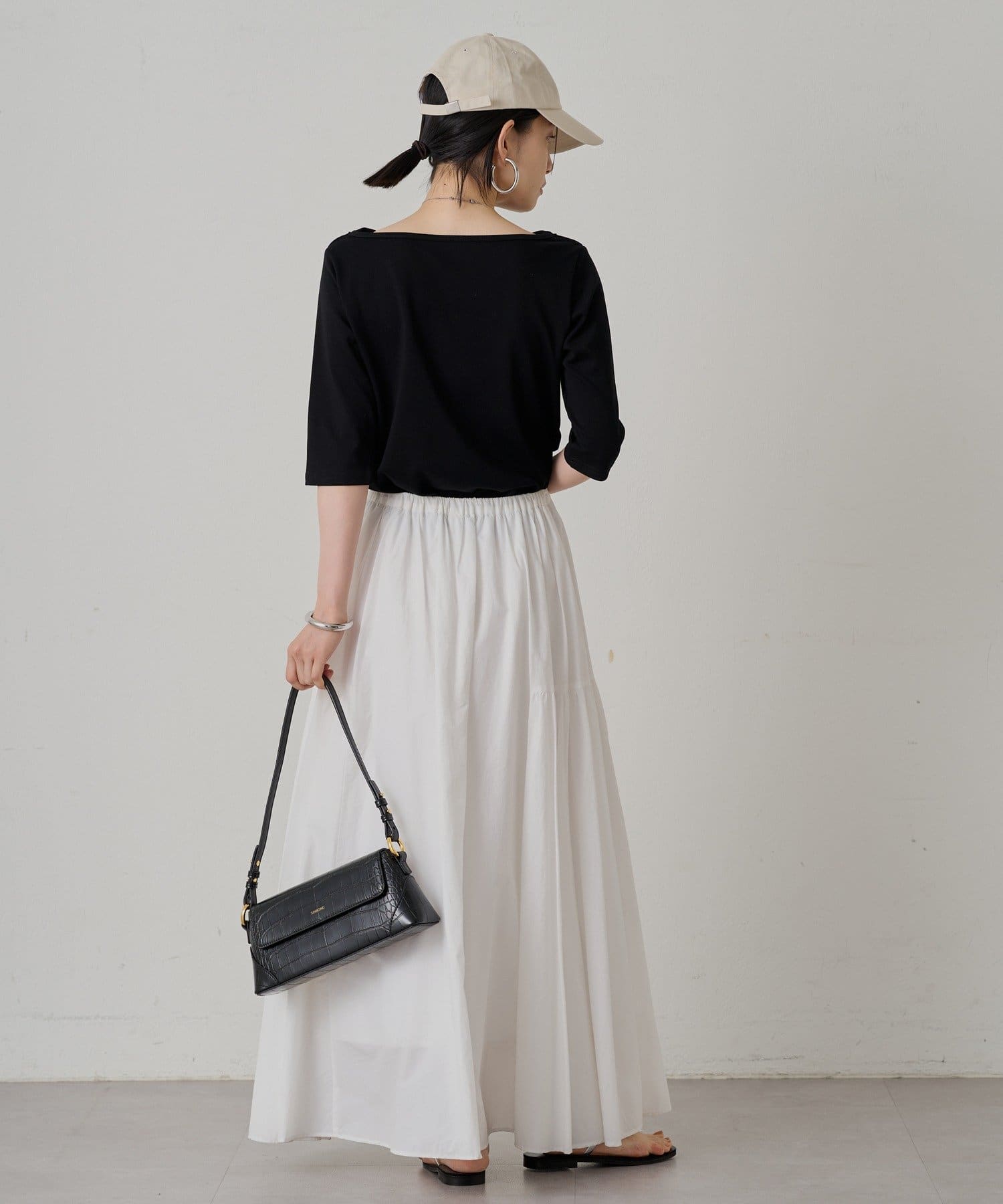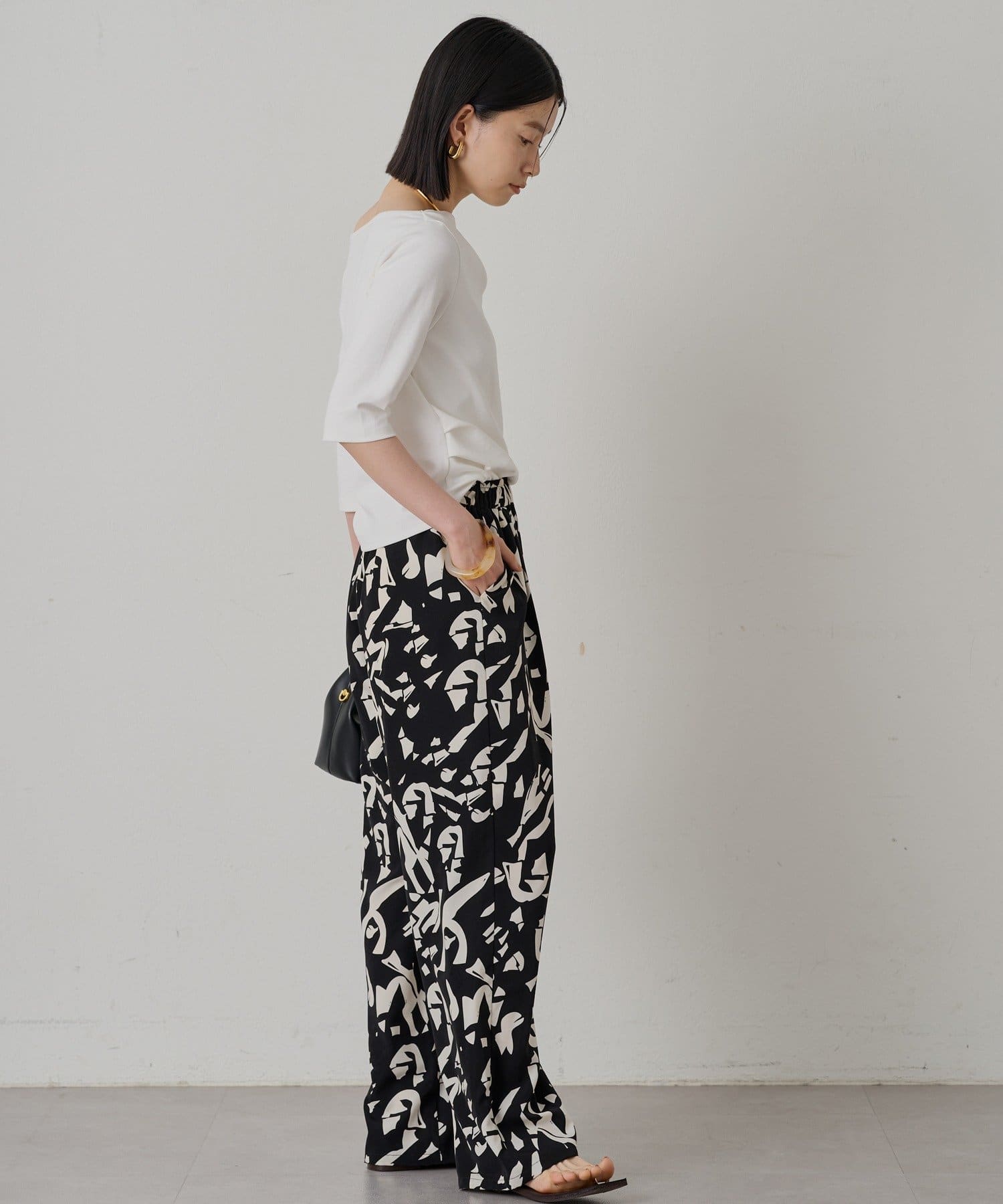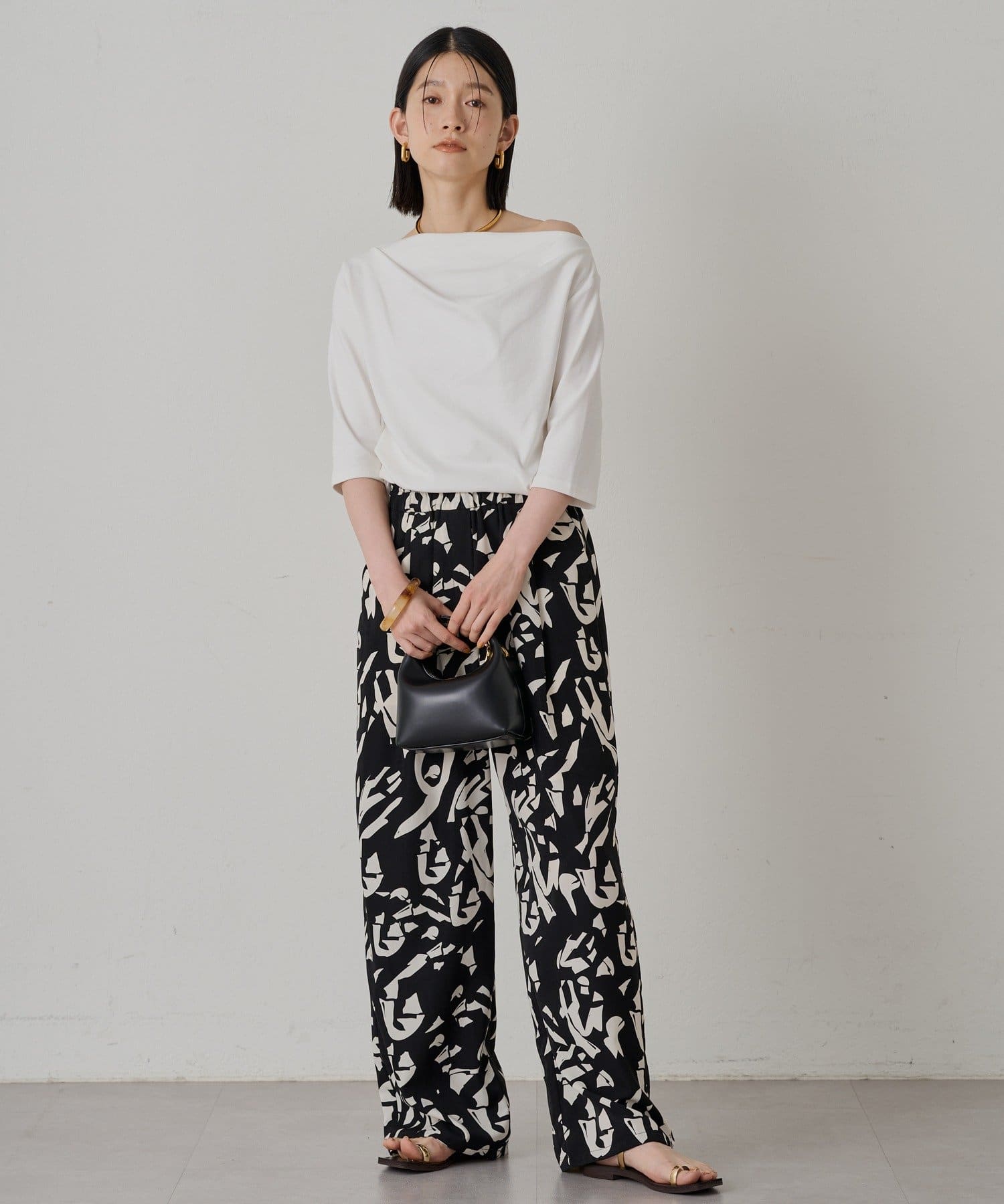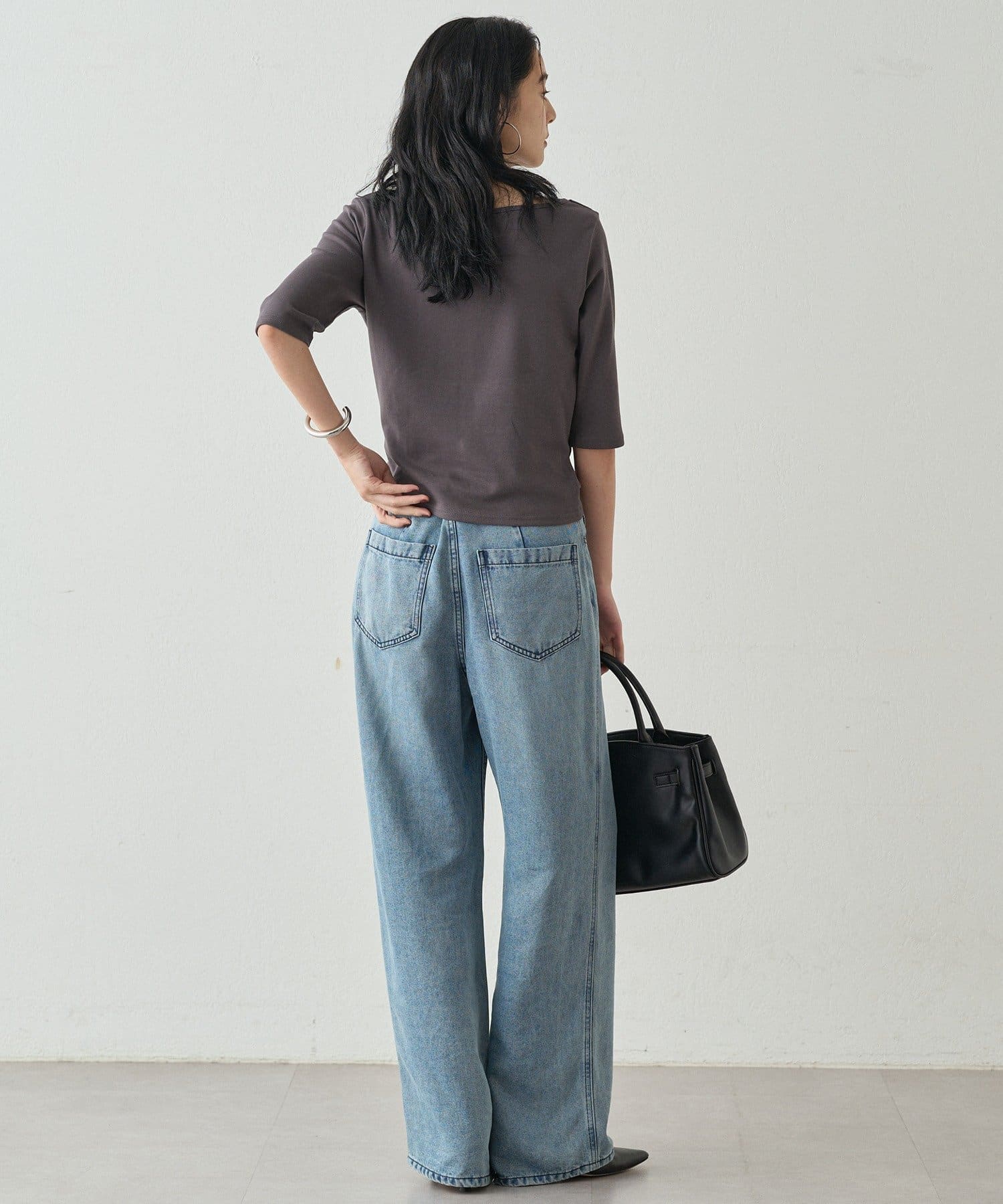 程よい伸縮性があり、快適な着心地です。七分袖で、手首を華奢に見せてくれる効果も。