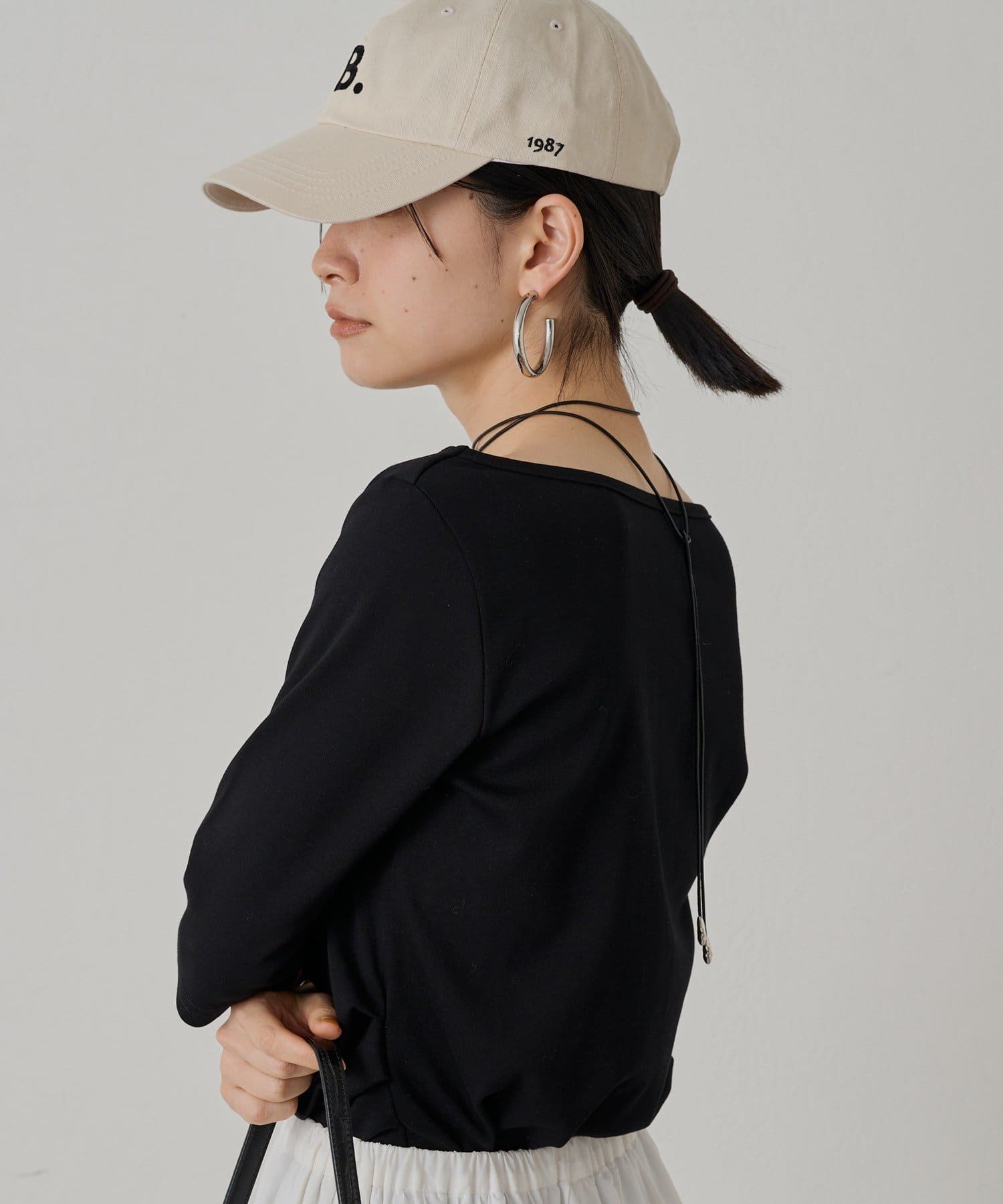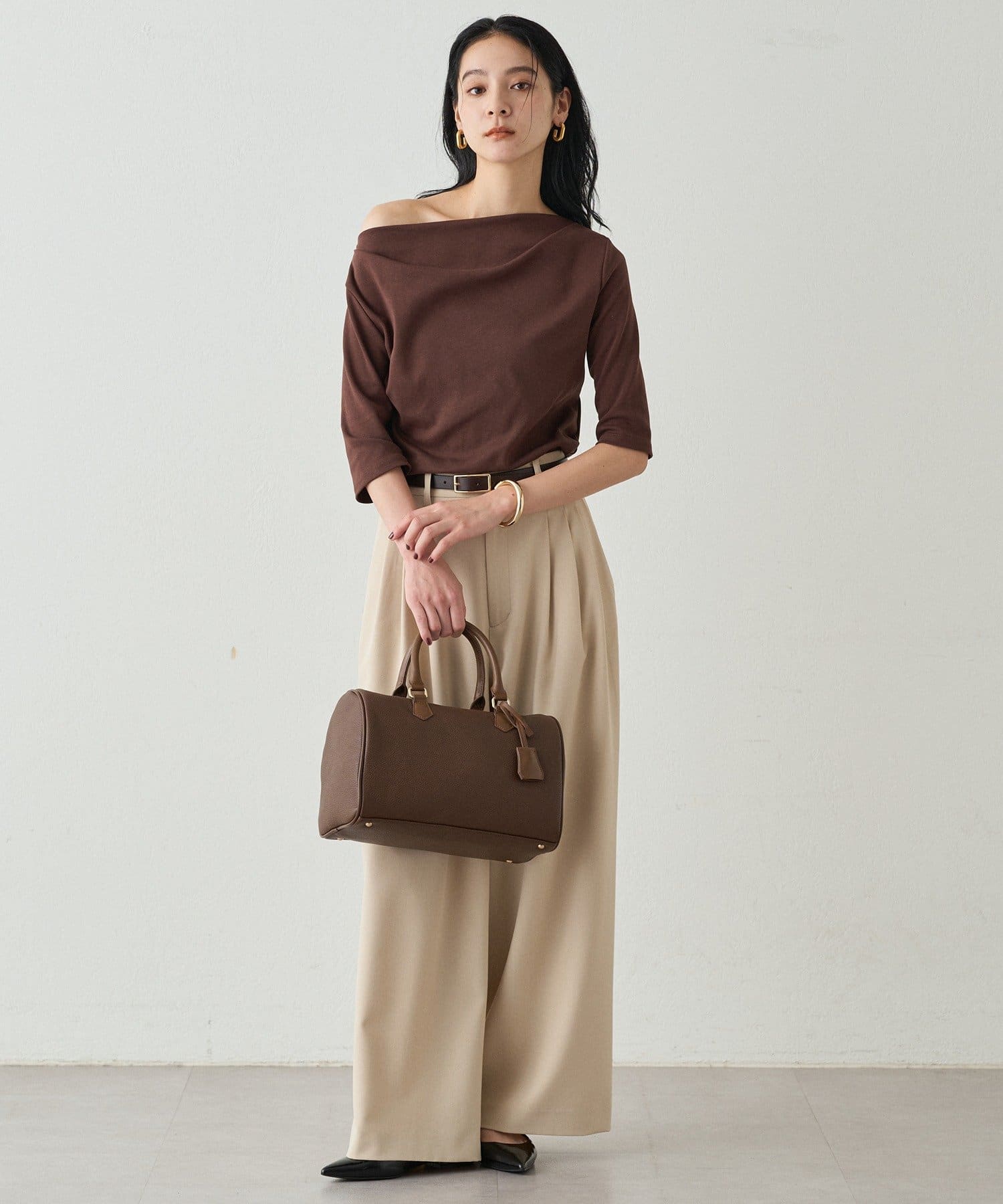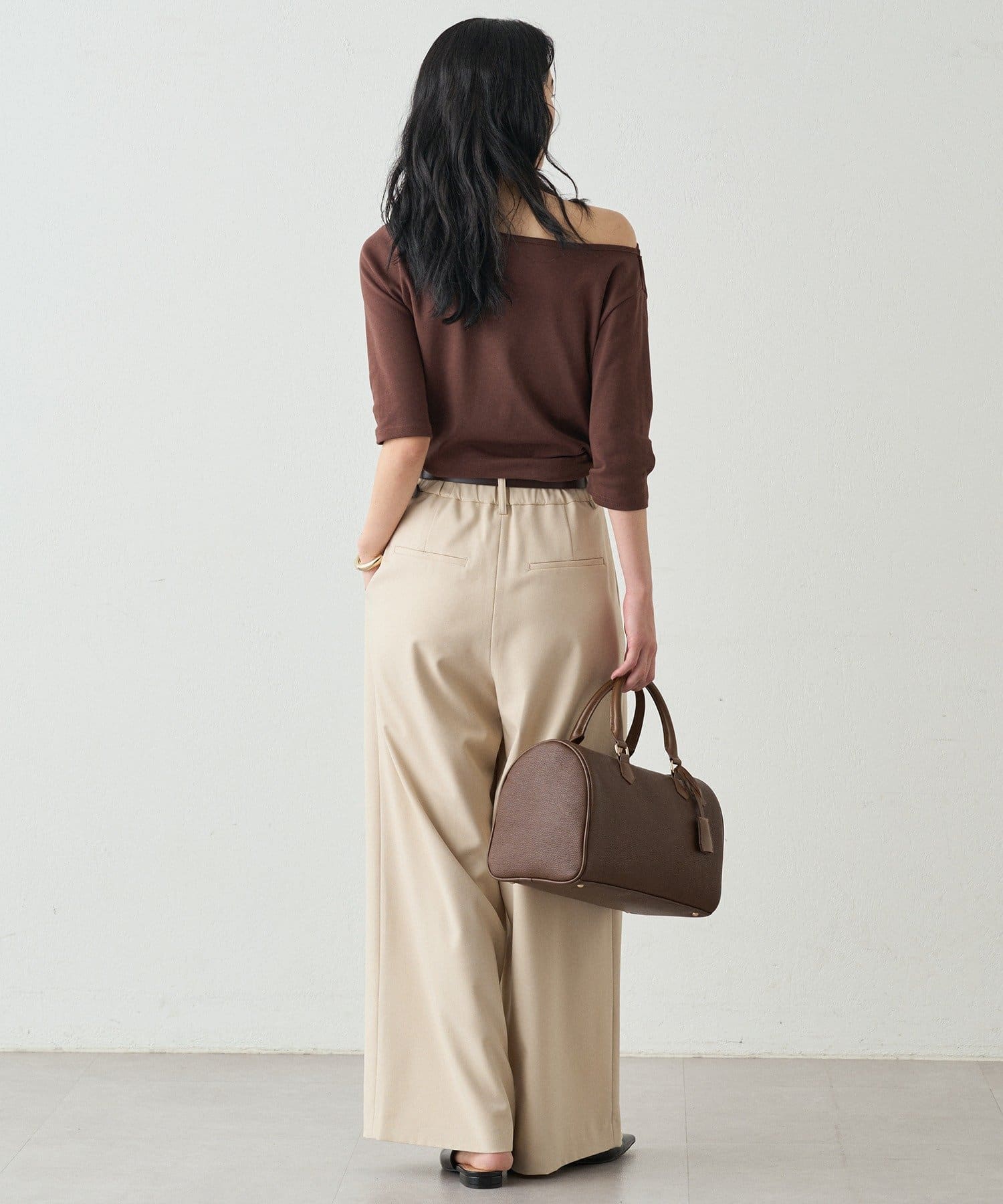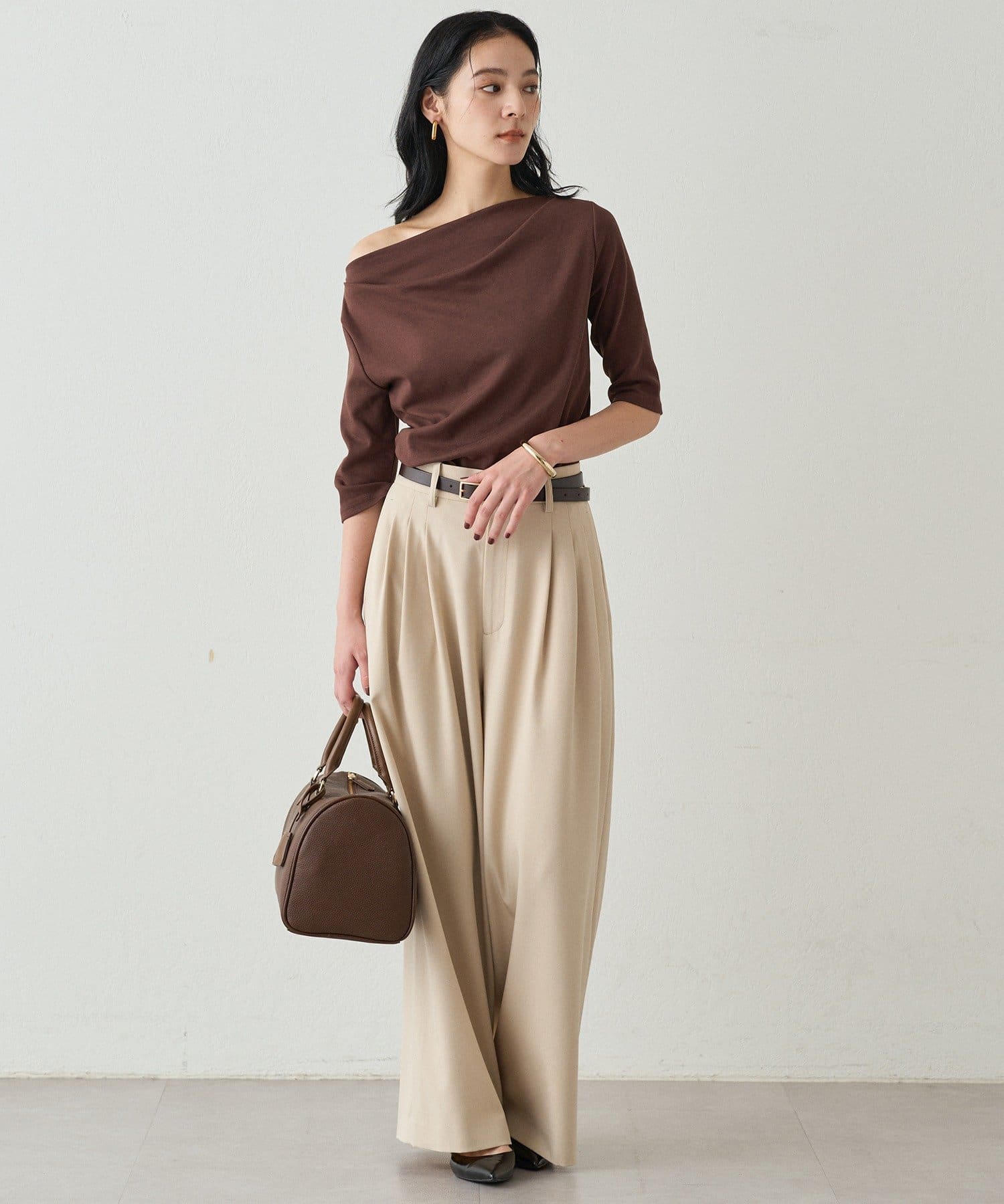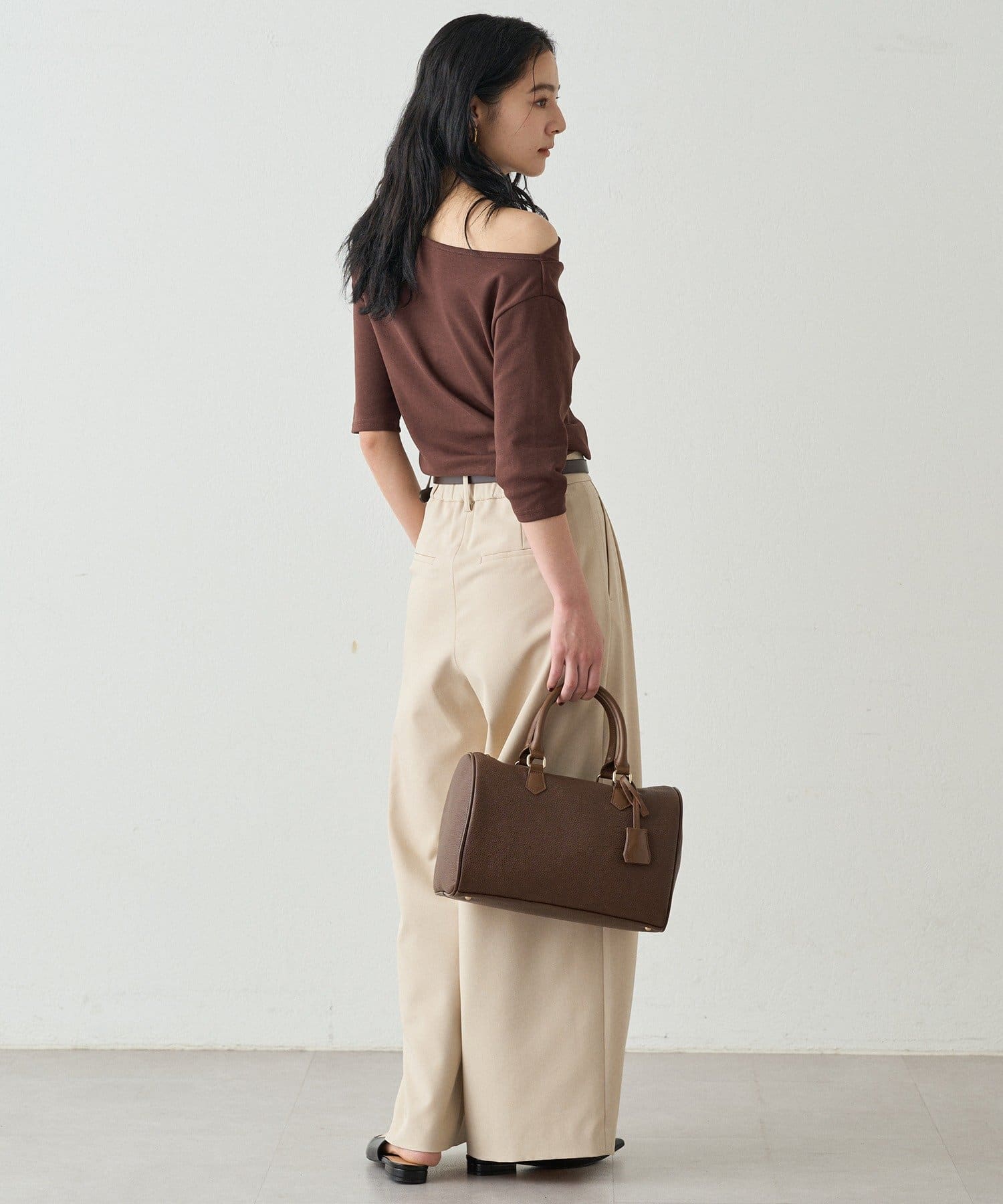 オフショルダーにも、片方の肩を見せてワンショルダーにも、ご着用できますので、ご気分で着方を変えて楽しんでいただけます。