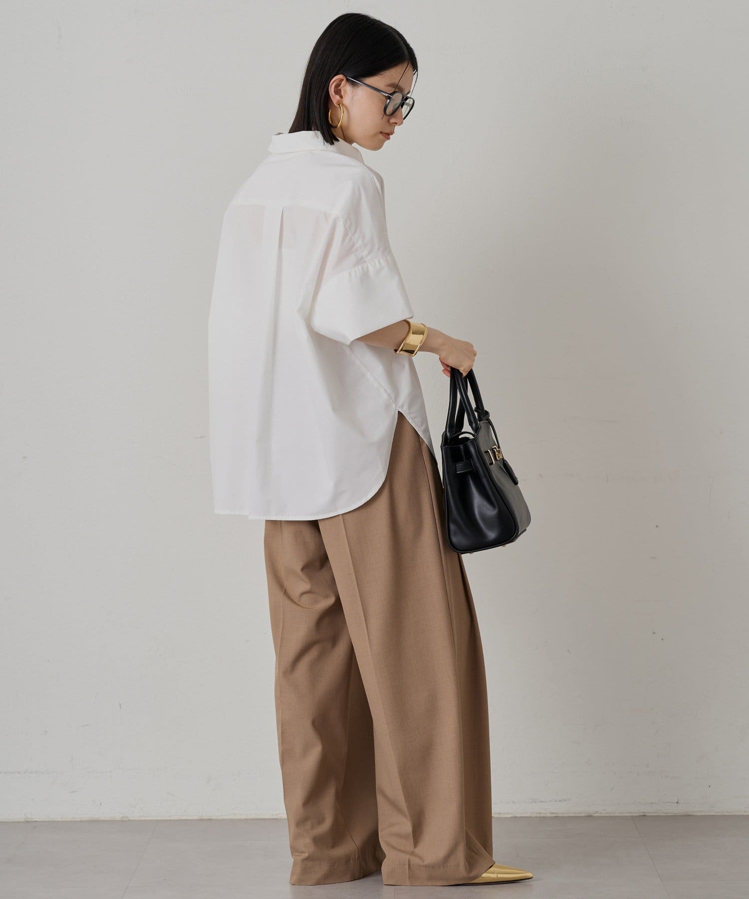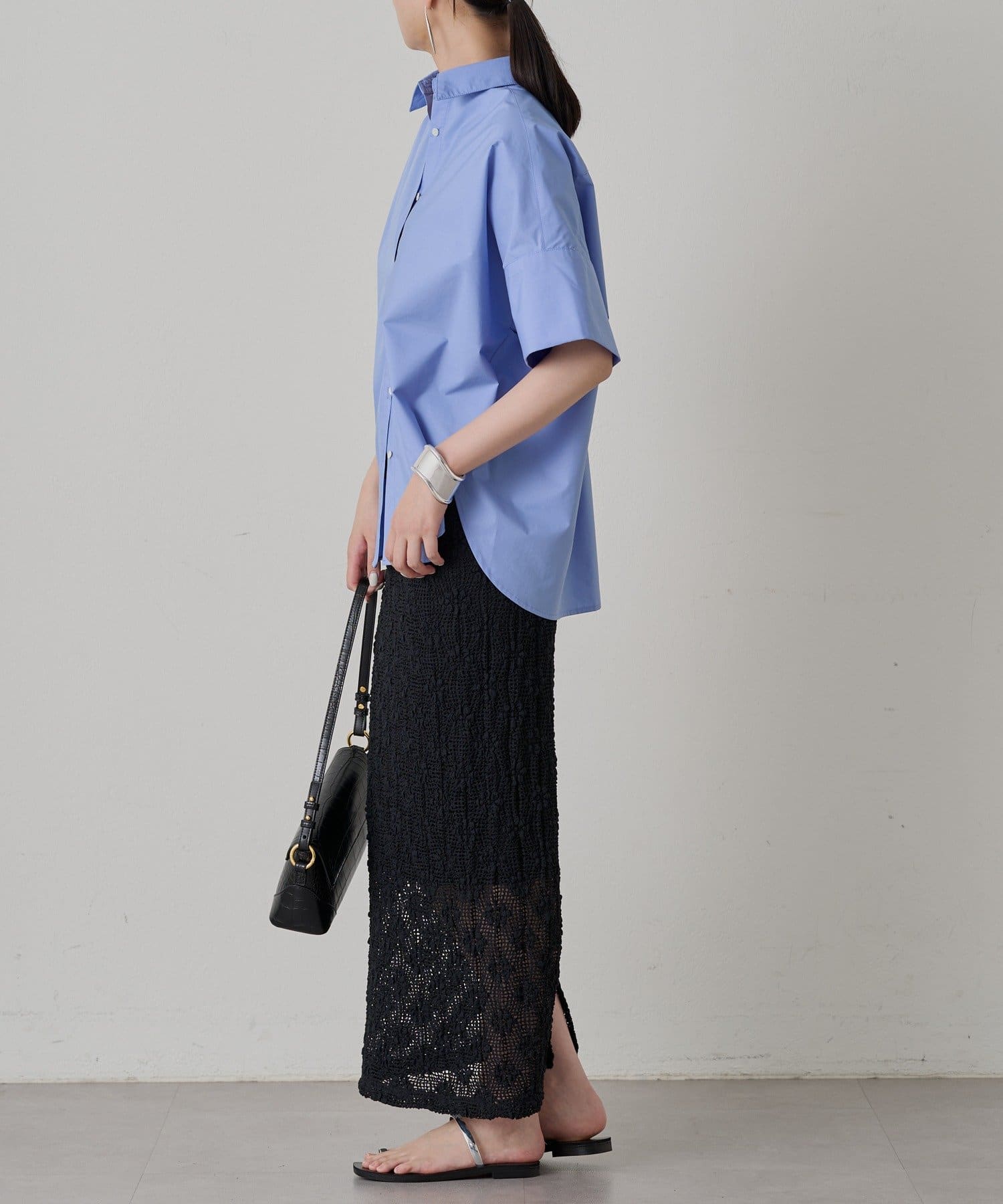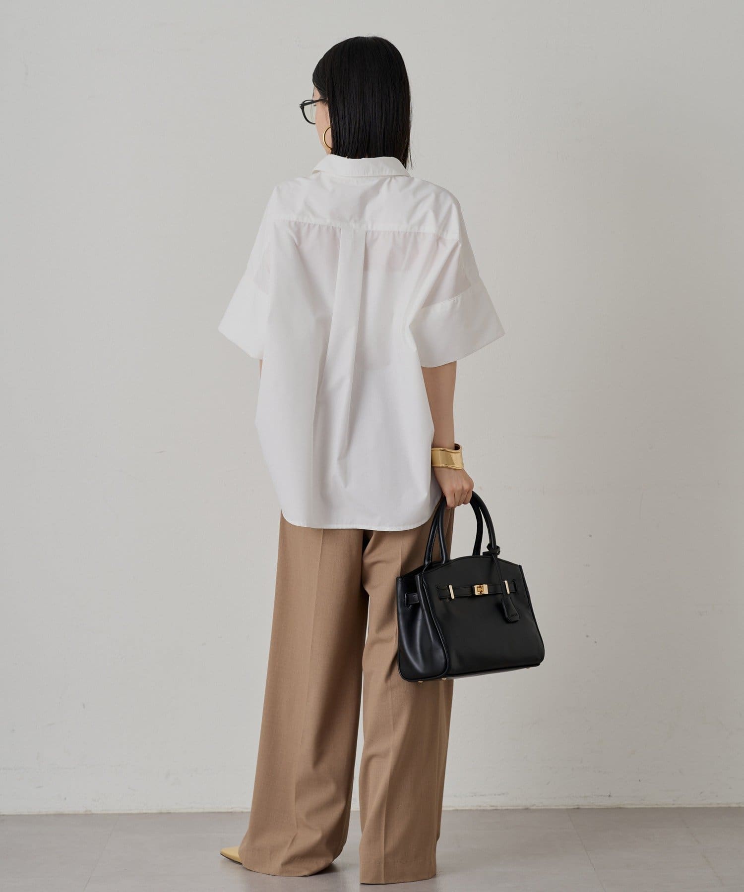 短めの袖丈と、少し広がった袖口が、さりげない個性をプラス。シンプルなシャツに遊び心を添えています。