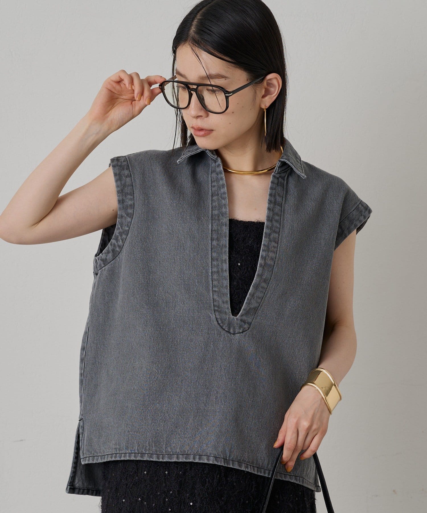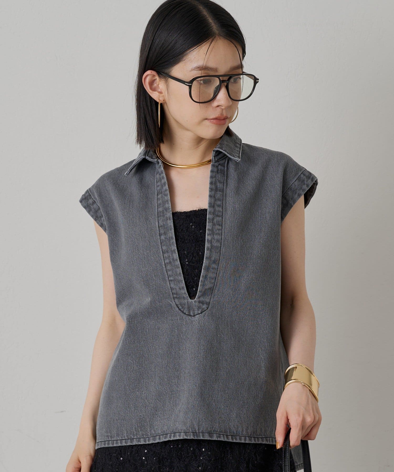 着るだけで旬顔、こなれ感たっぷりデニムブラウス