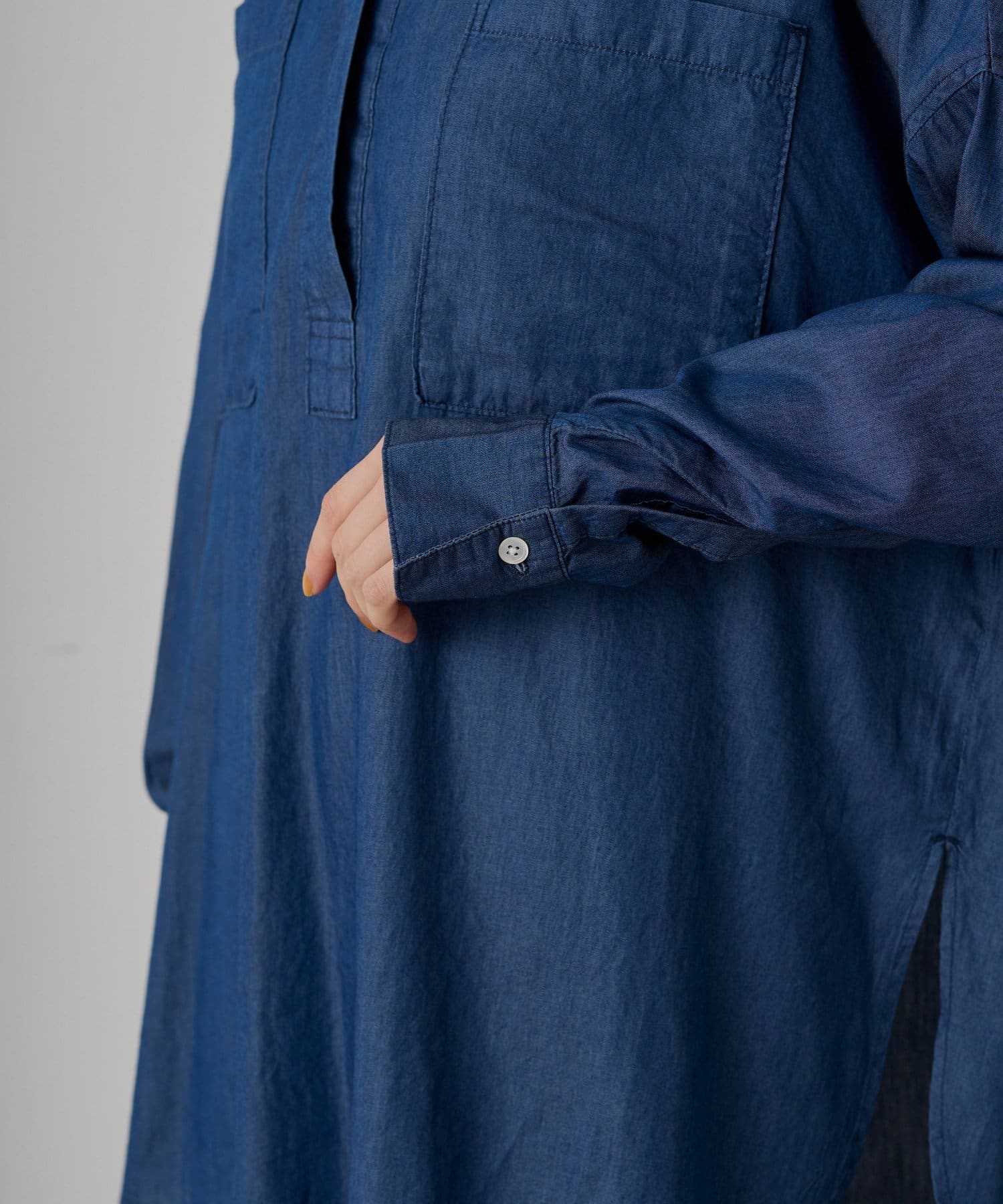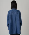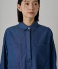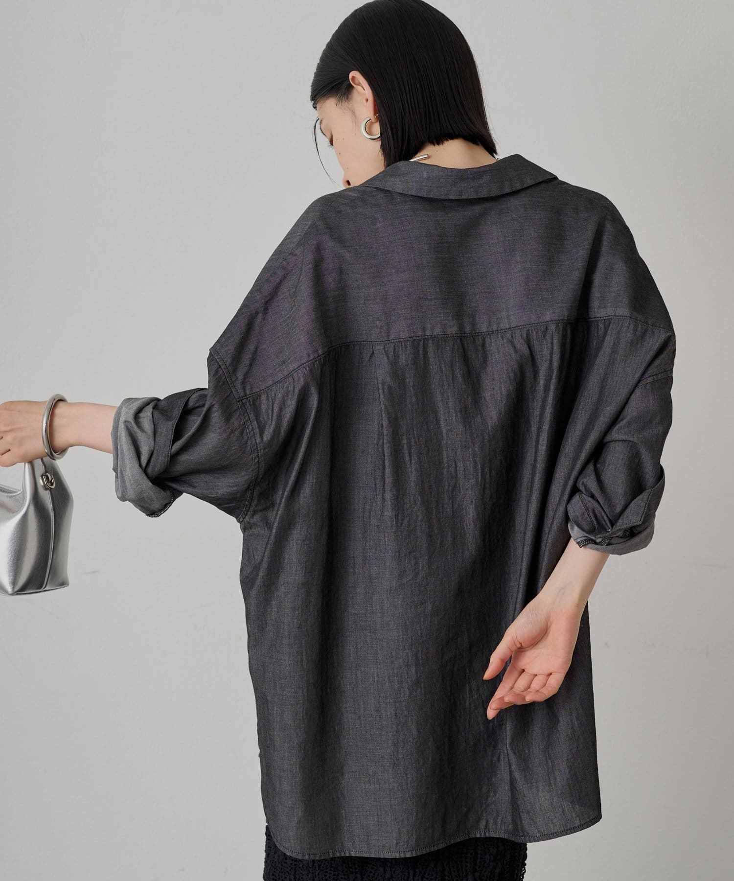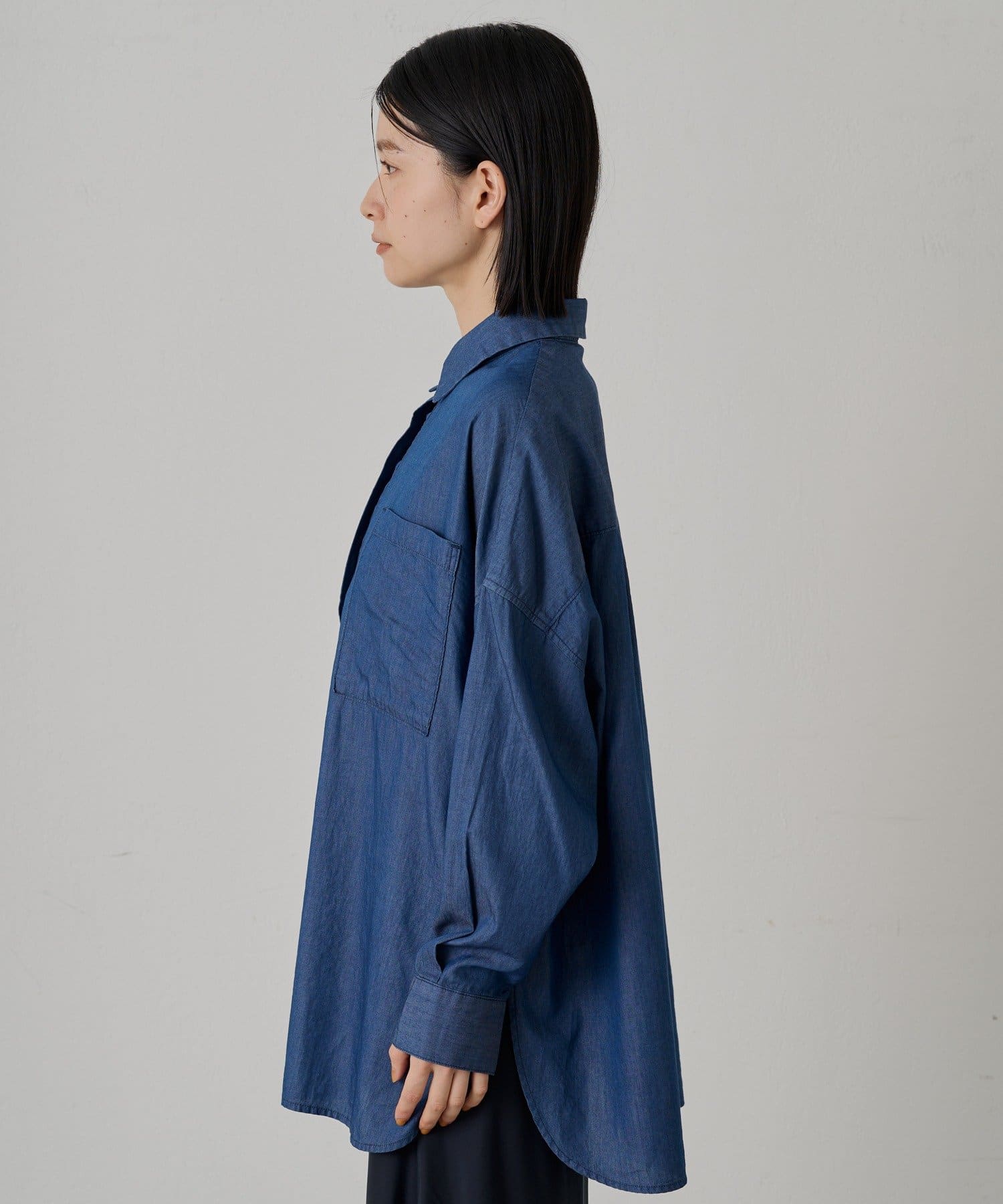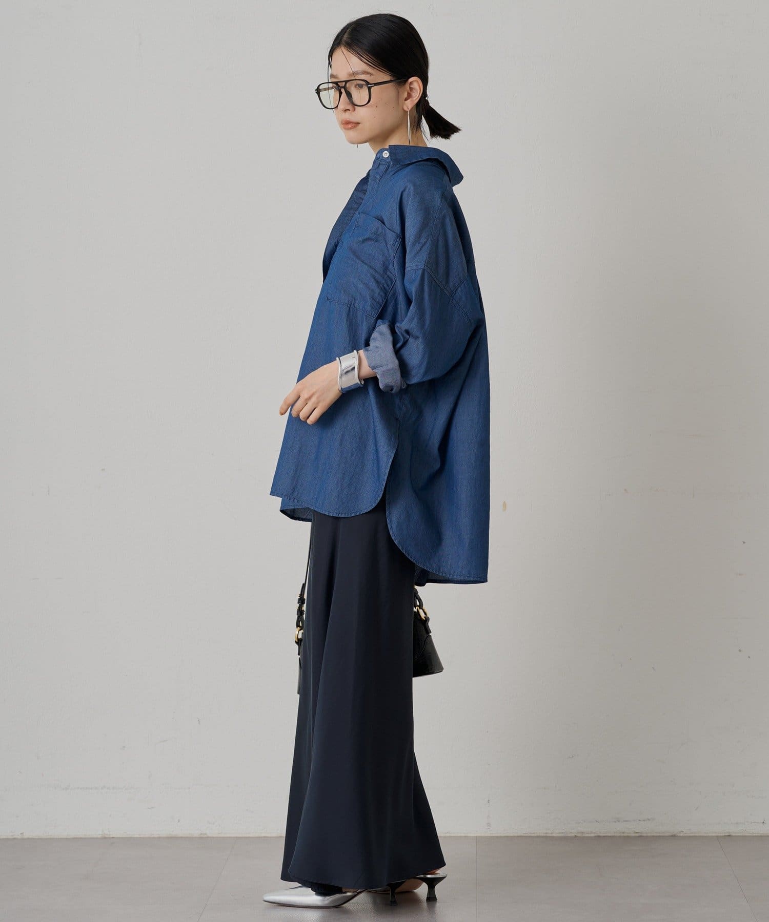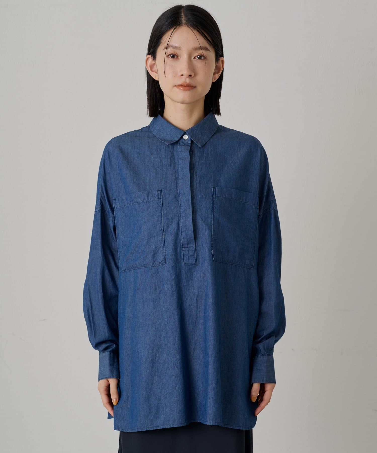 首元をすっきりと見せるカジュアルながらも女性らしいデニムシャツ
