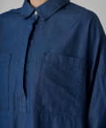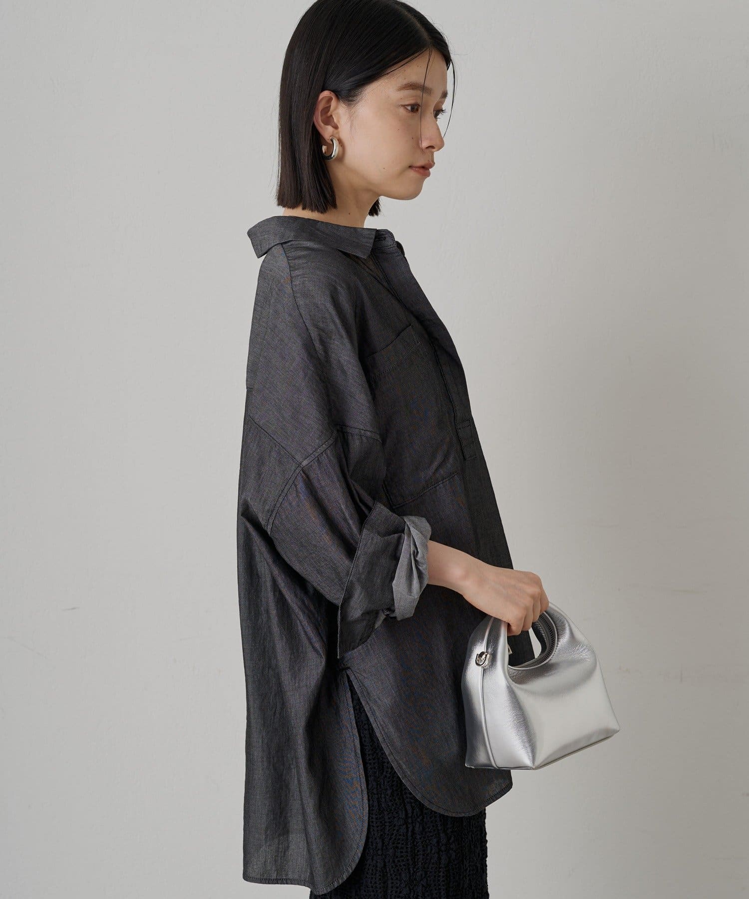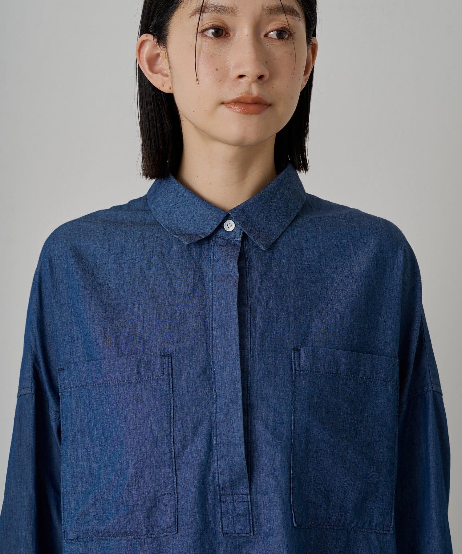 ゆったりとしたオーバーサイズシルエットで、リラックス感のある着心地です。体型カバー効果も期待できます。見た目よりも軽く、さらりとした肌触りが特徴です。暑い季節でも快適に着用いただけます。袖口にはボタンが付いており、袖丈を調整できます。胸元のフラップポケットがアクセントになっています。