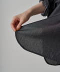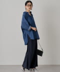 透け感のあるボトムスを合わせると抜け感が出ておすすです。ワンピースにレイヤードしていただいたり、ベルトでウエストをマークしてメリハリのあるシルエットにしていただくと女性らしい印象になります。スラックスと合わせて、きれいめなスタイリングに仕上げていただくことで、オフィスシーンでも活躍できる一着です。