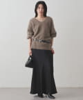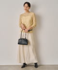 同系色のブラウスと合わせれば、セットアップ風のコーディネートになるのでおすすめです。