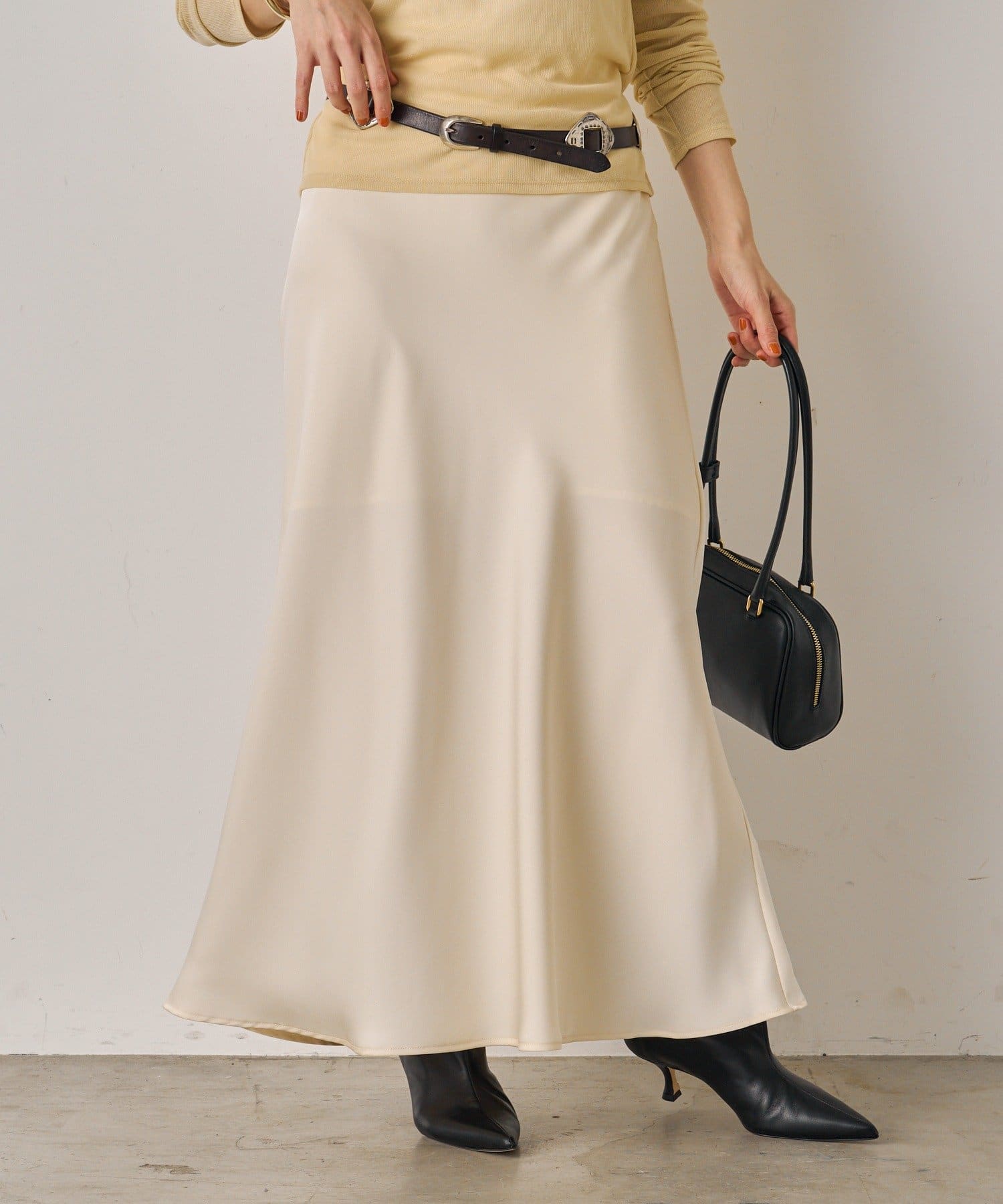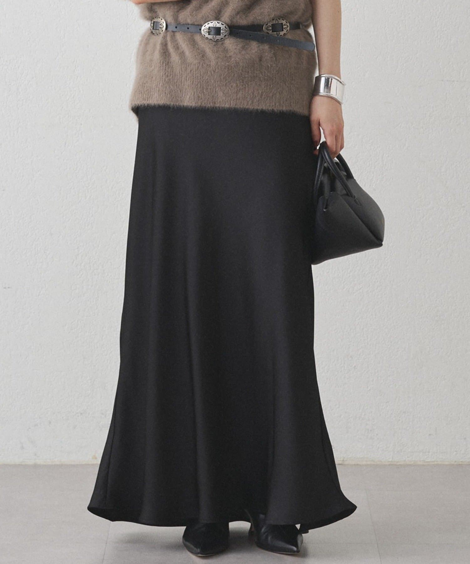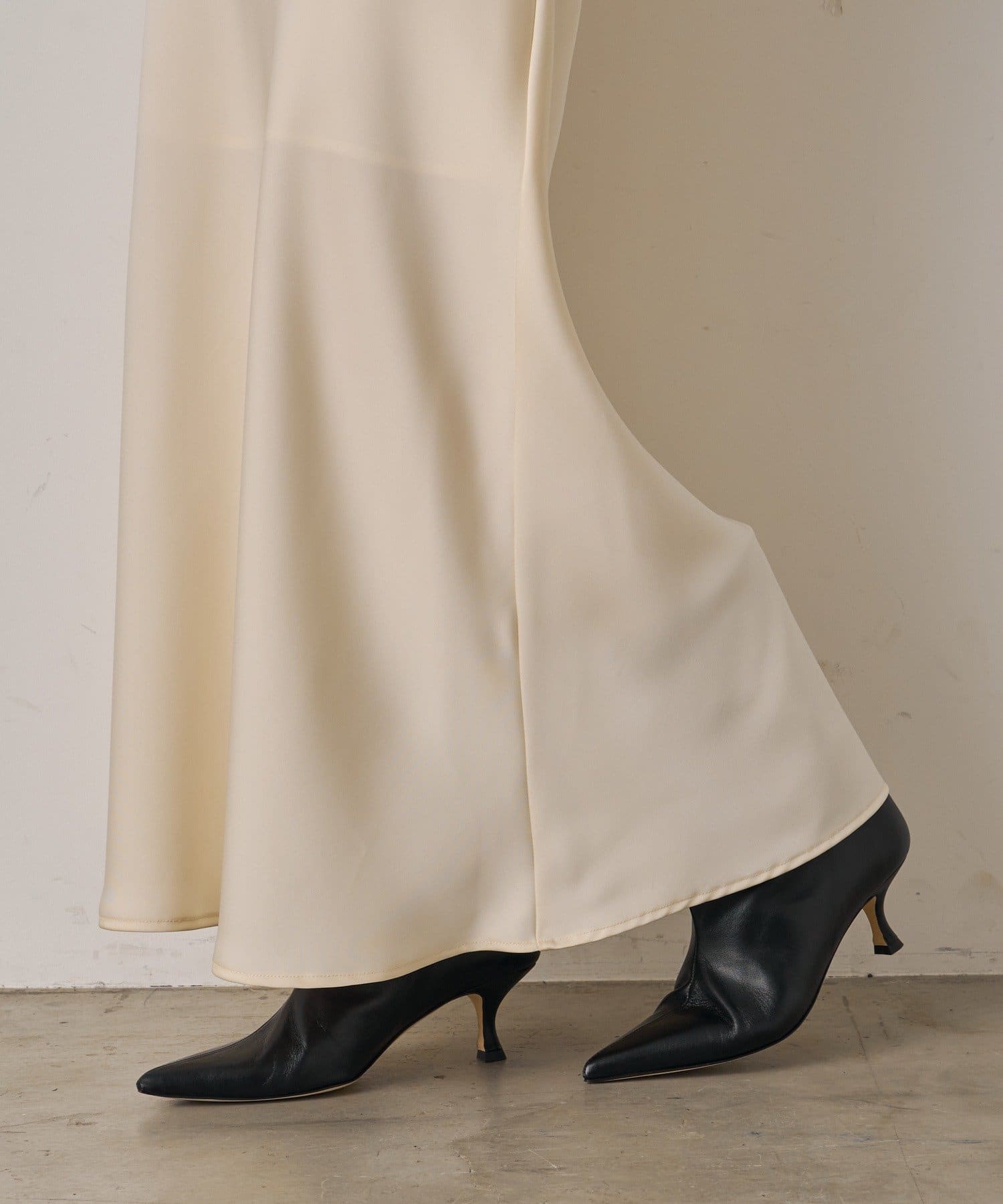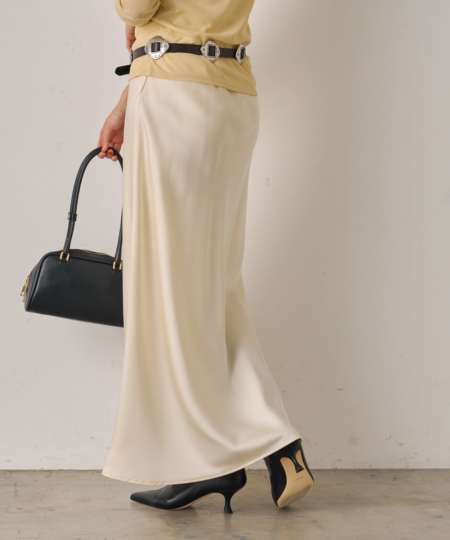 柔らかな光沢と落ち感のある生地が、歩くたびに上品な印象を演出してくれる、大人のための一枚です。