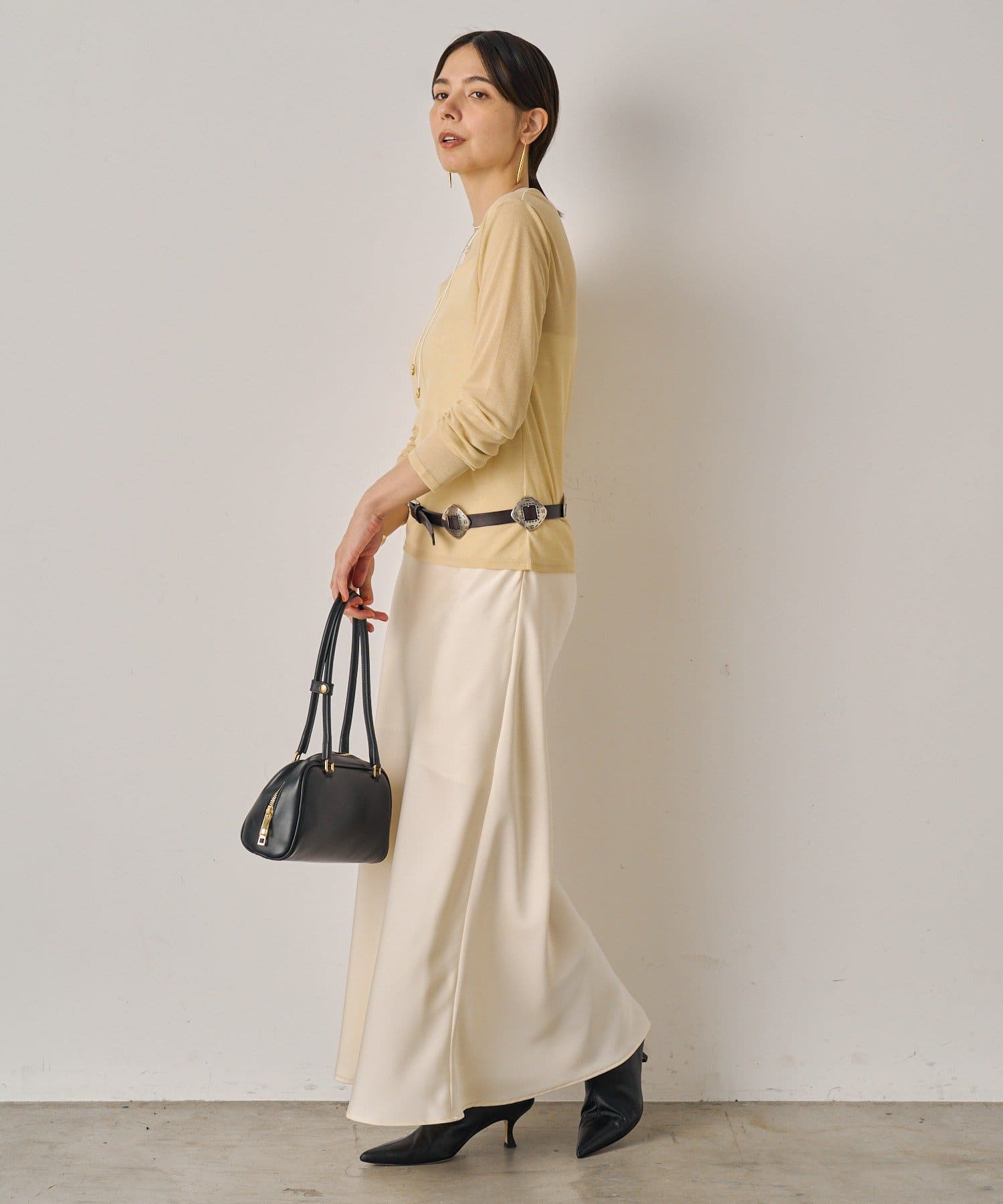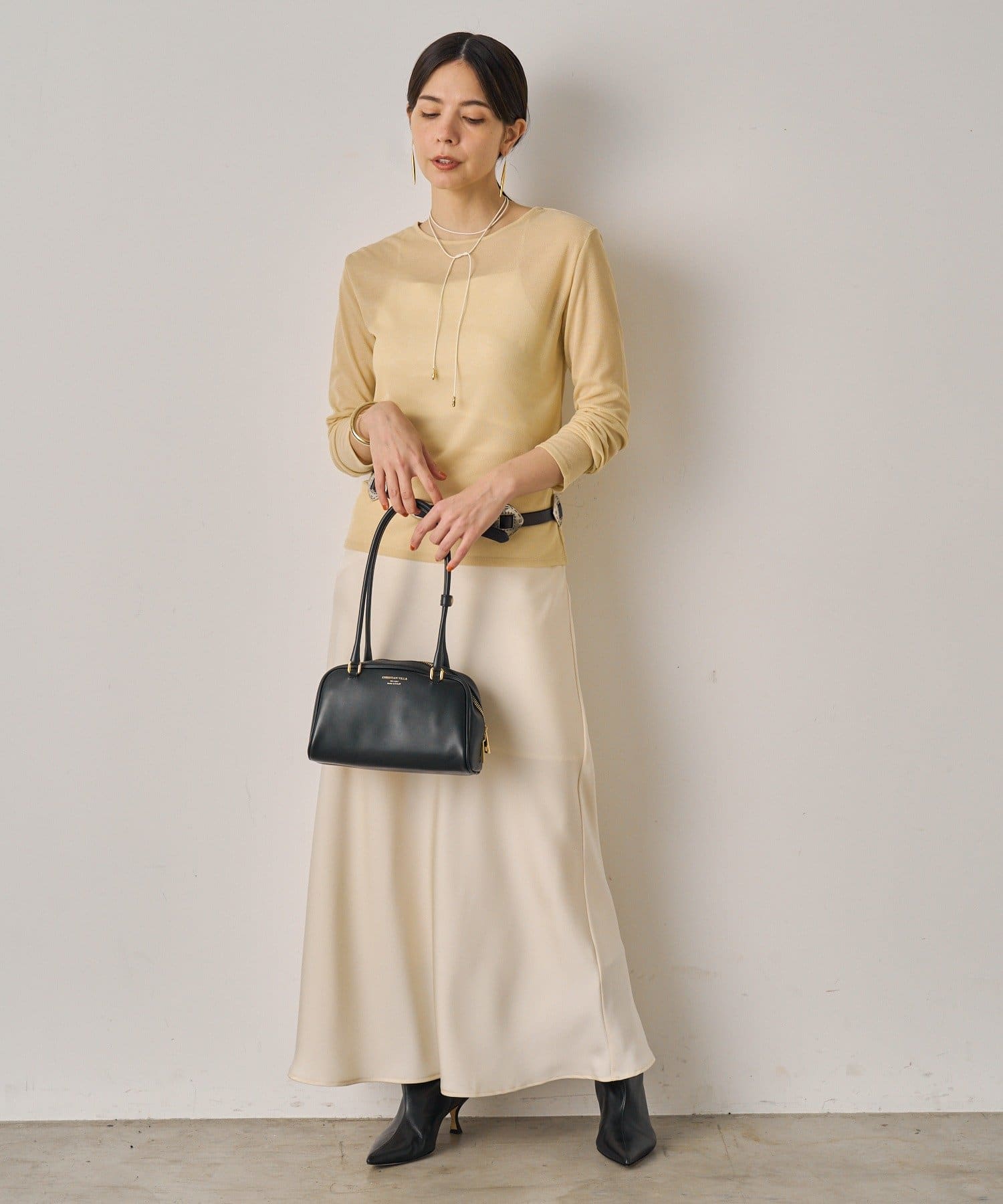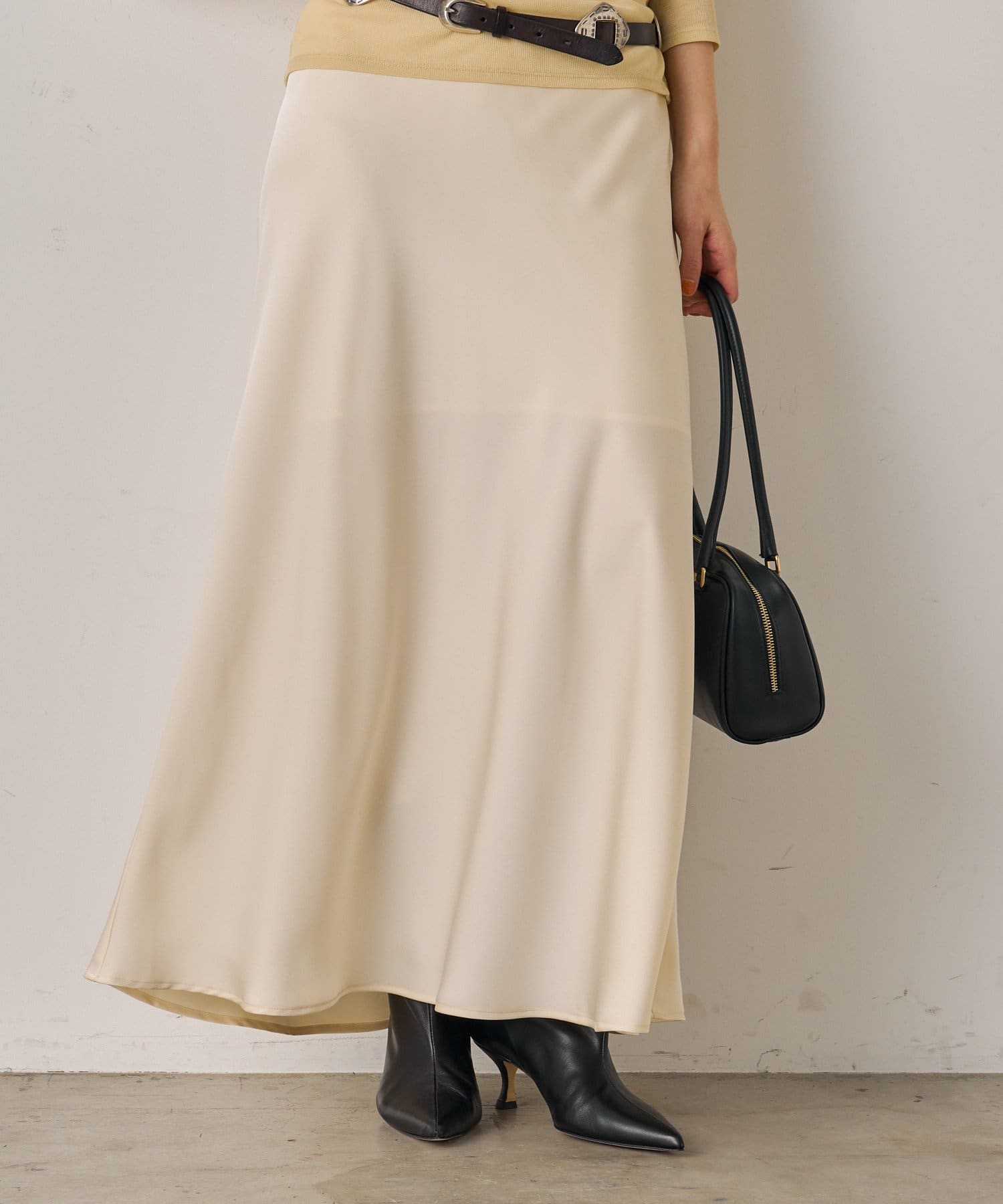 柔らかな光沢と落ち感のある生地が、歩くたびに上品な印象を演出してくれる、大人のための一枚です。