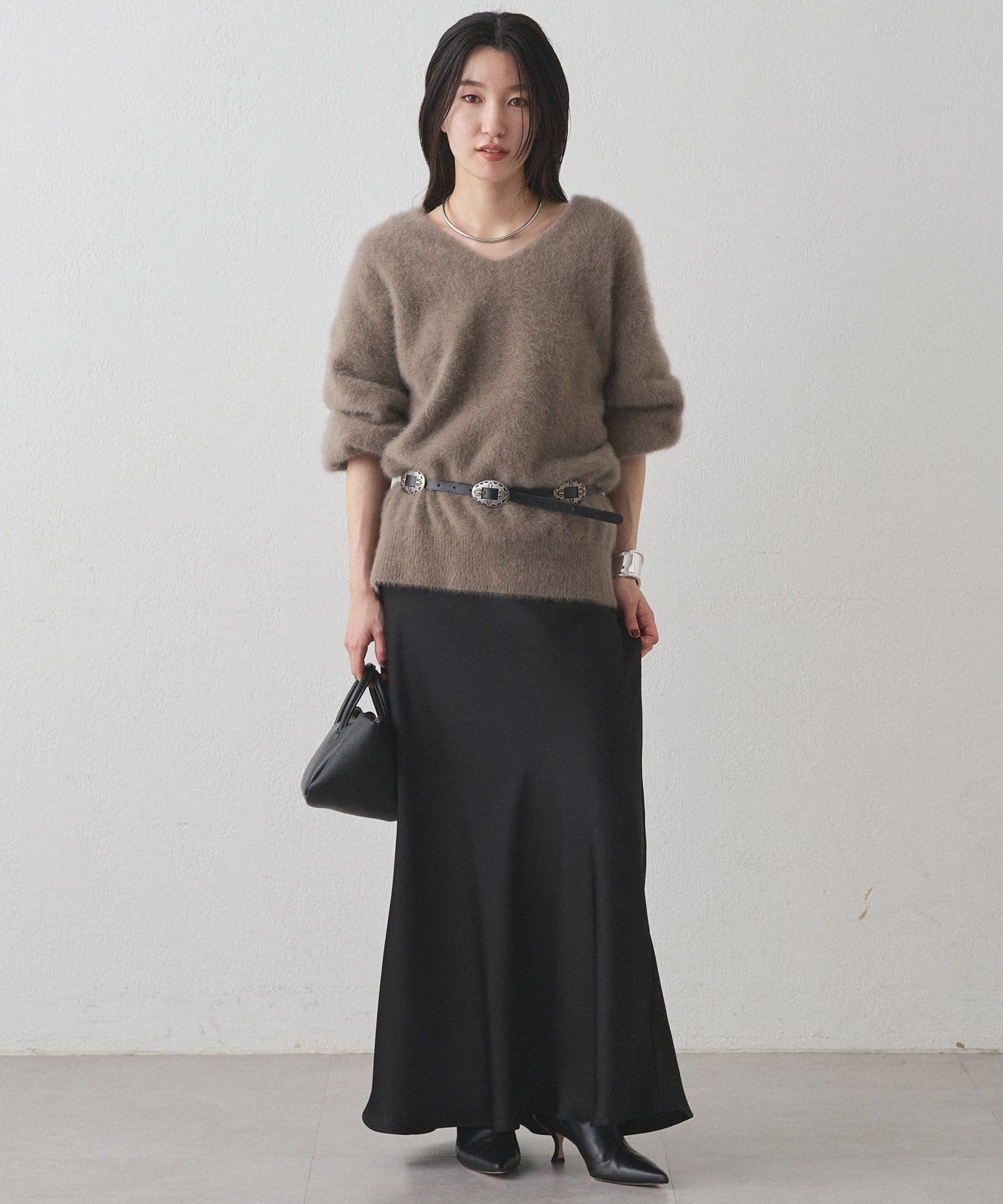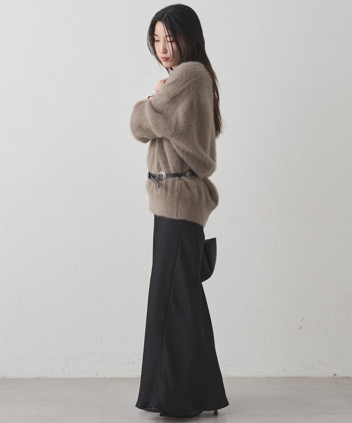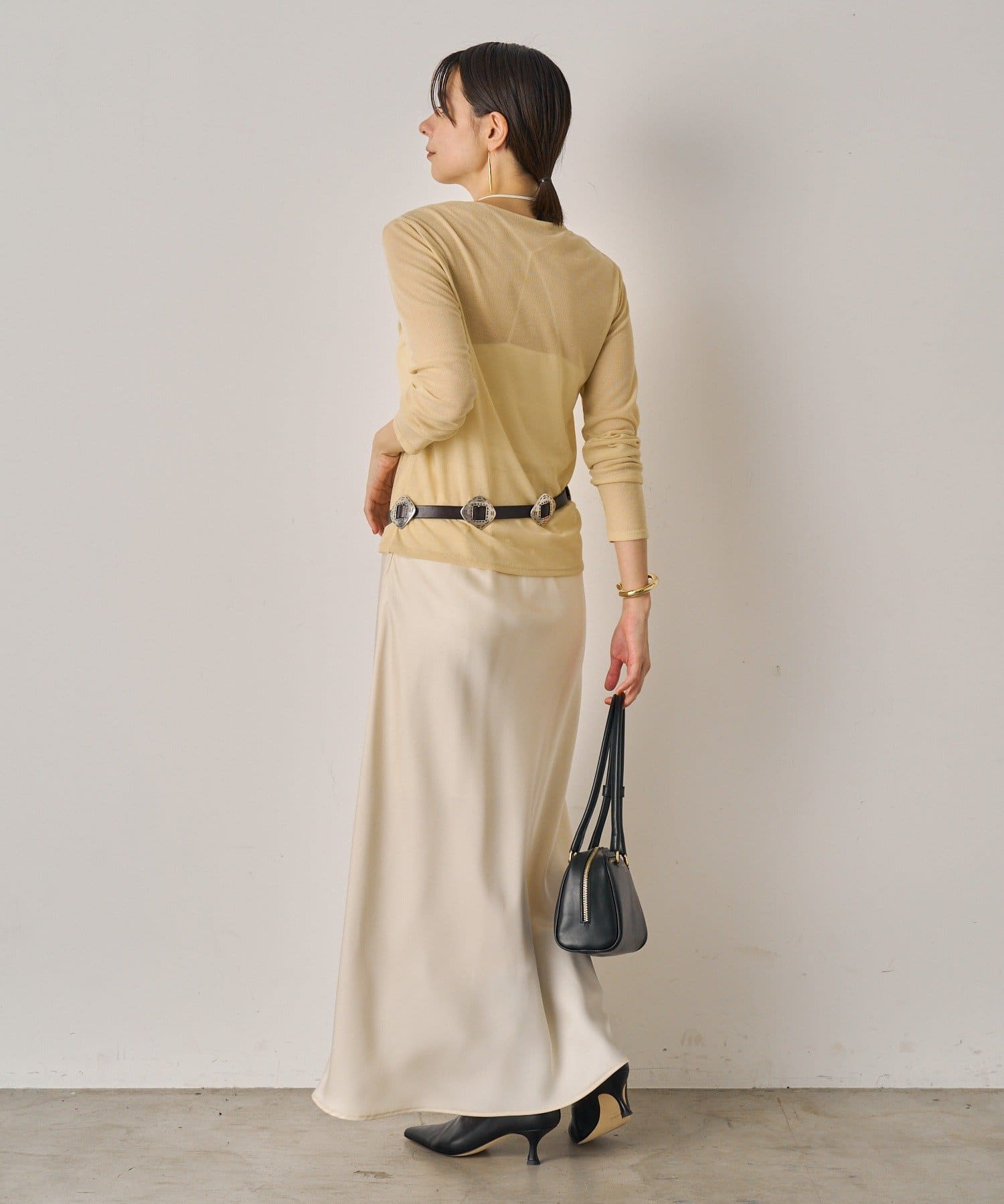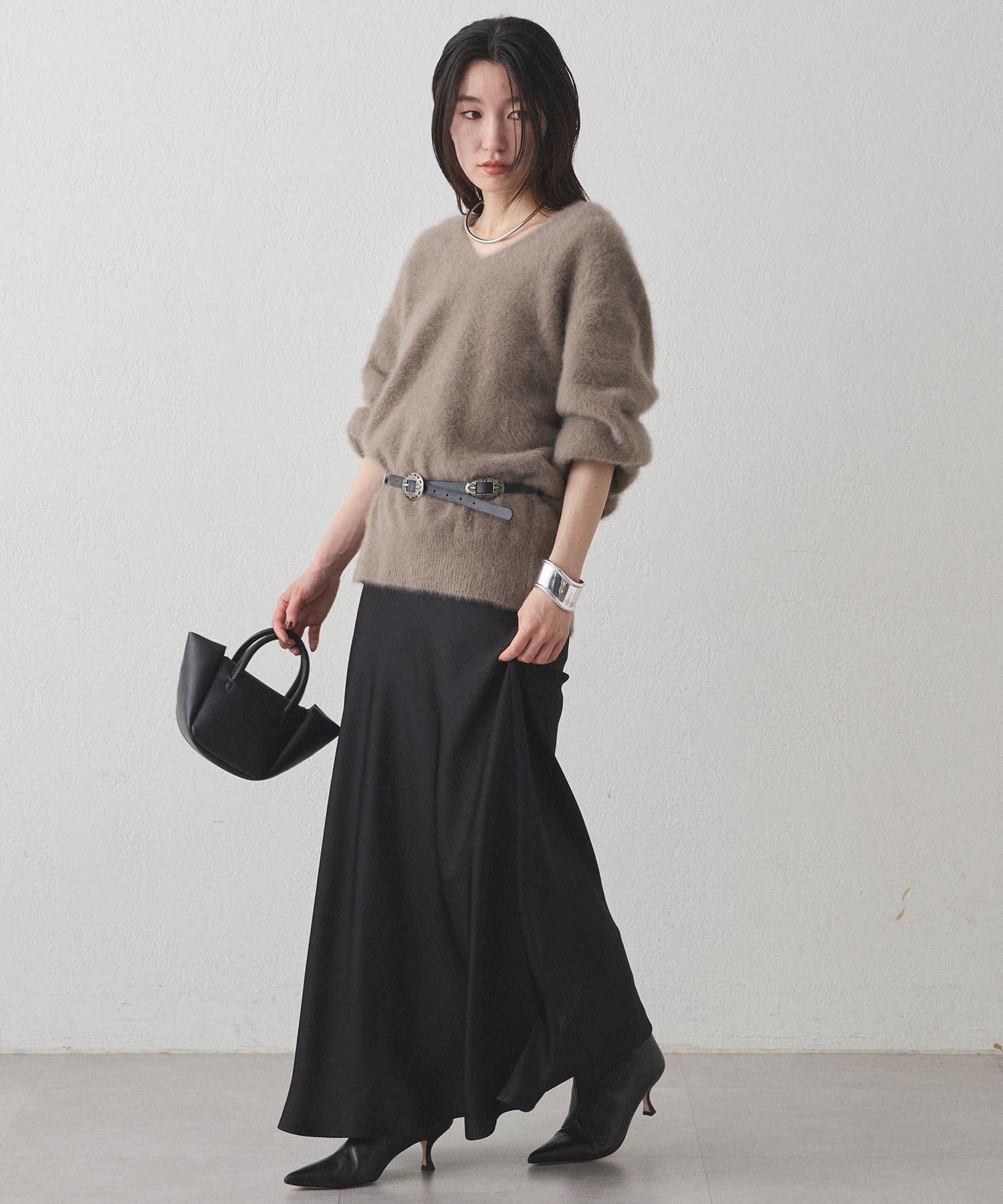 柔らかな光沢と落ち感のある生地が、歩くたびに上品な印象を演出してくれる、大人のための一枚です。