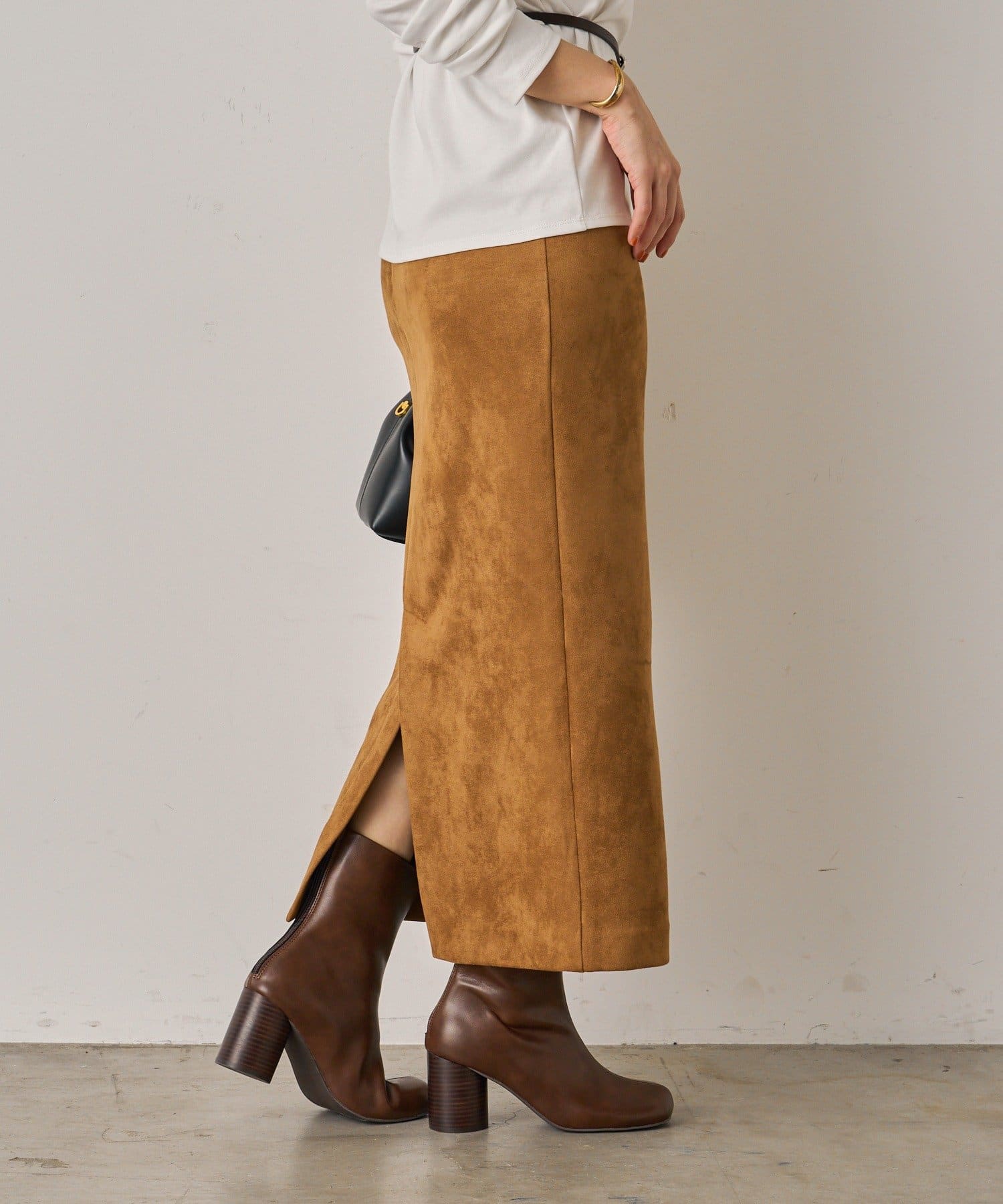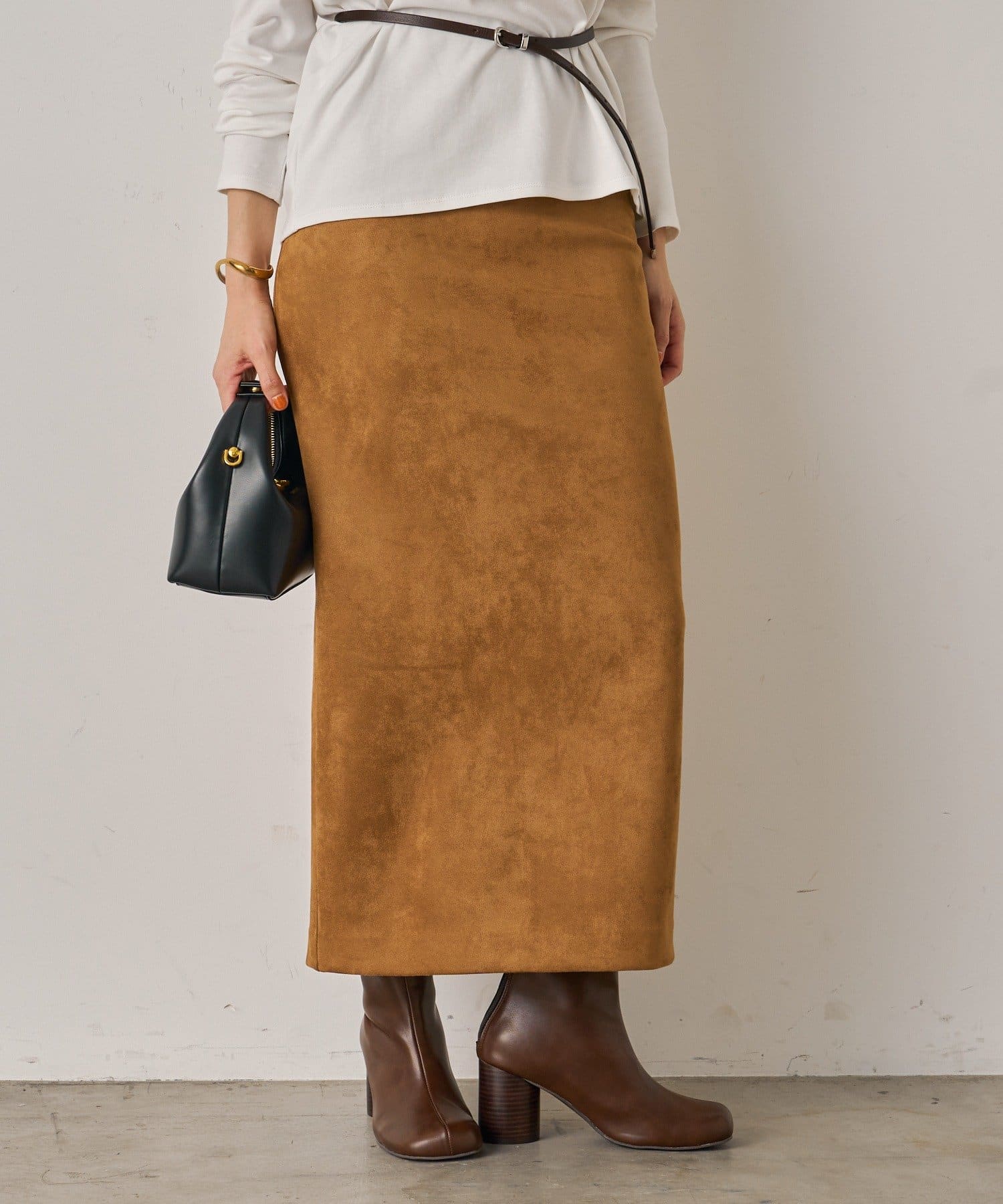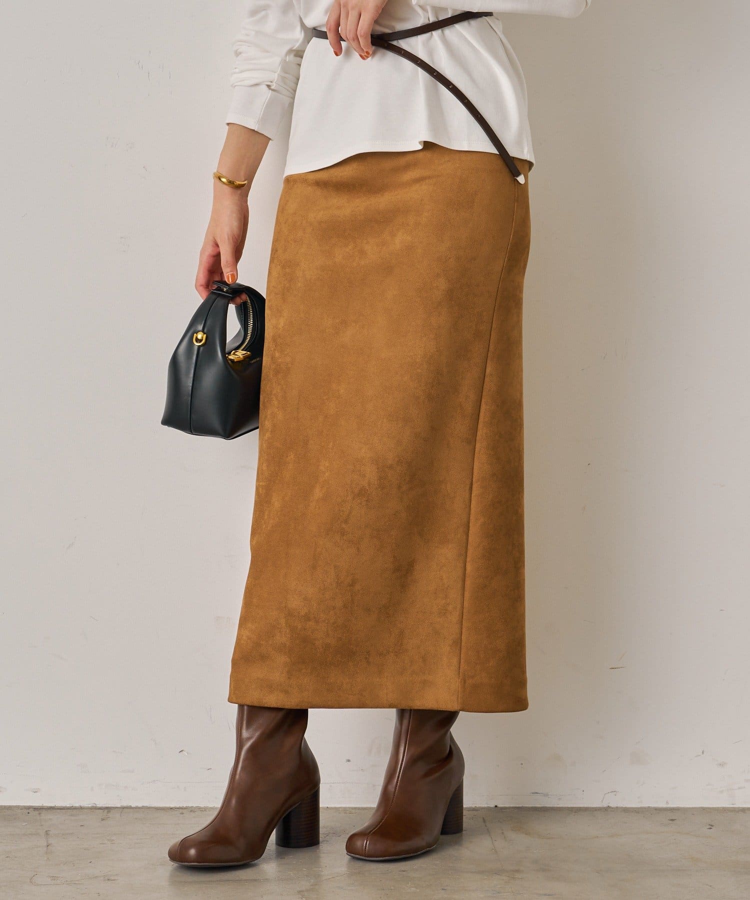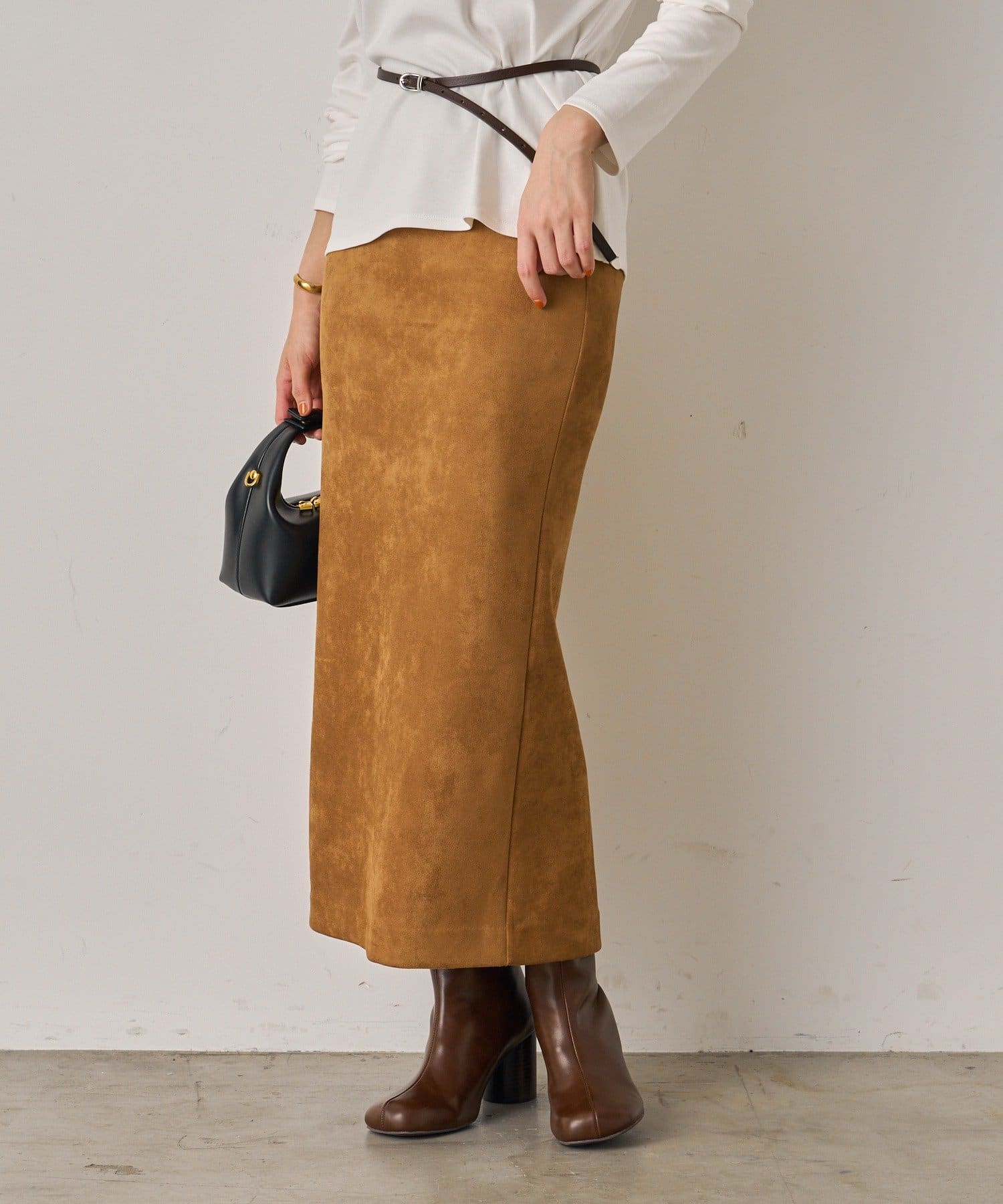 柔らかな風合いが魅力のスウェードスカート