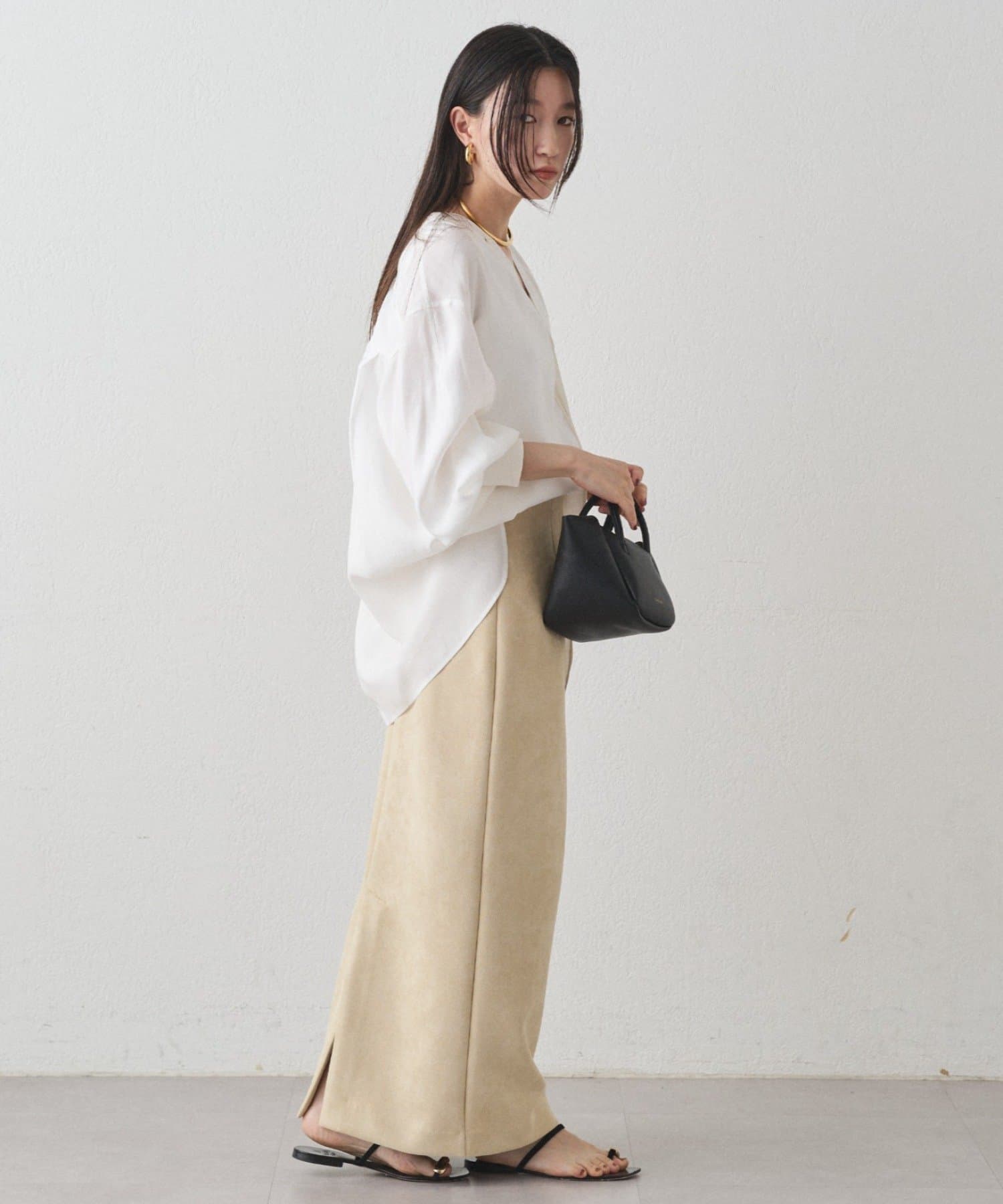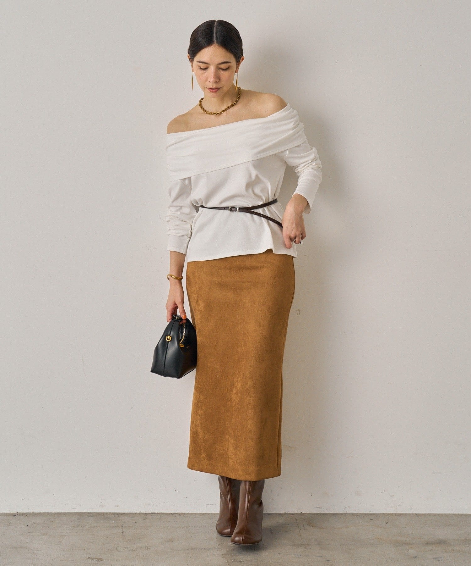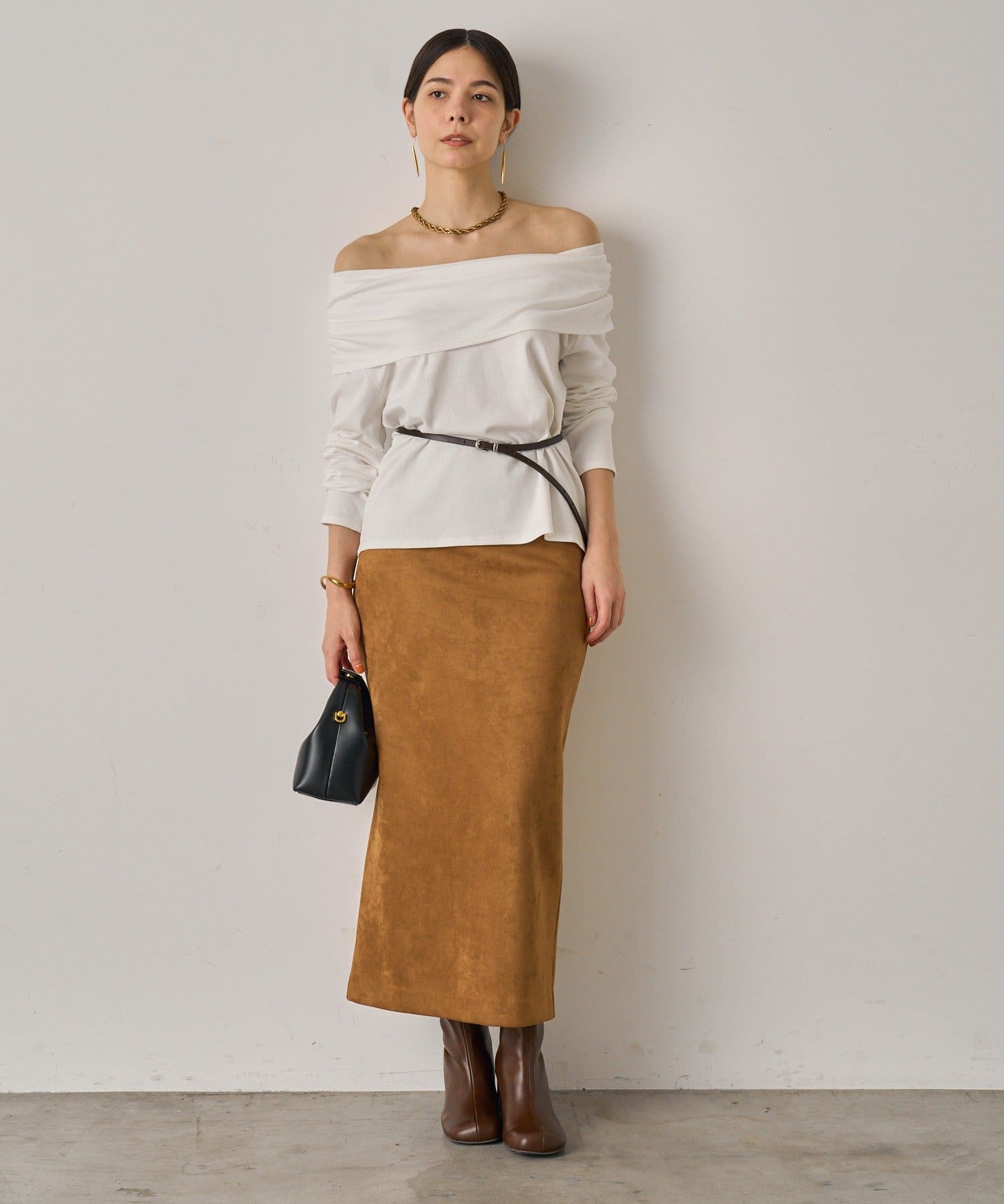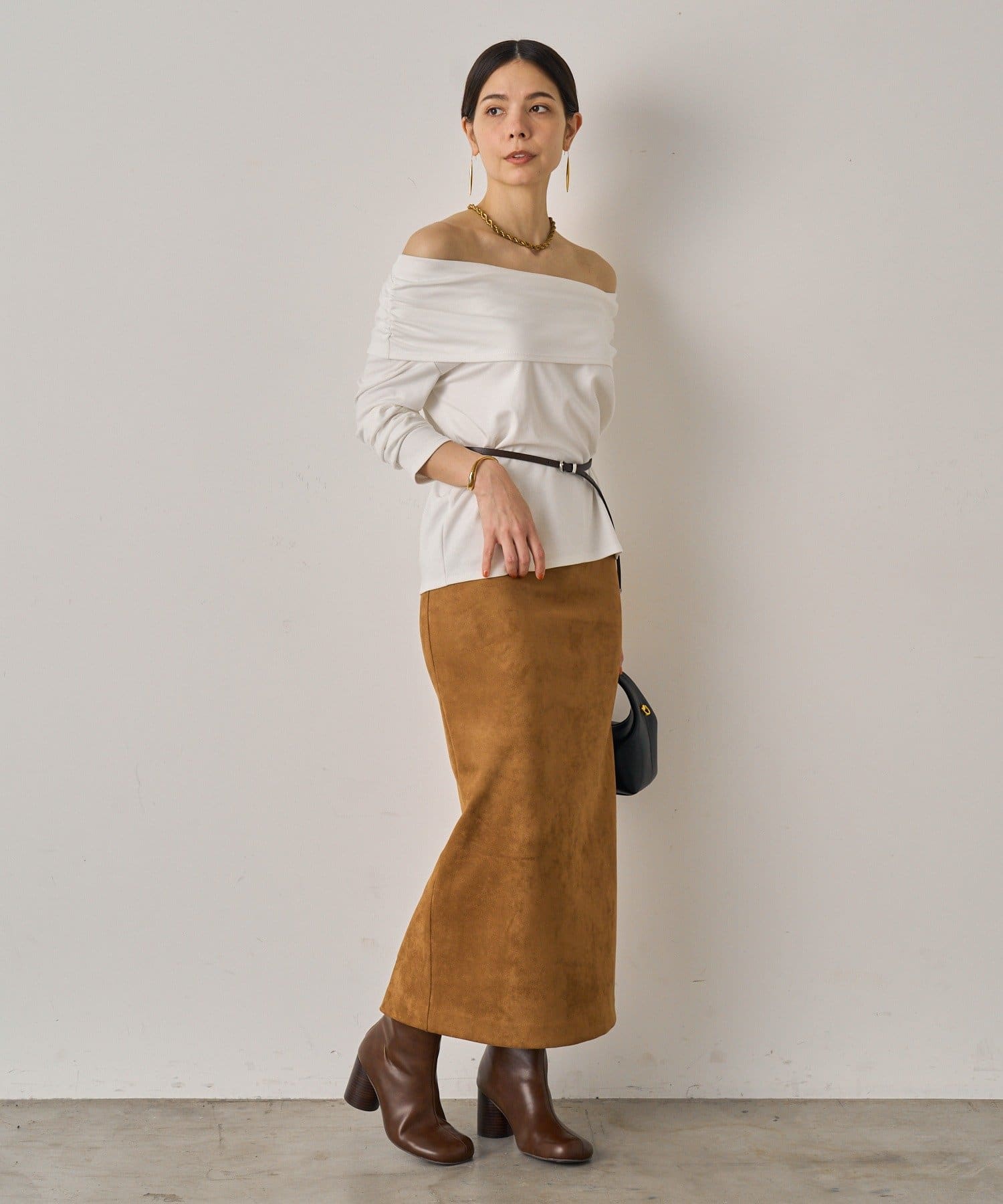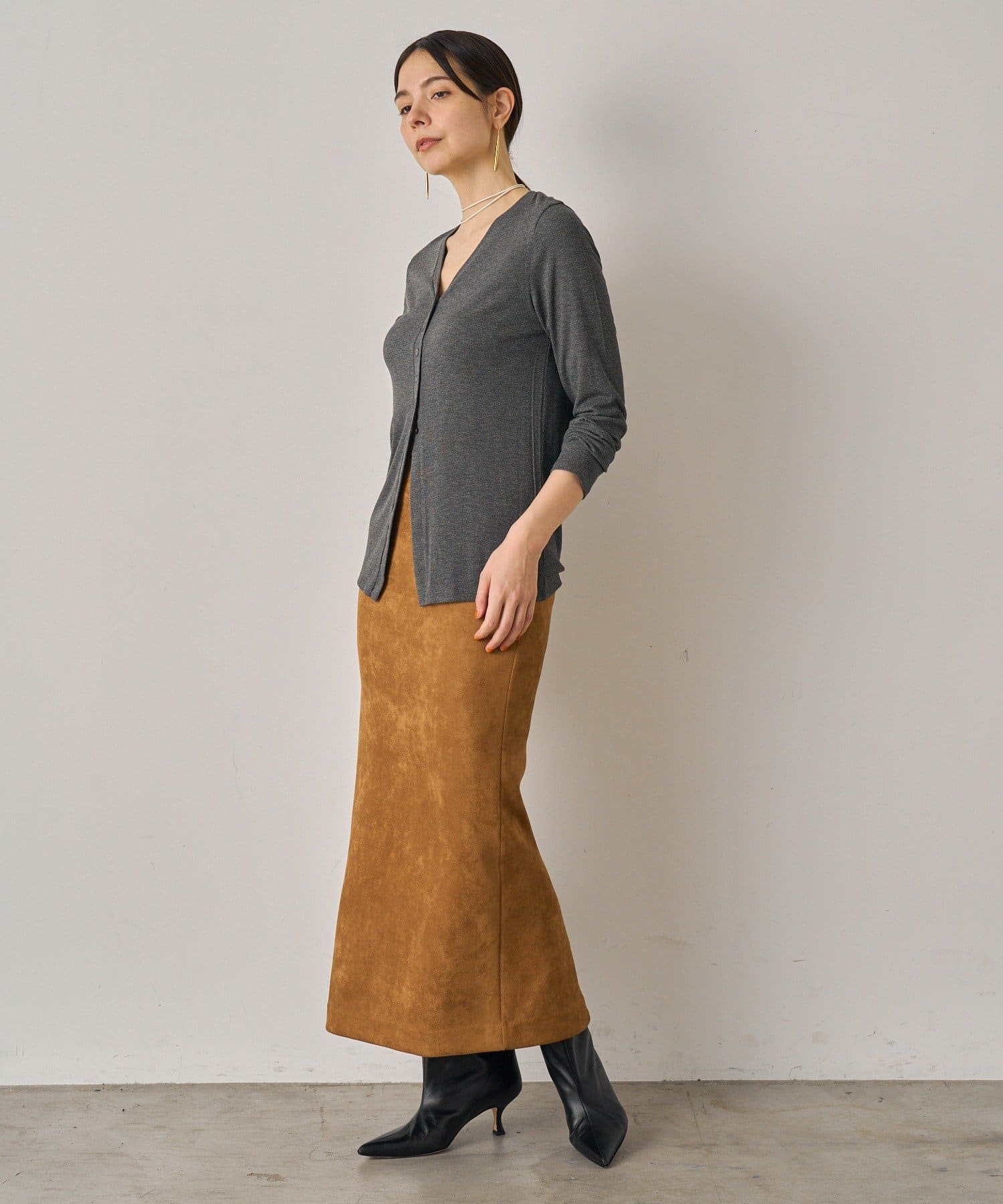 柔らかな風合いが魅力のスウェードスカート
