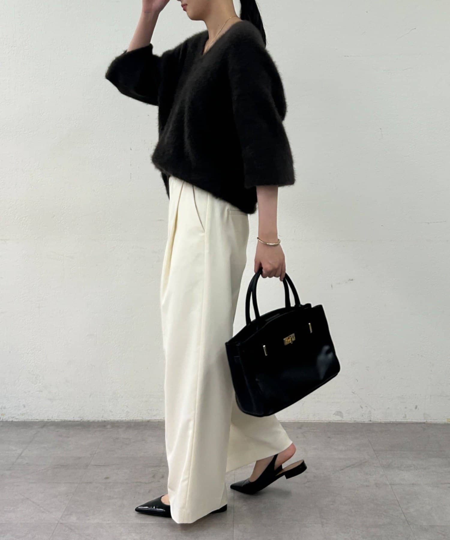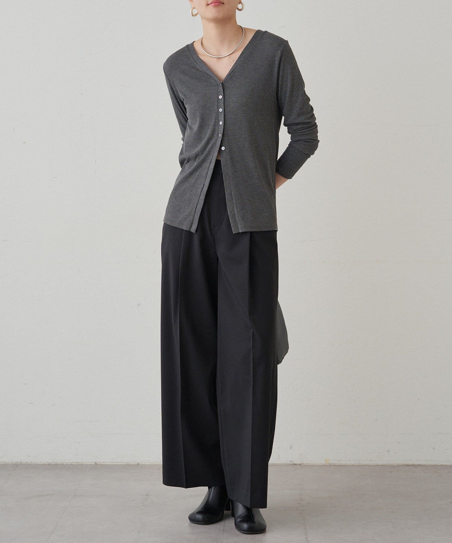 合わせるアイテムによって表情を変える、着回し力の高さが魅力です。