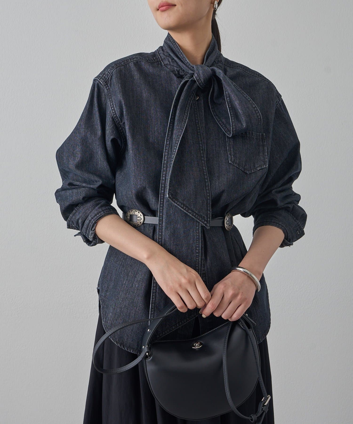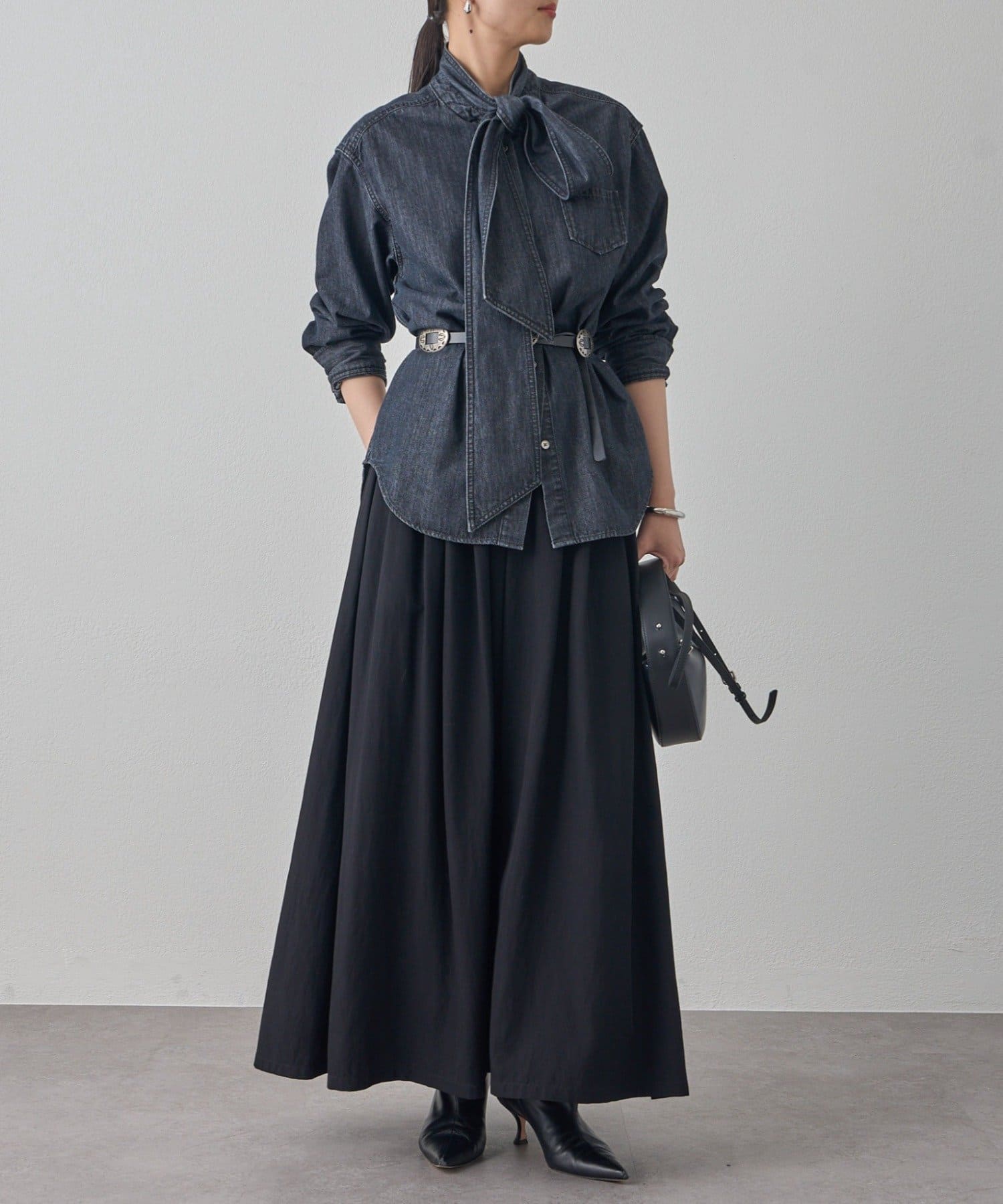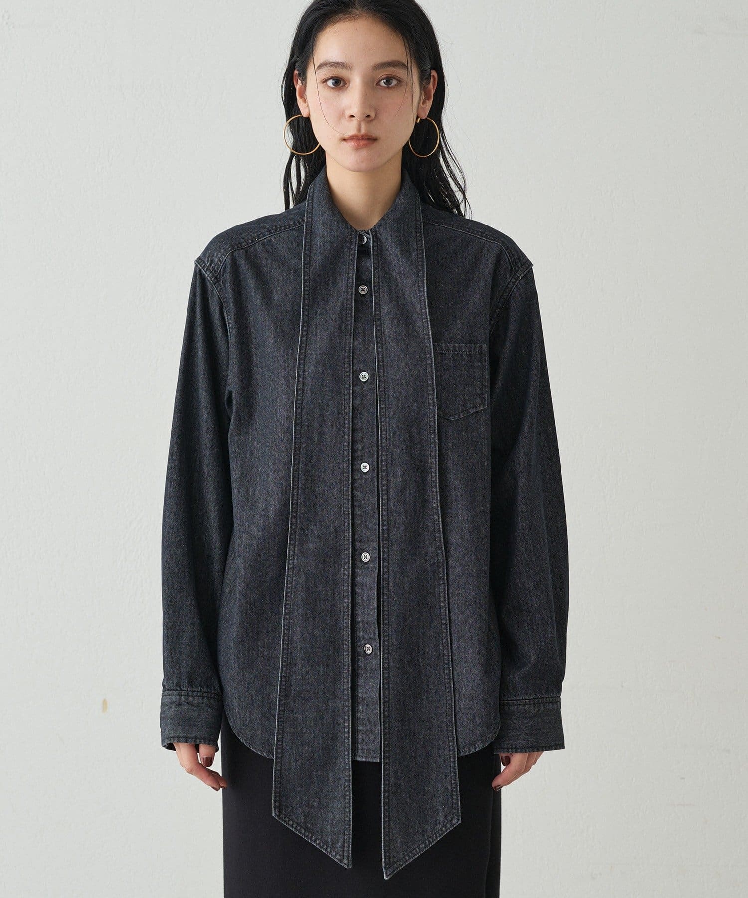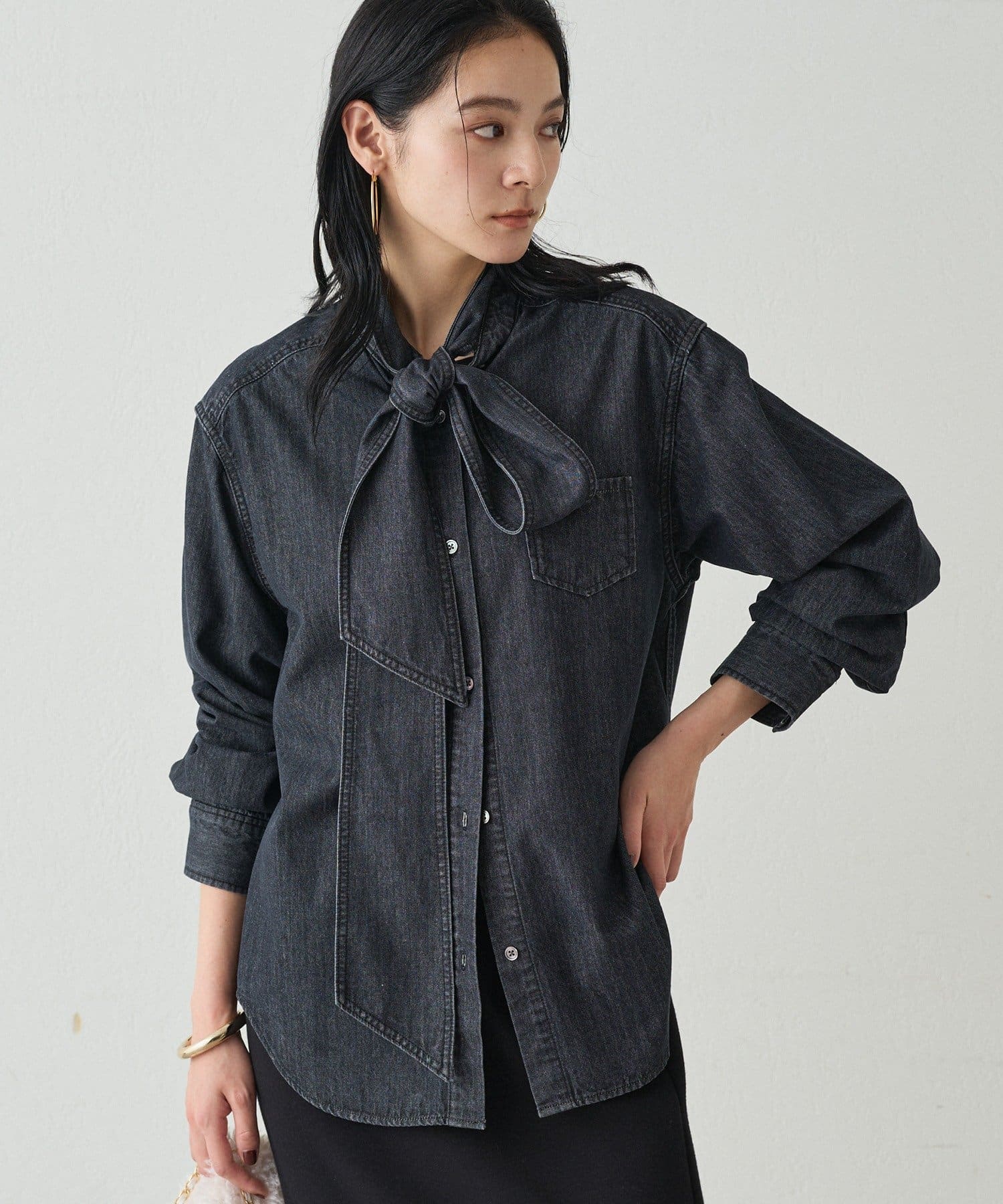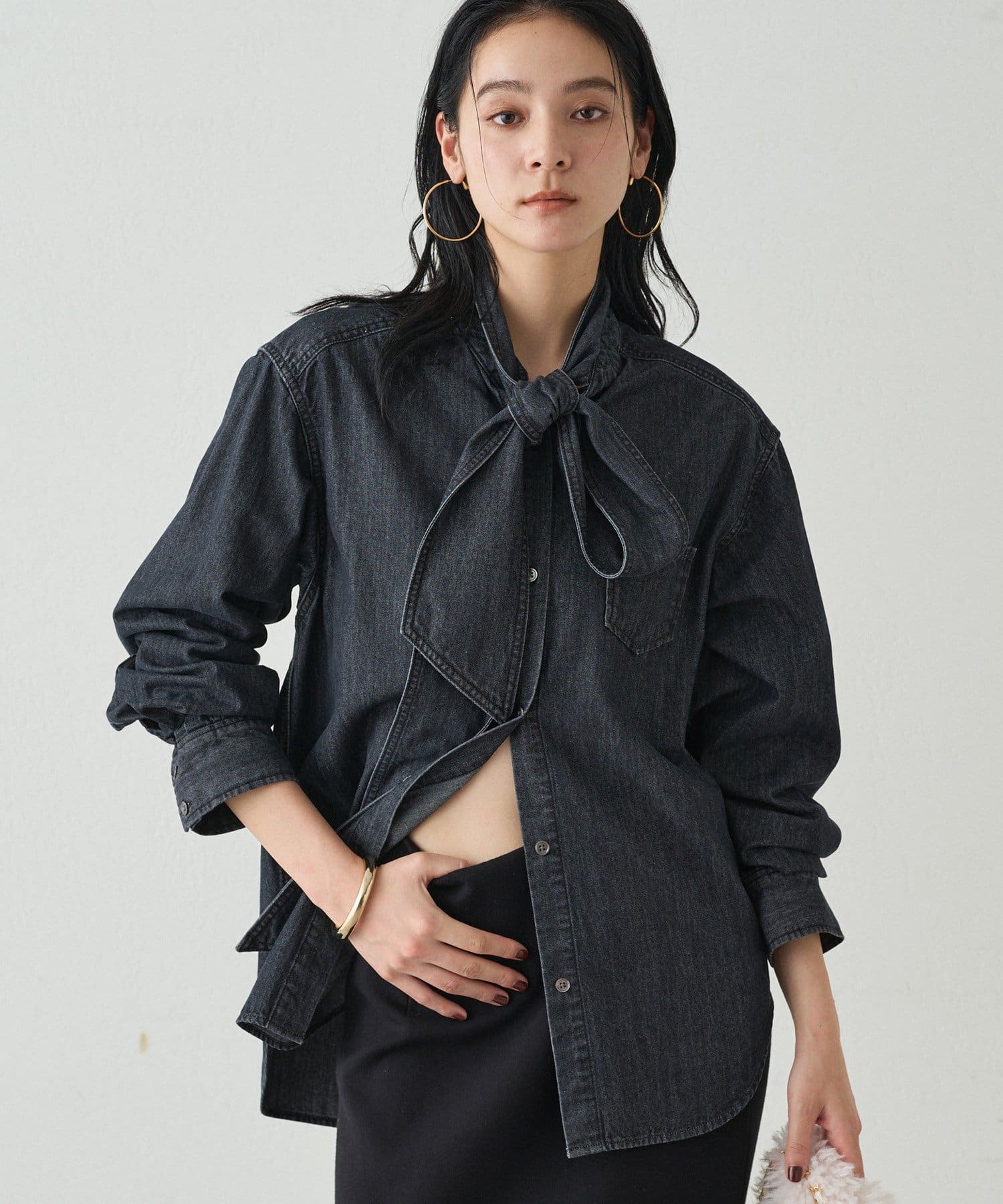 大人の余裕と遊び心をまとう、洗練されたブラックデニムボウタイシャツ