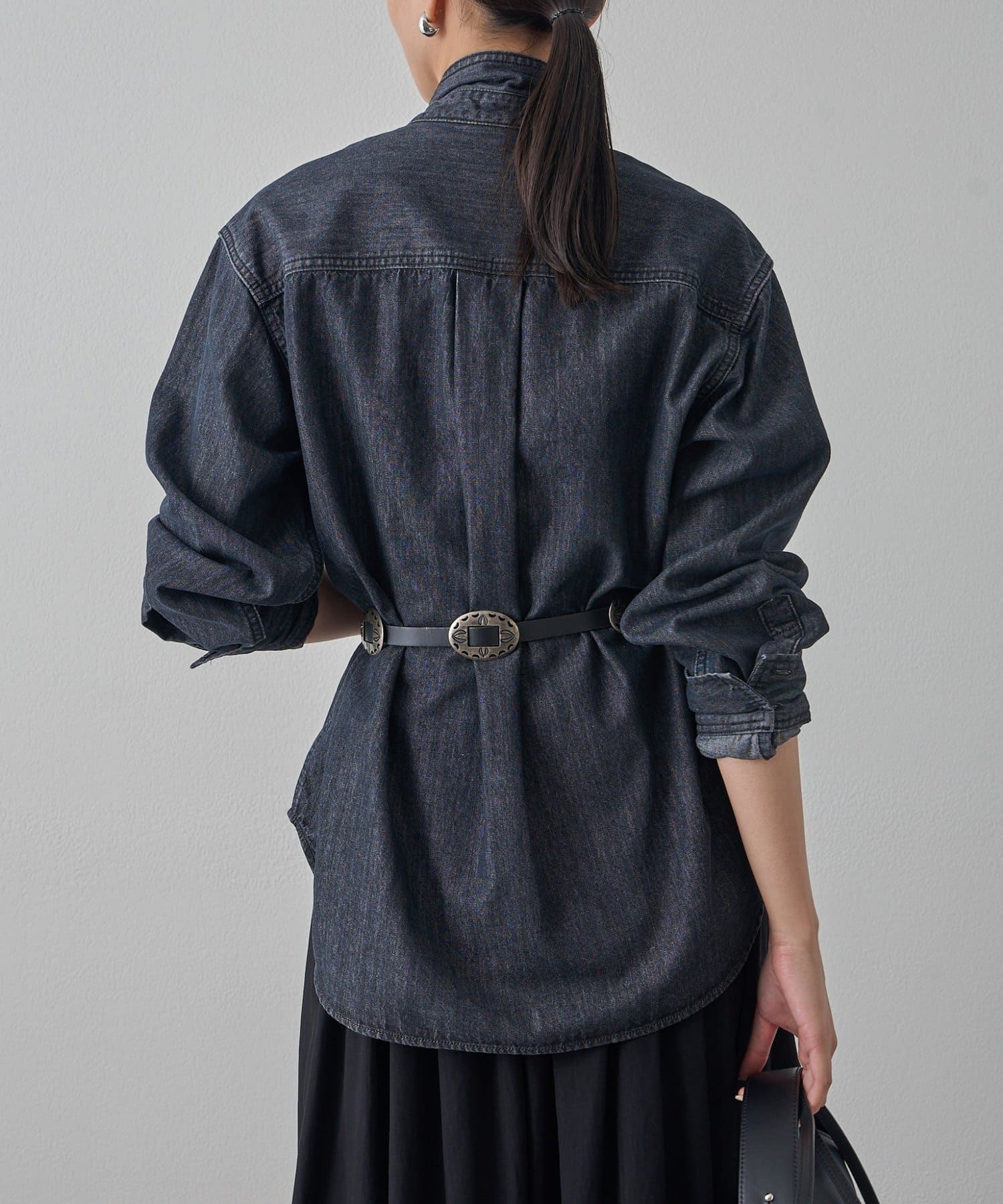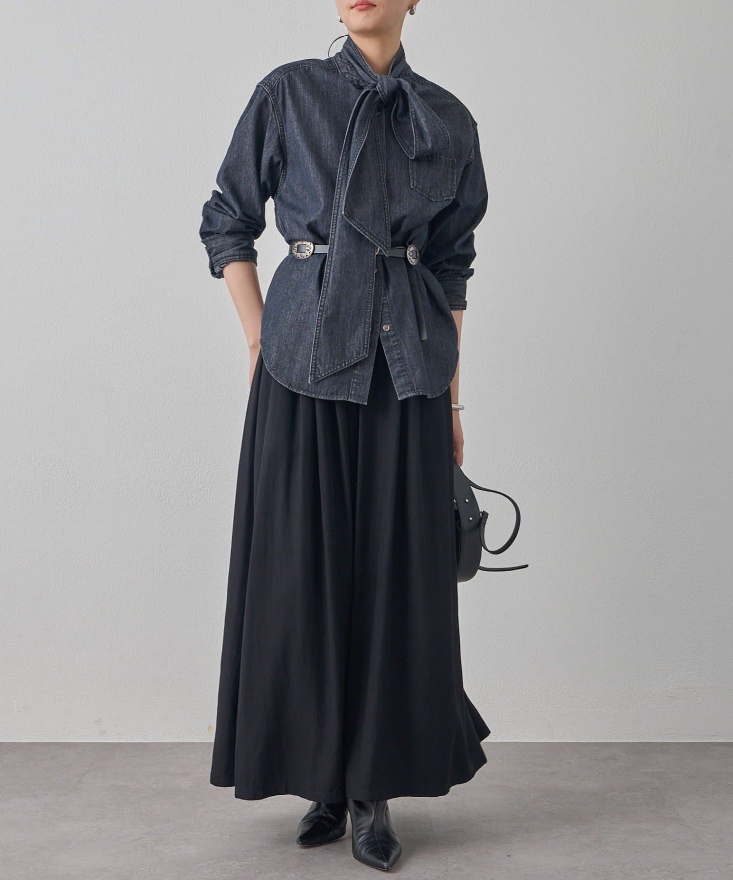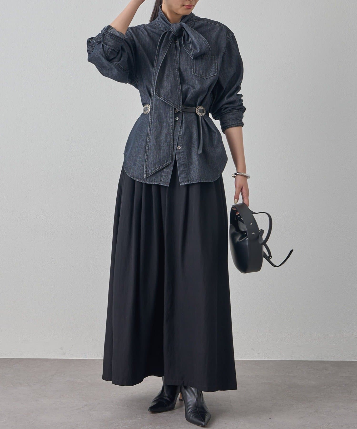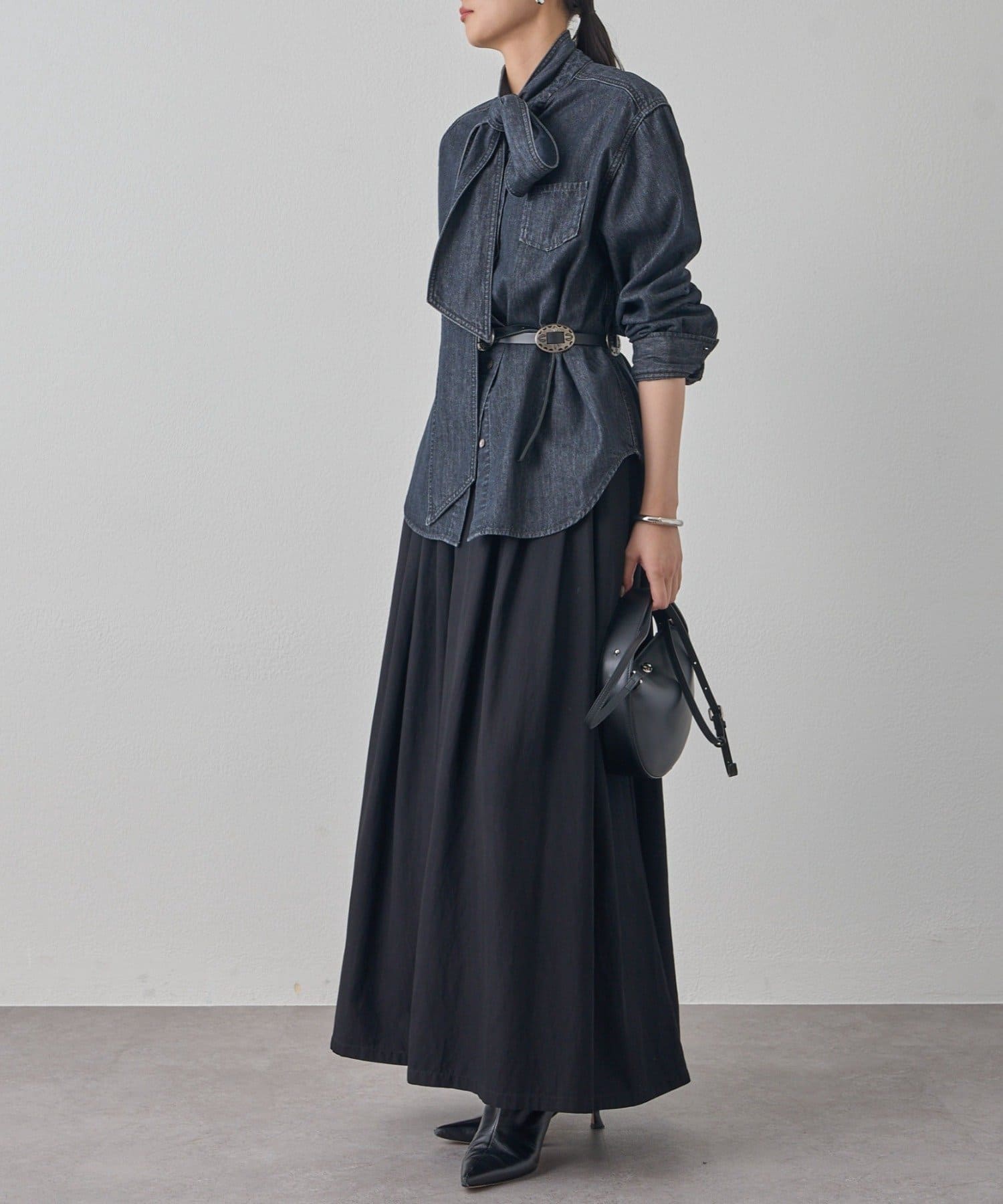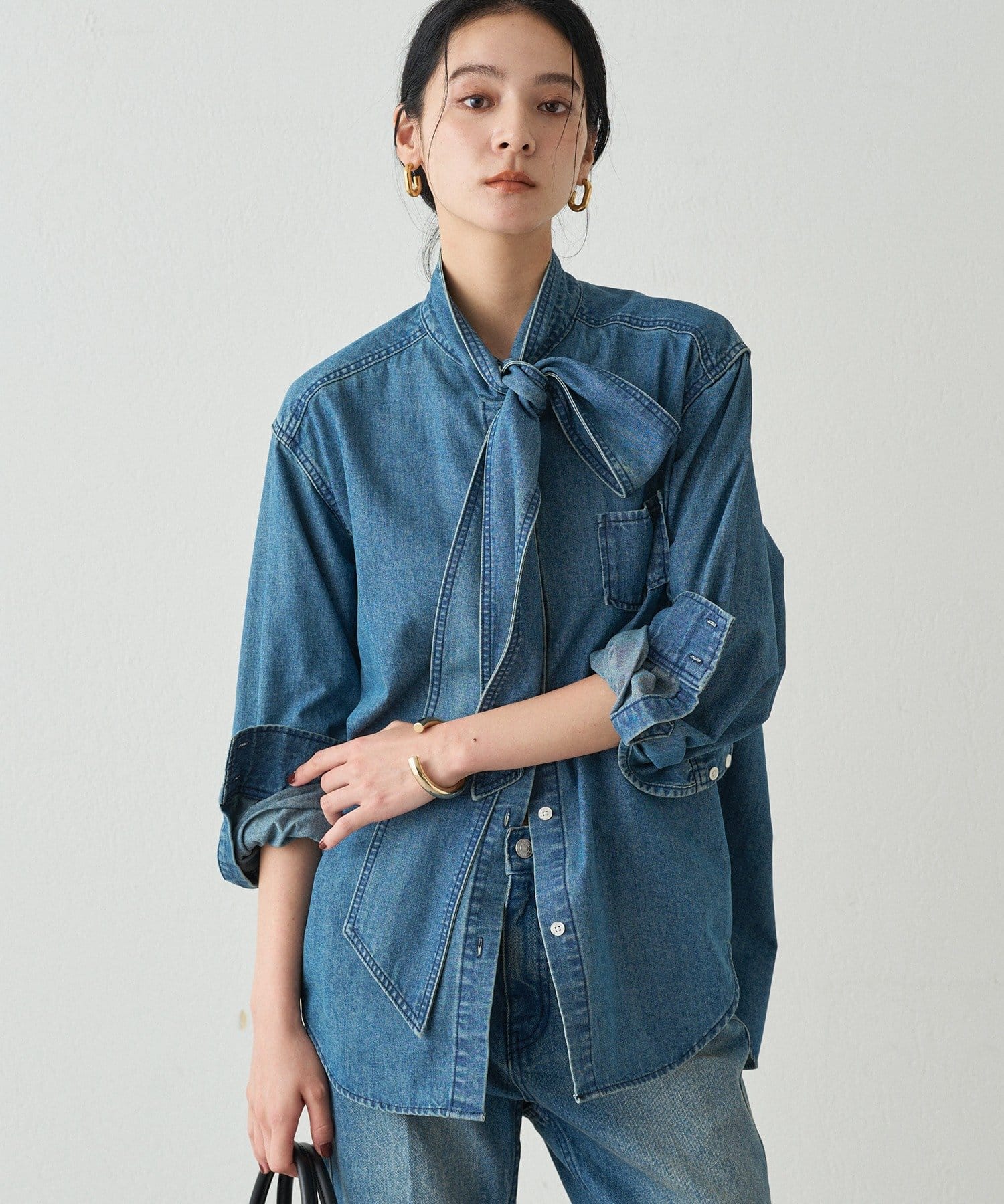 大人の余裕と遊び心をまとう、洗練されたブラックデニムボウタイシャツ