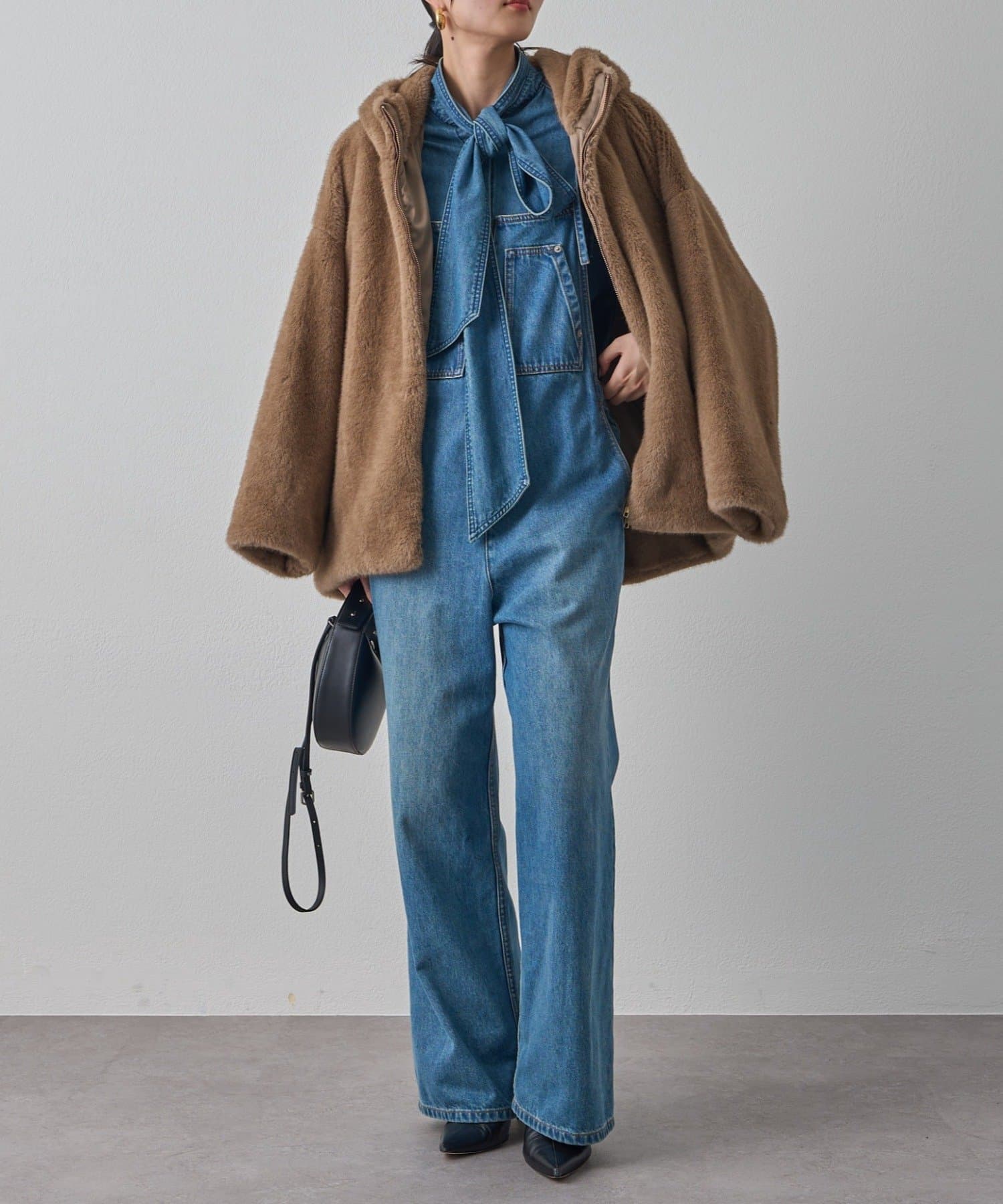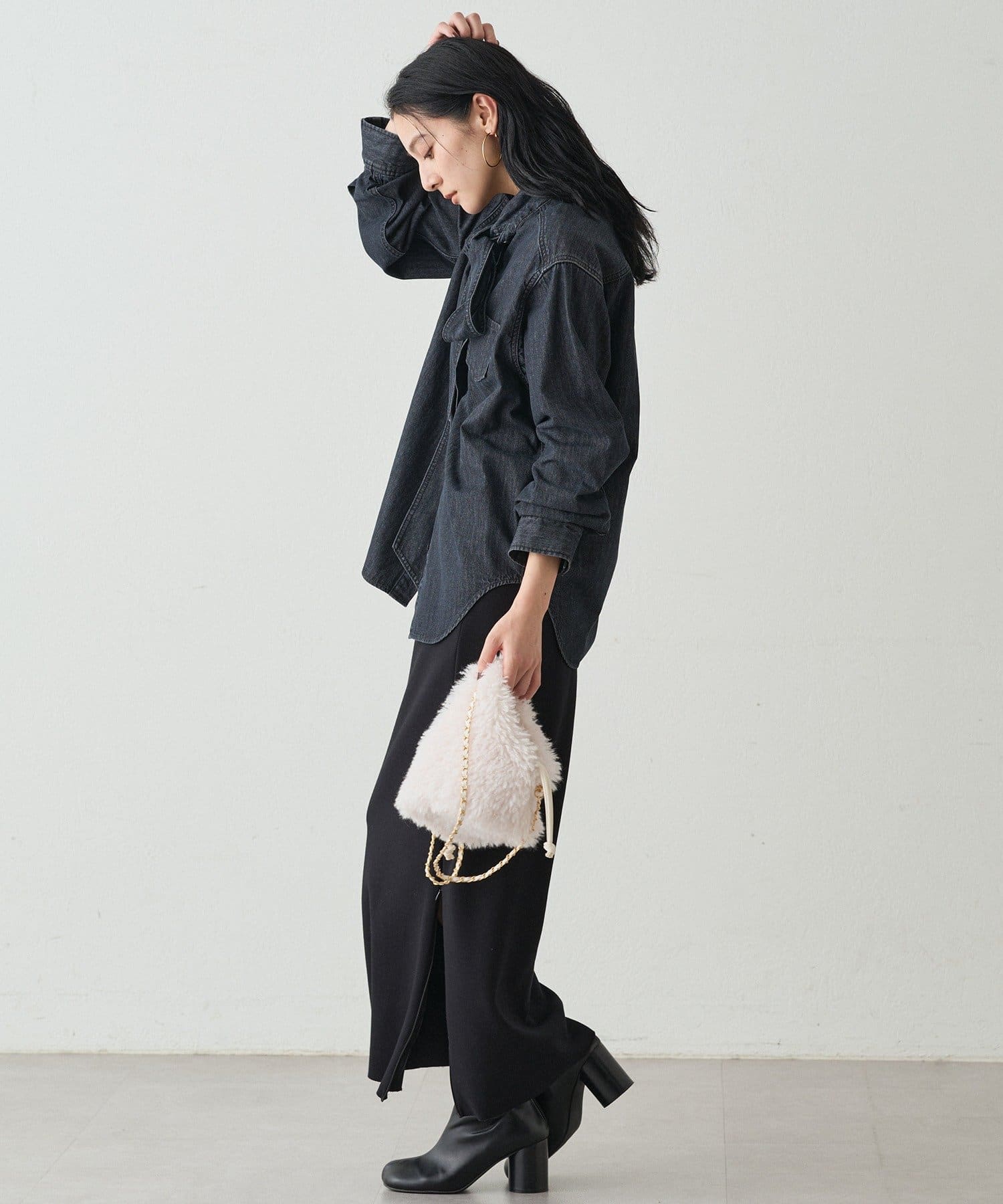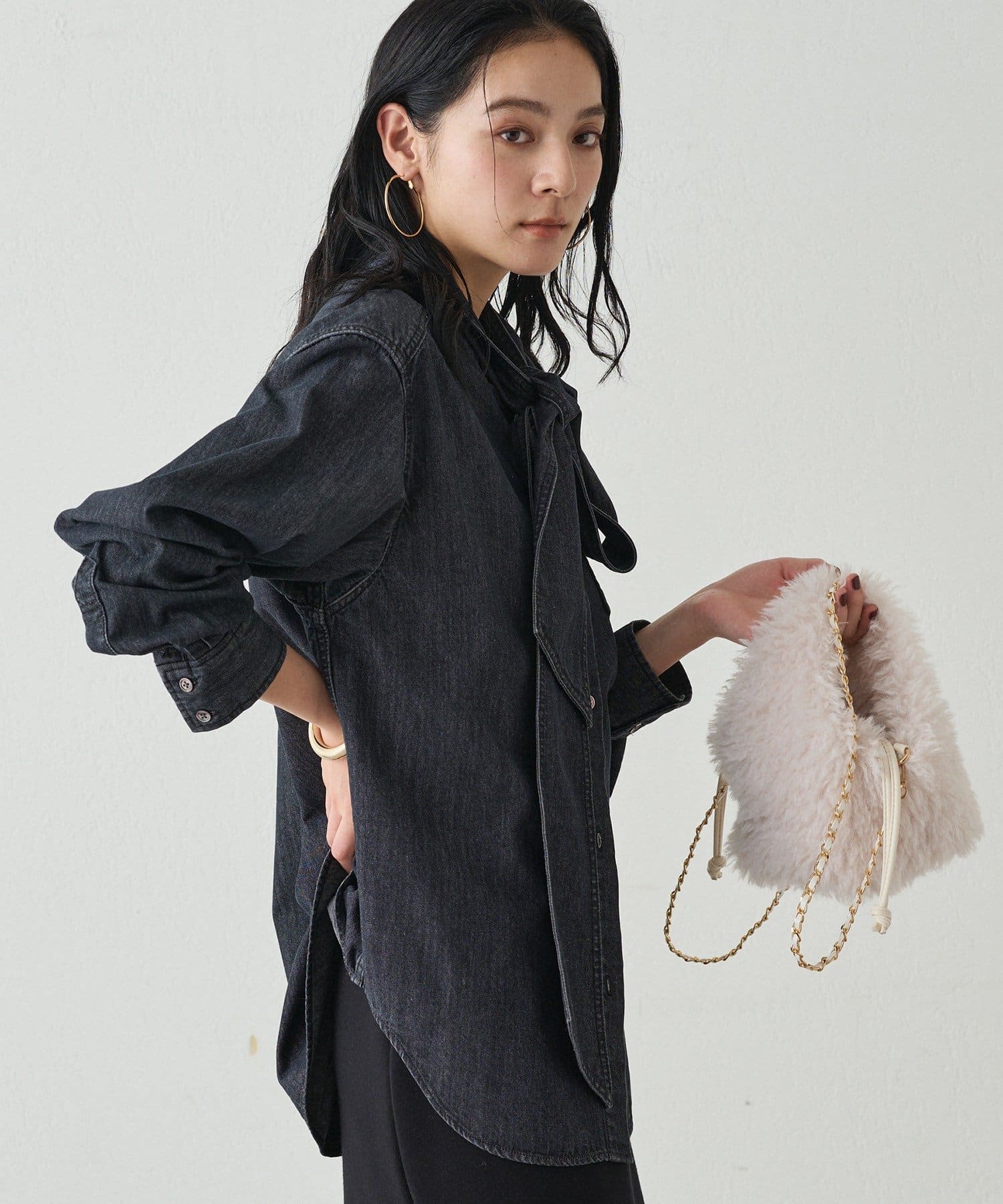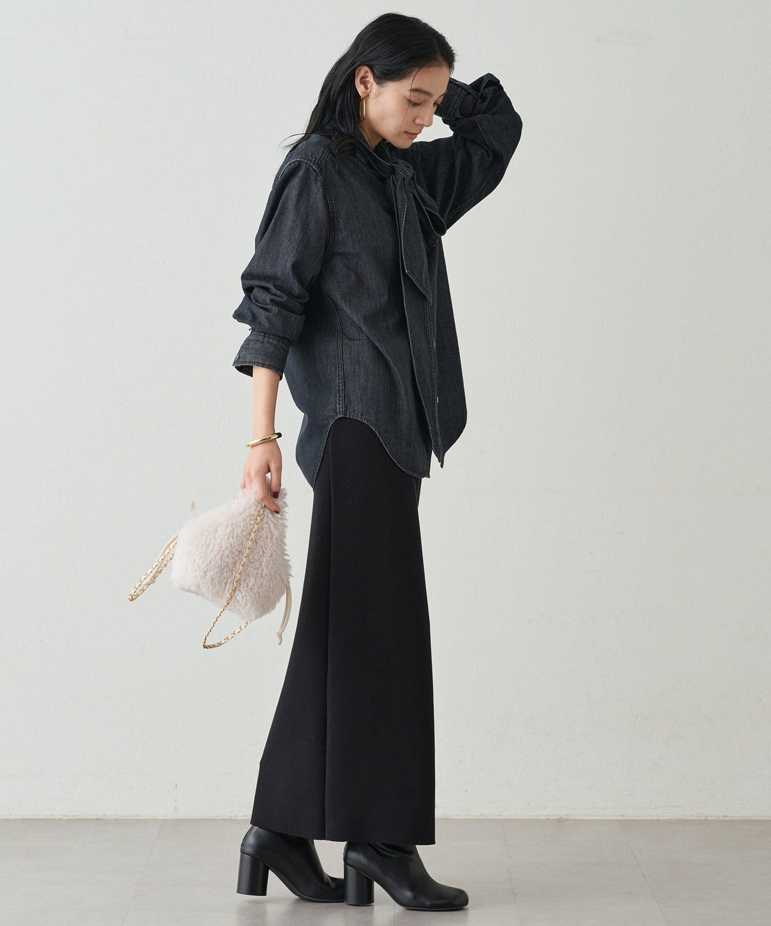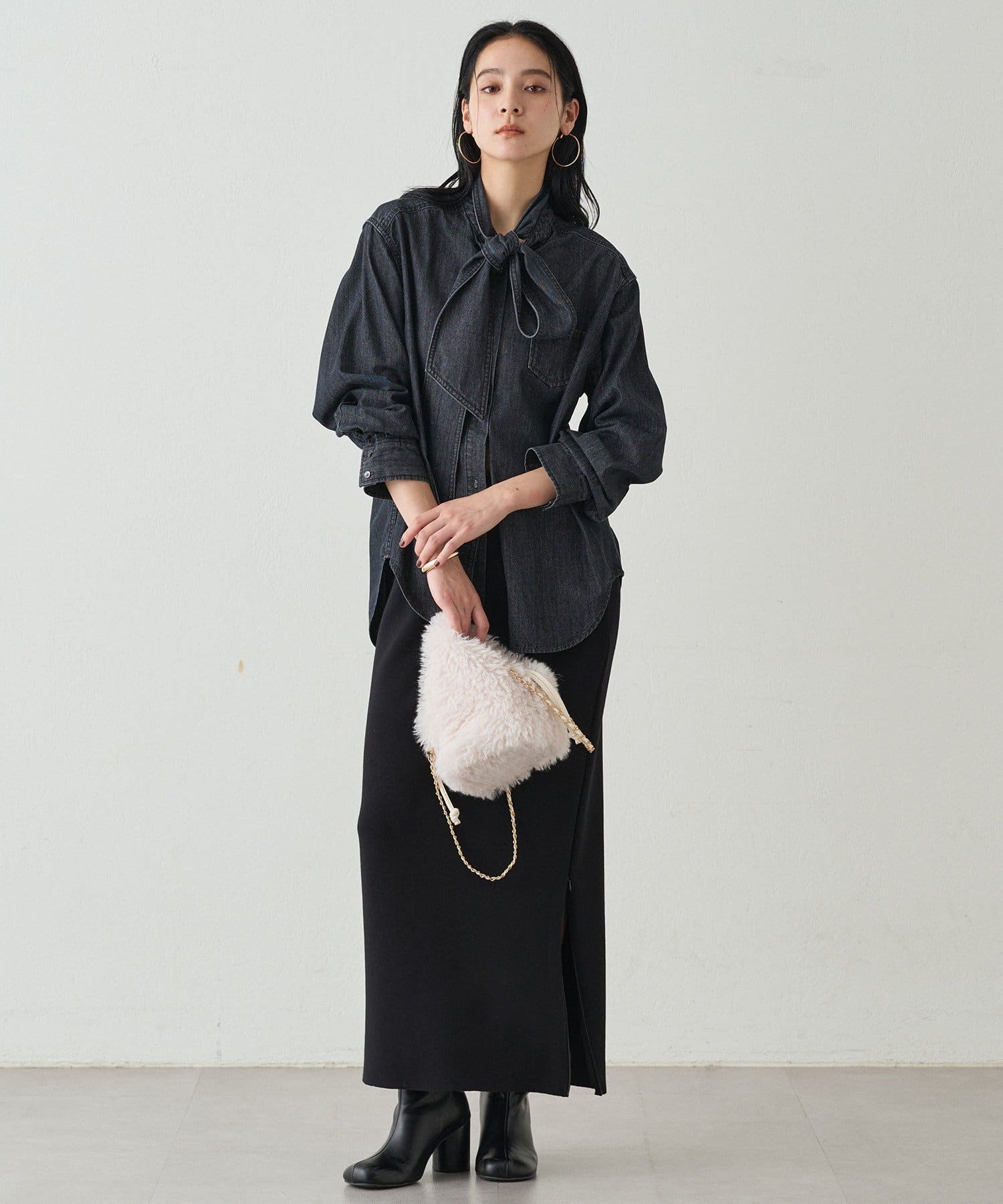 特徴的なボウタイデザインは、スタイリングに華やかさをプラス。
