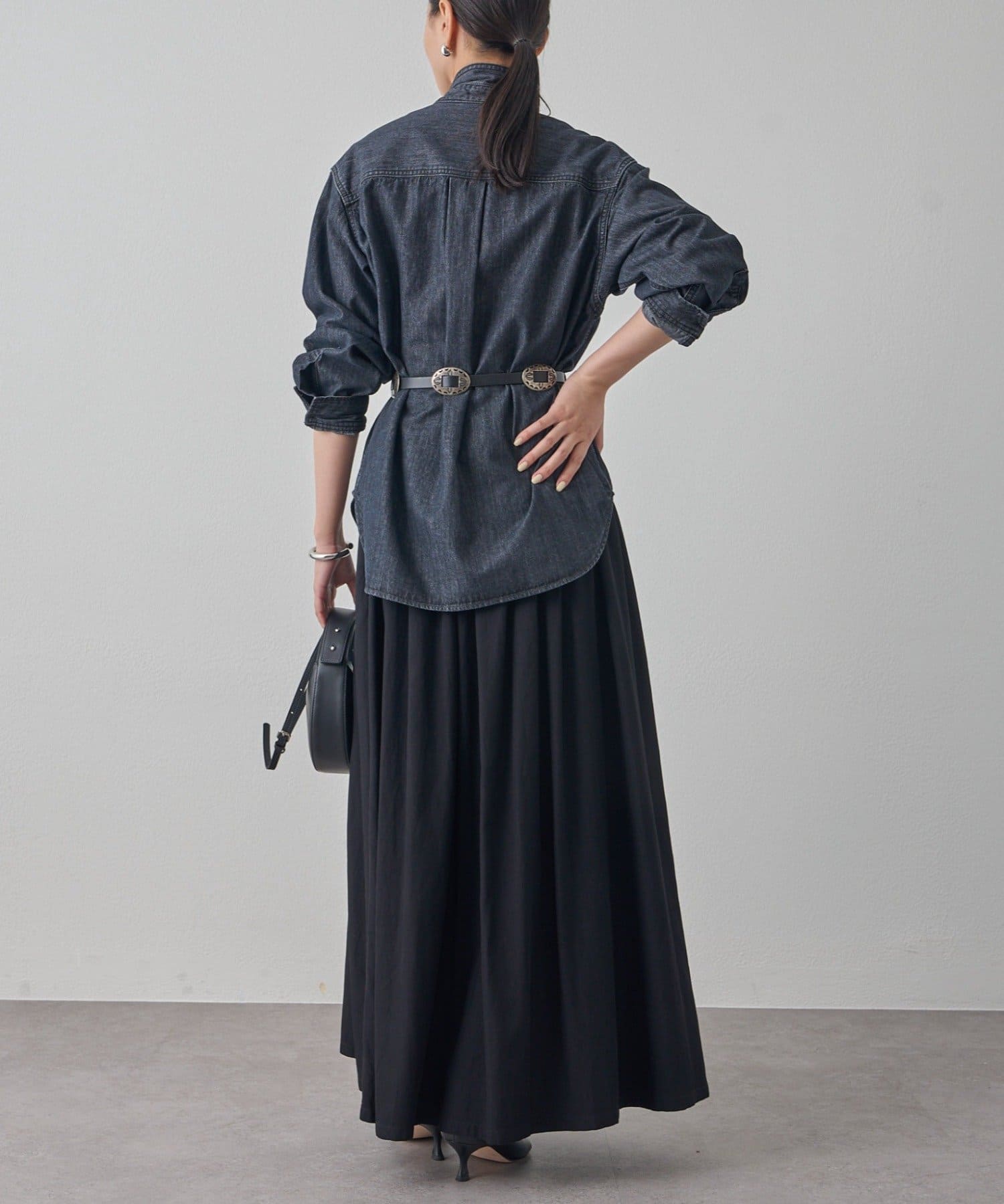 スカートやパンツ、ワンピースの上にも羽織れるので、着回し力抜群です。