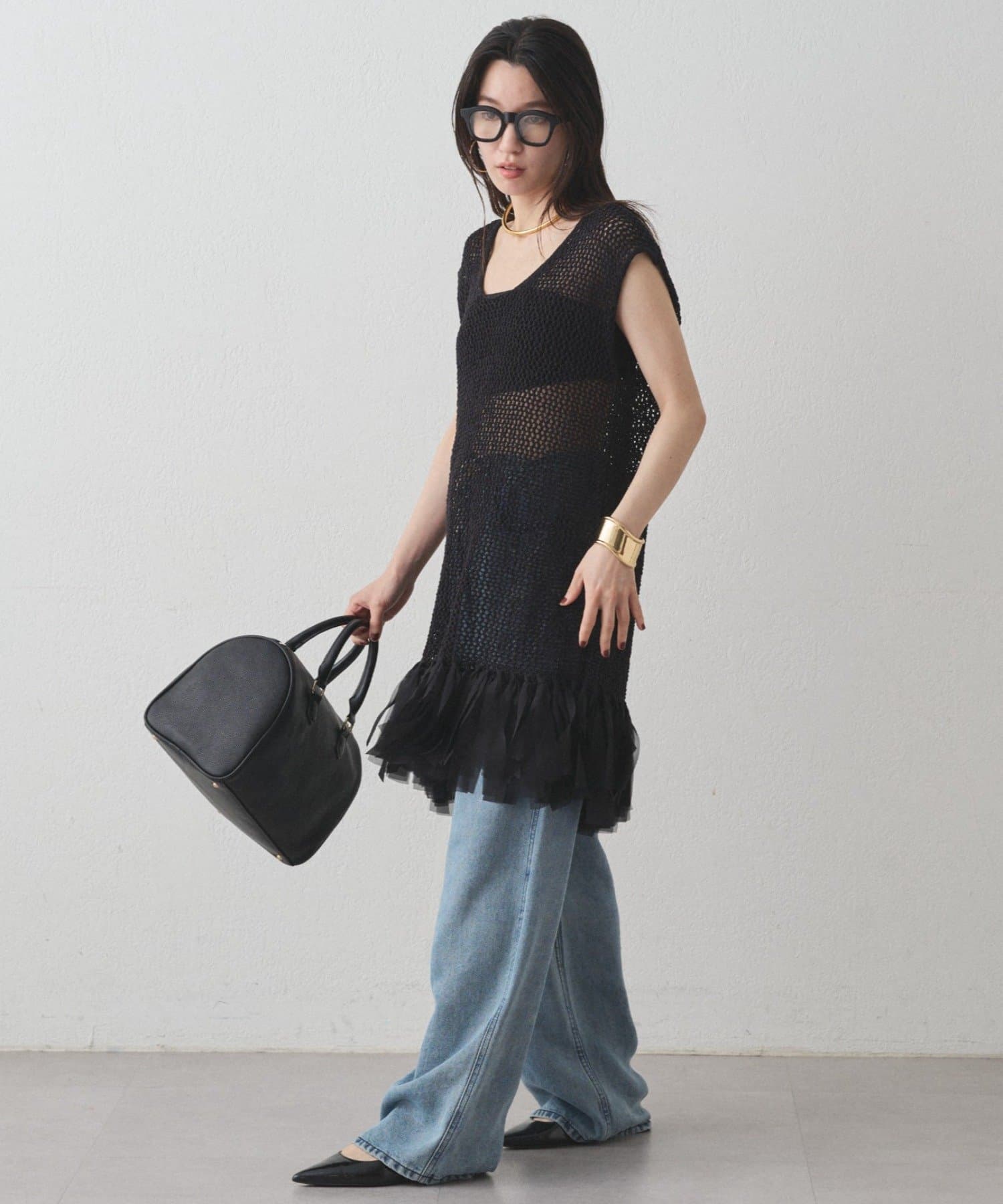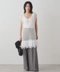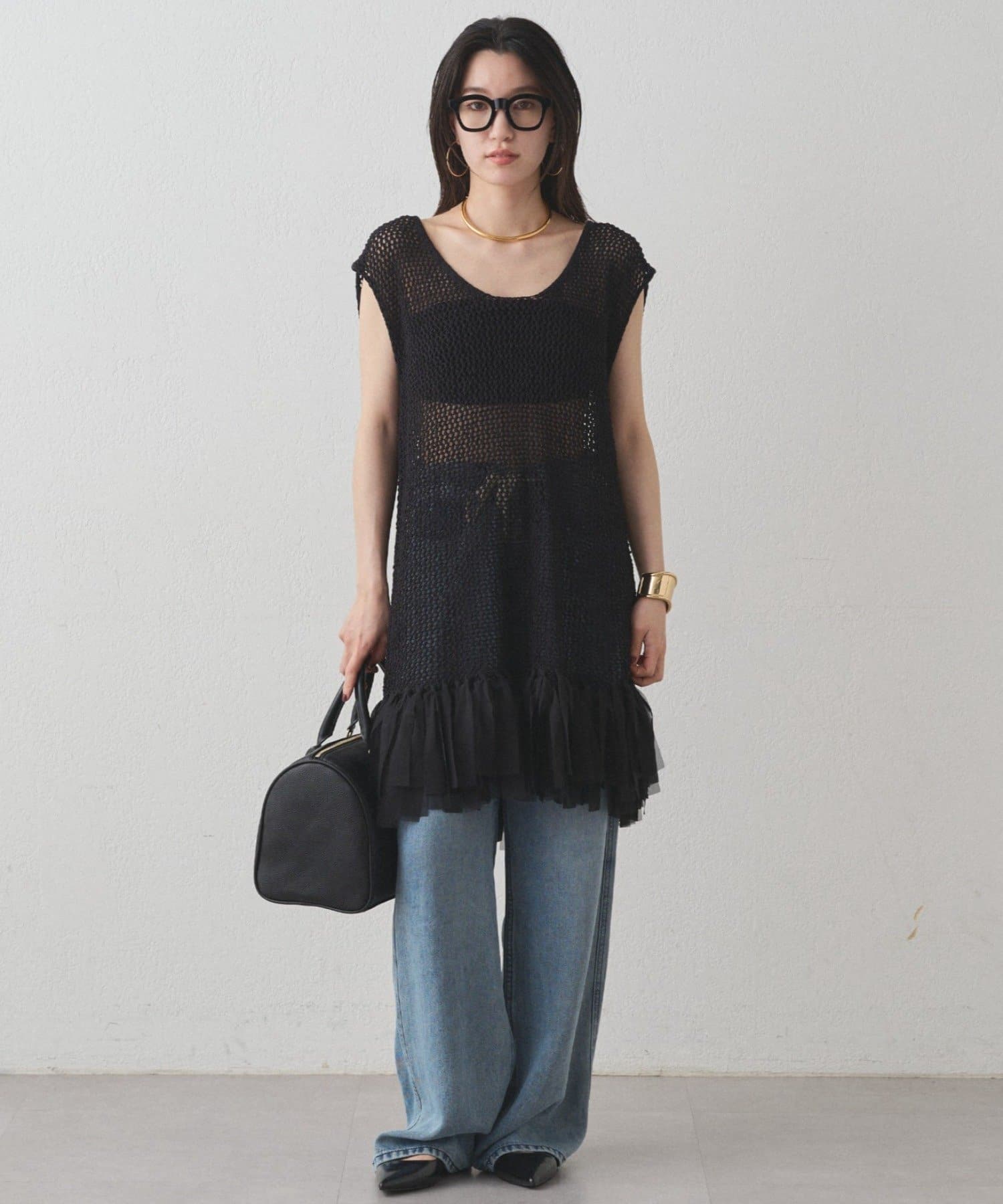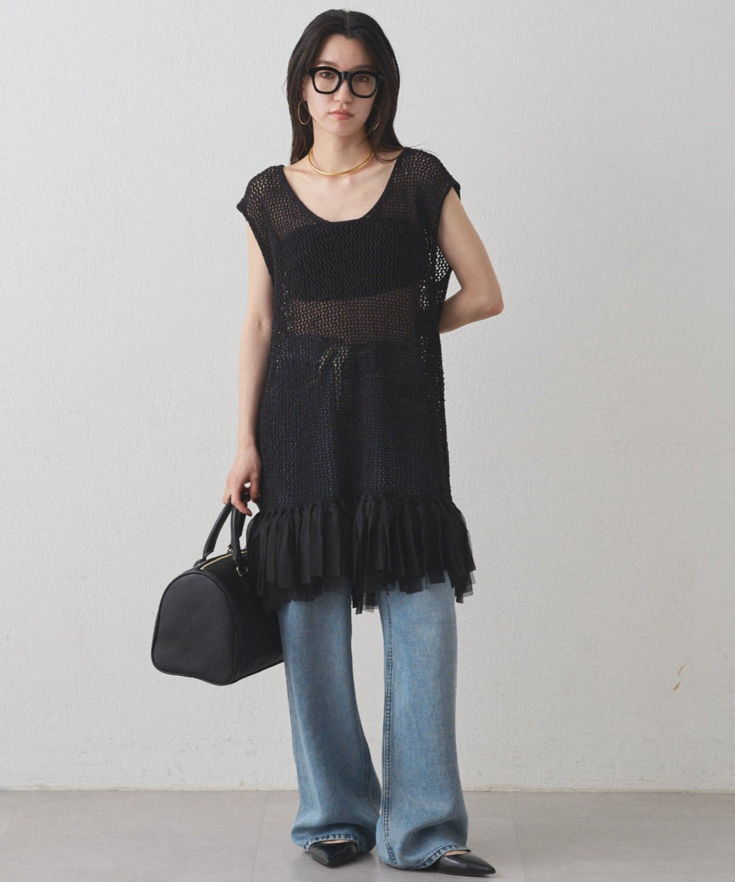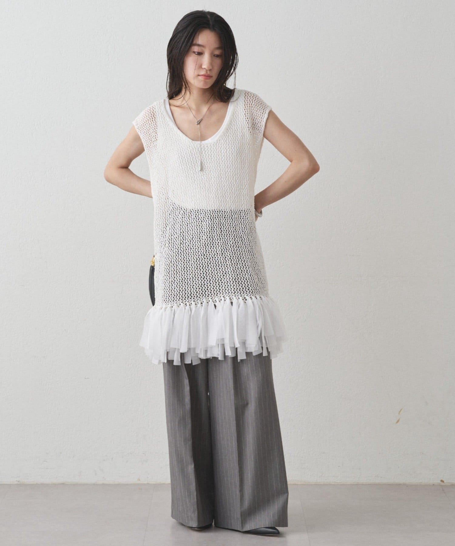 ざっくりと編まれた透け感のあるニットに、裾のフリンジがドラマティックな表情をプラスしてくれます。