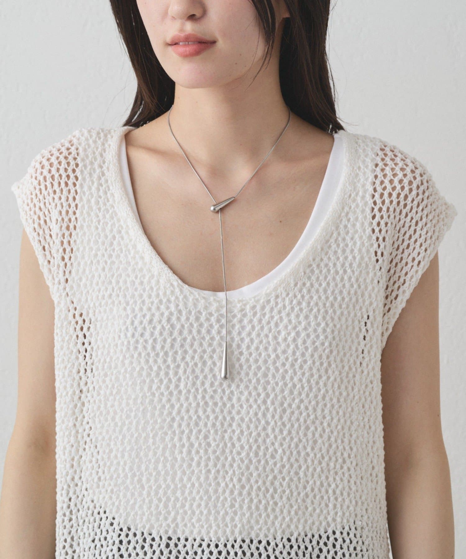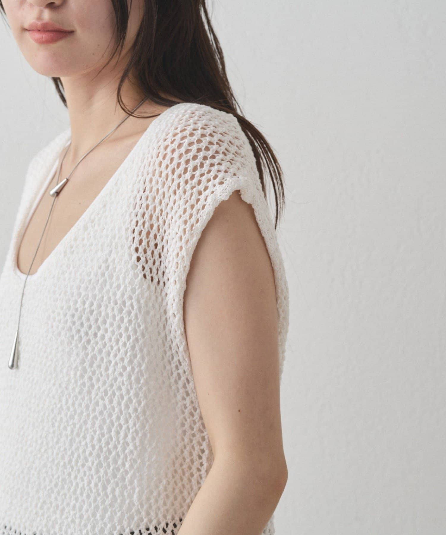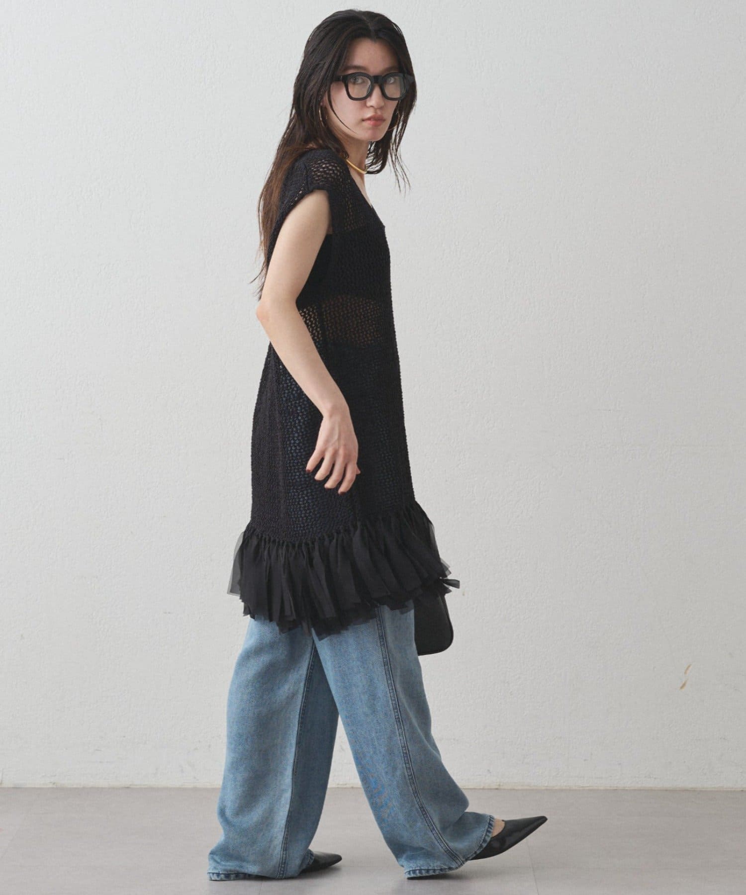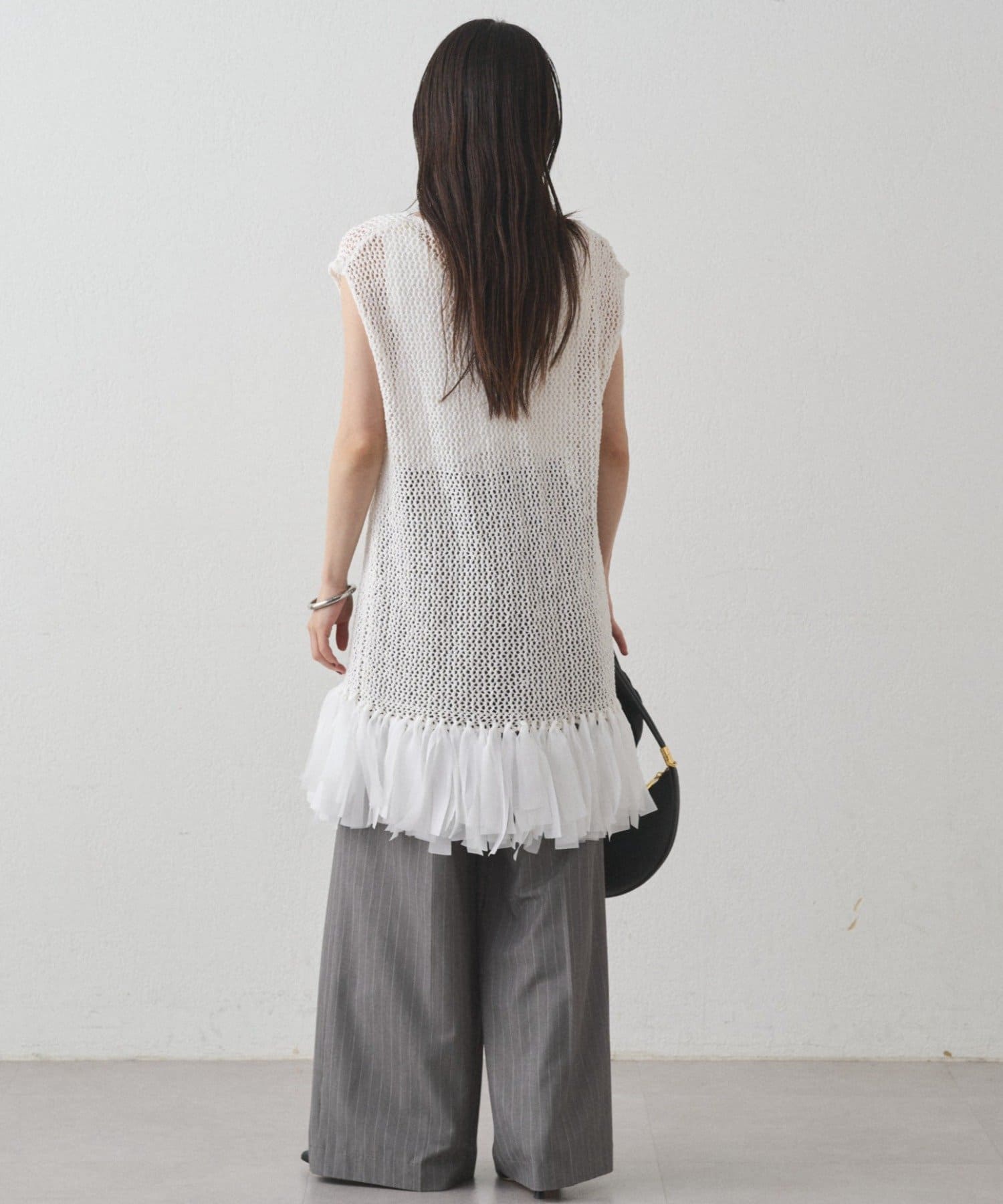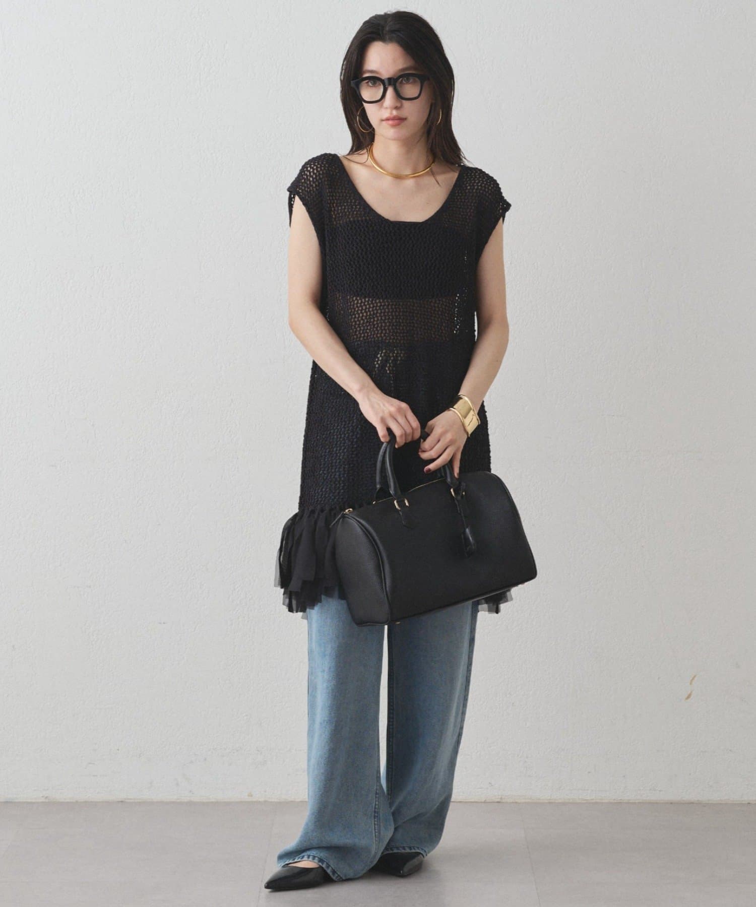 ざっくりと編まれた透け感のあるニットに、裾のフリンジがドラマティックな表情をプラスしてくれます。