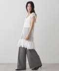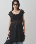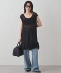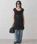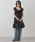 ヒップまで隠れるロング丈で、体型を拾わず、リラックス感もありつつ、華やかさを出してくれるアイテムです。