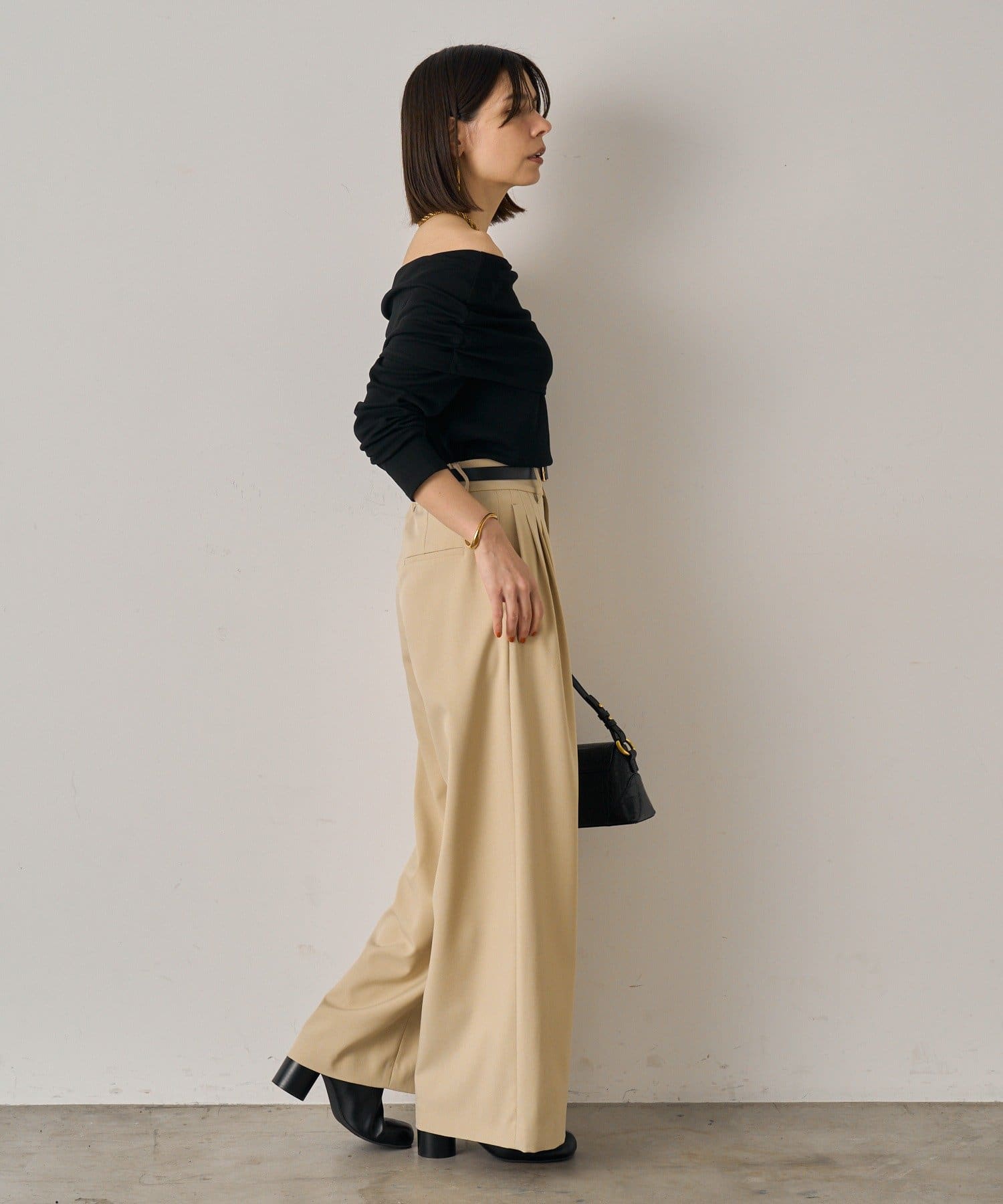 オフショルのままキープするのが難しい。