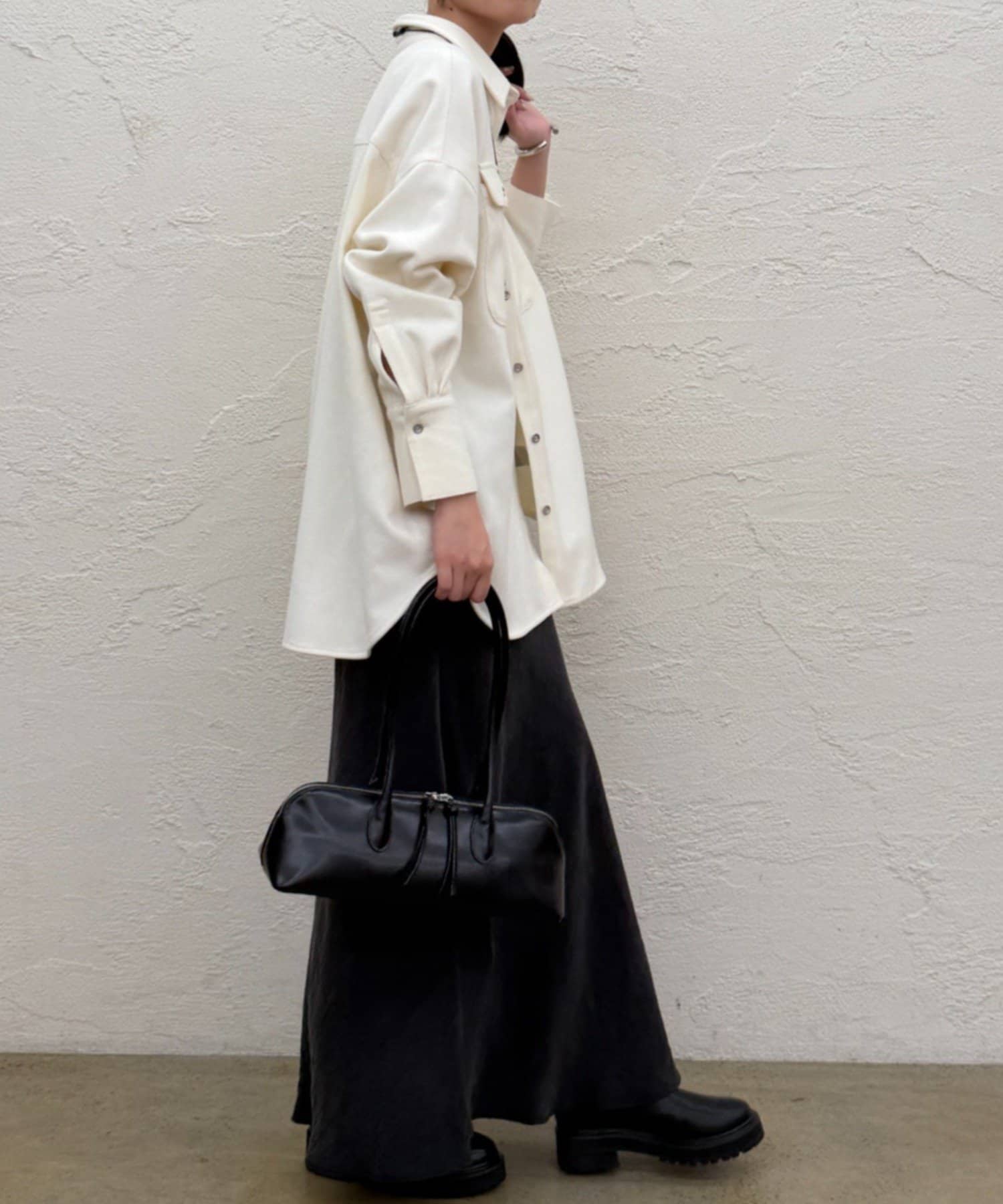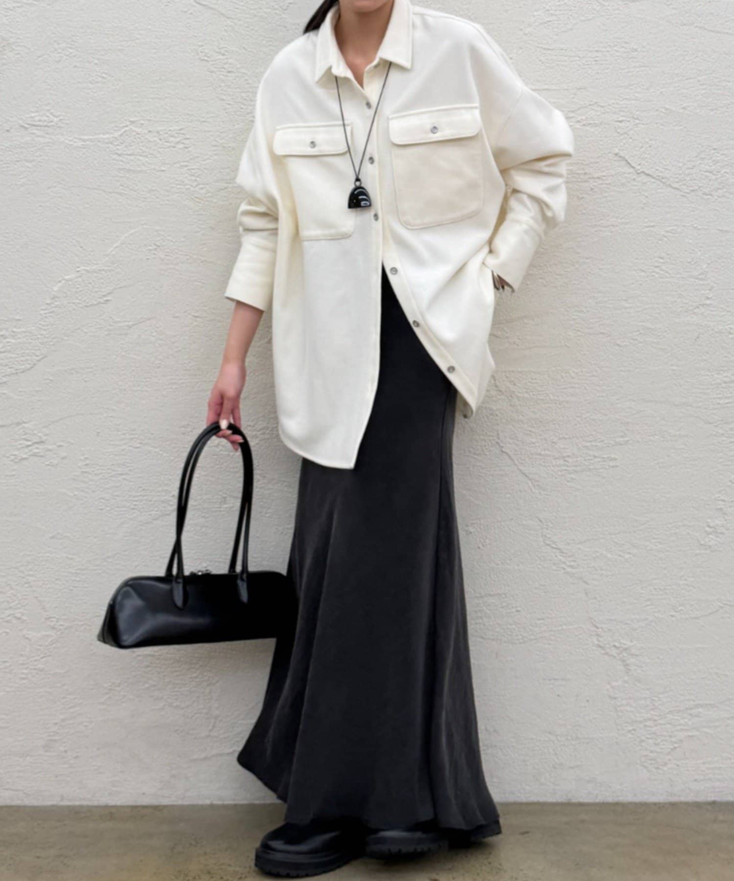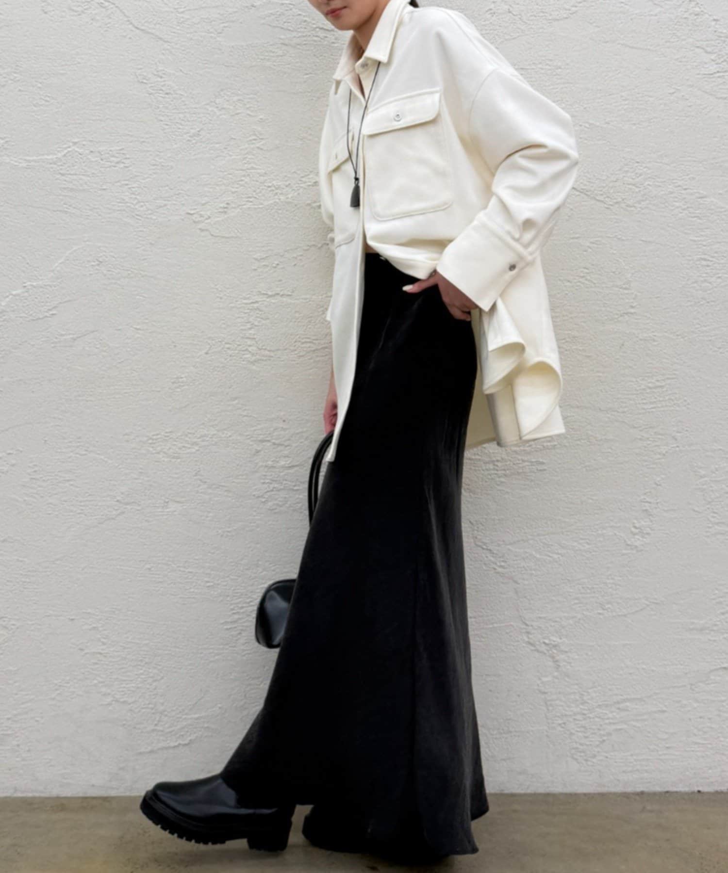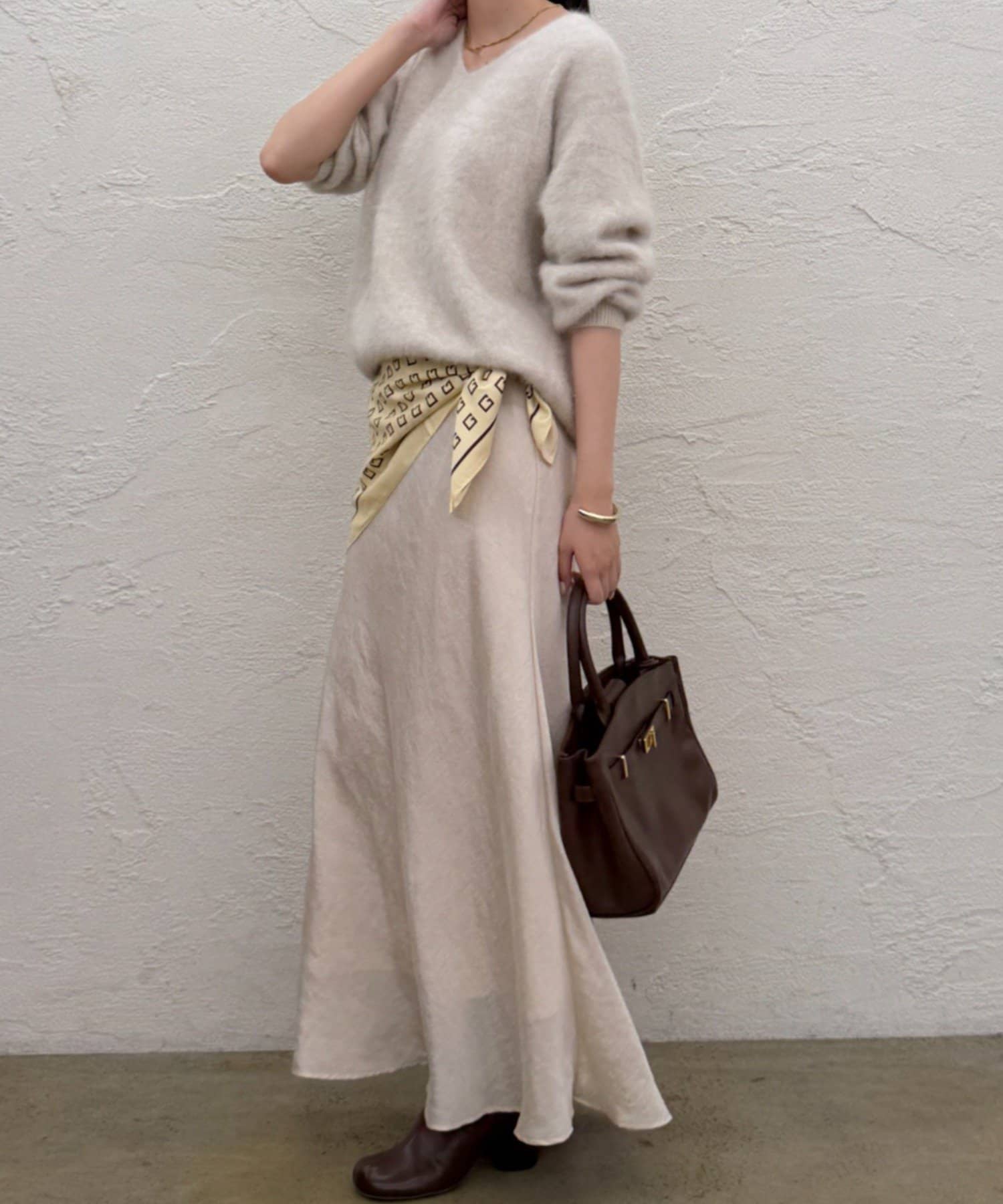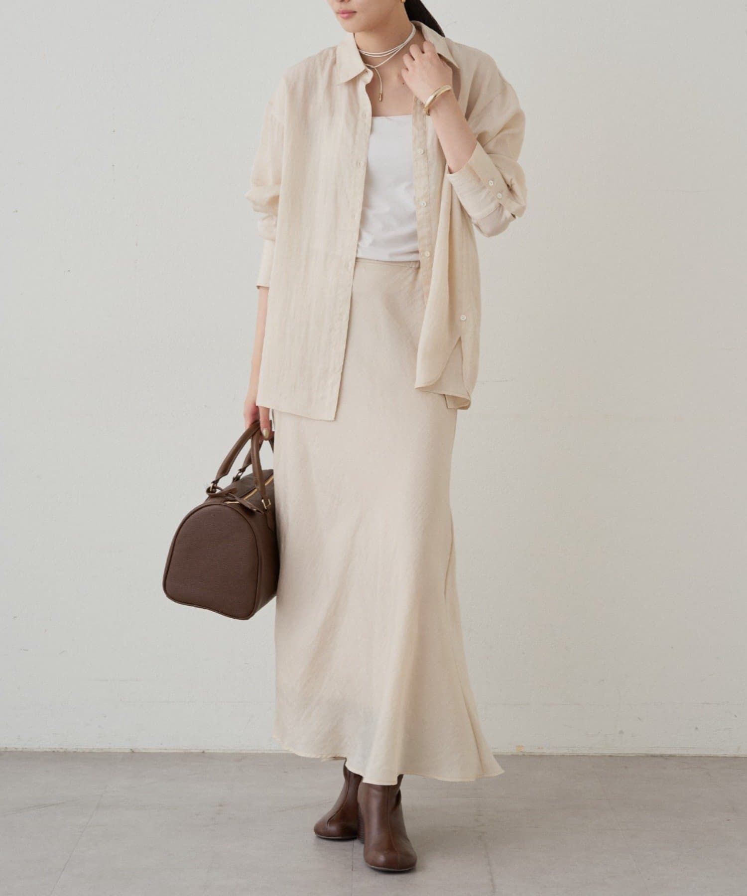 ブラウスやニットと合わせてきれいめに、Tシャツやカットソーと合わせてカジュアルにも着こなせます。